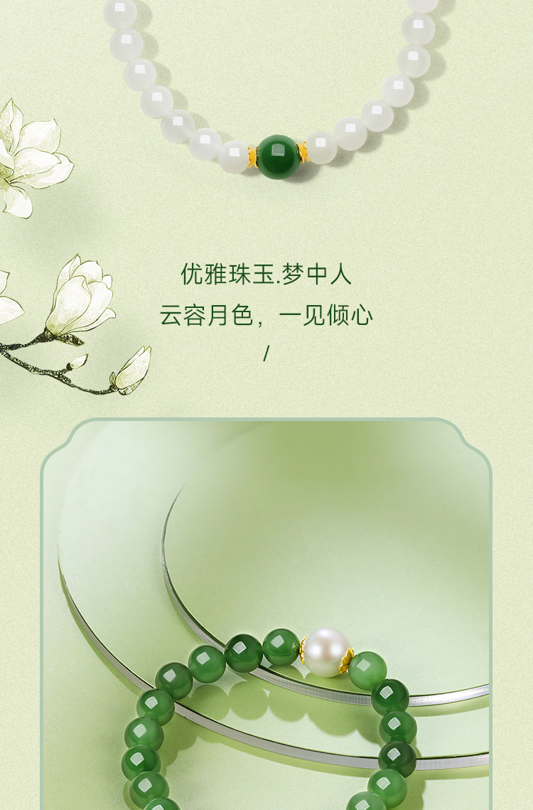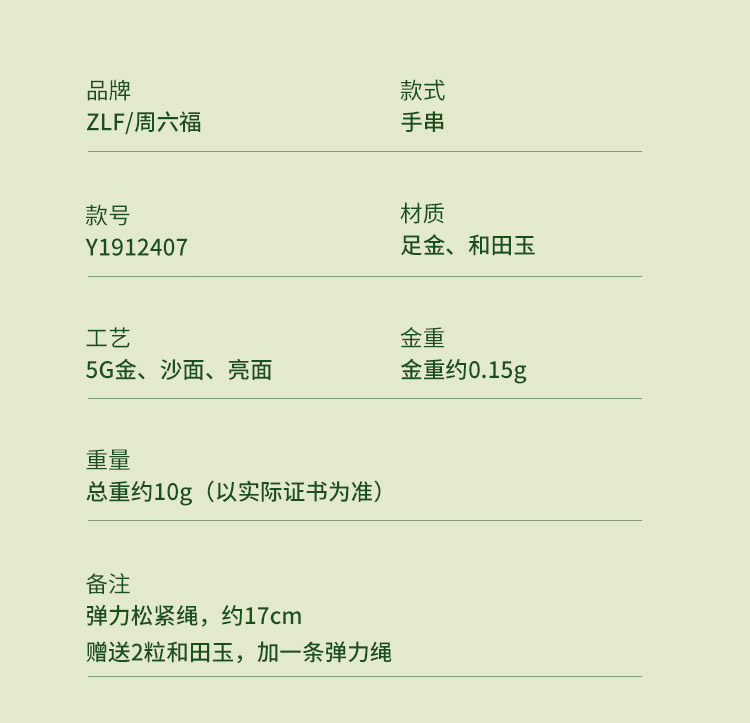 周六福黄金和田玉手链女款和田玉石手串官方正品送女友礼物