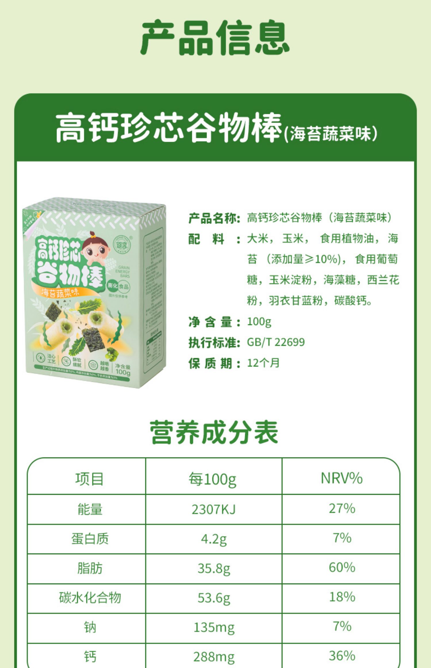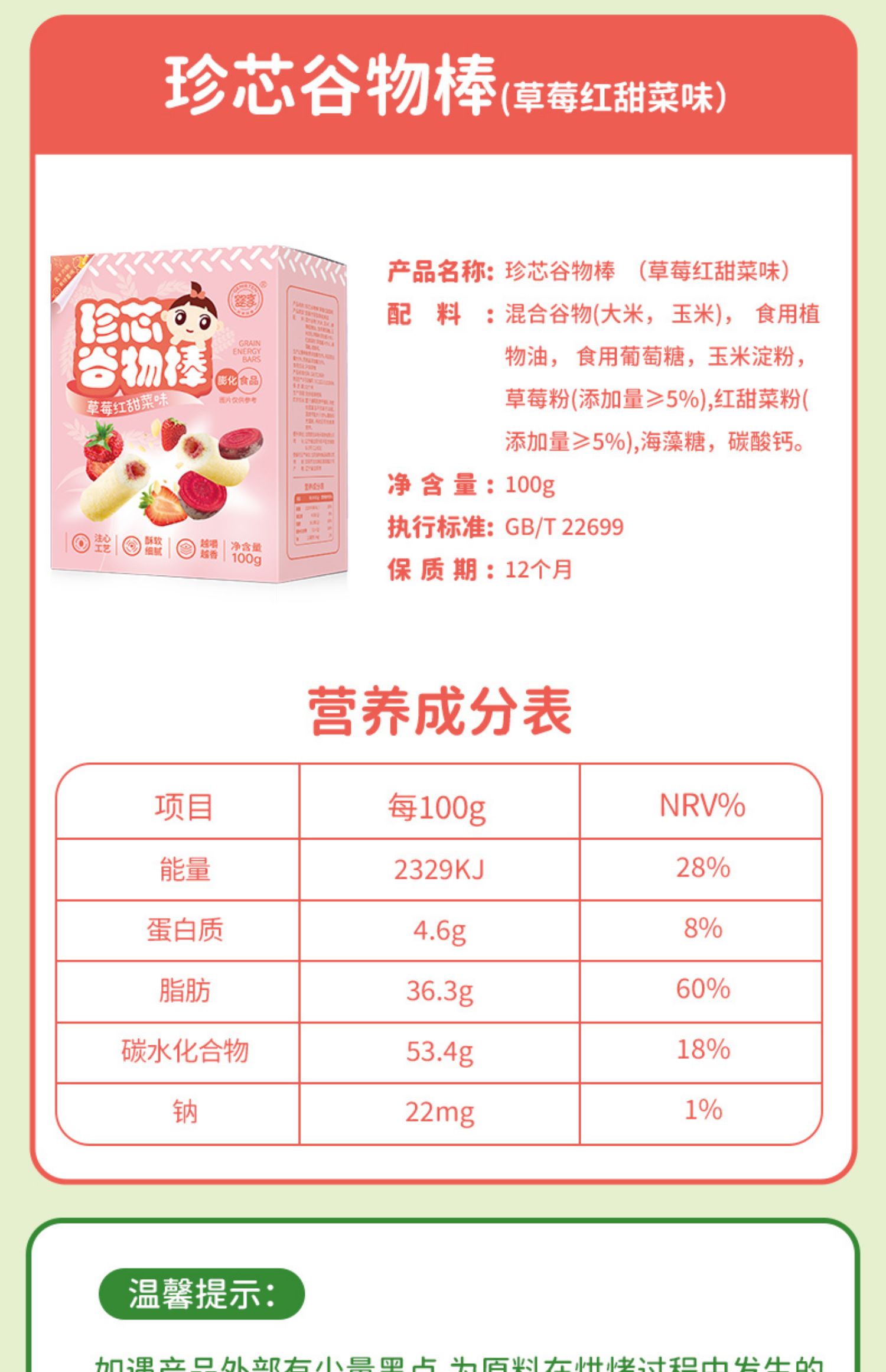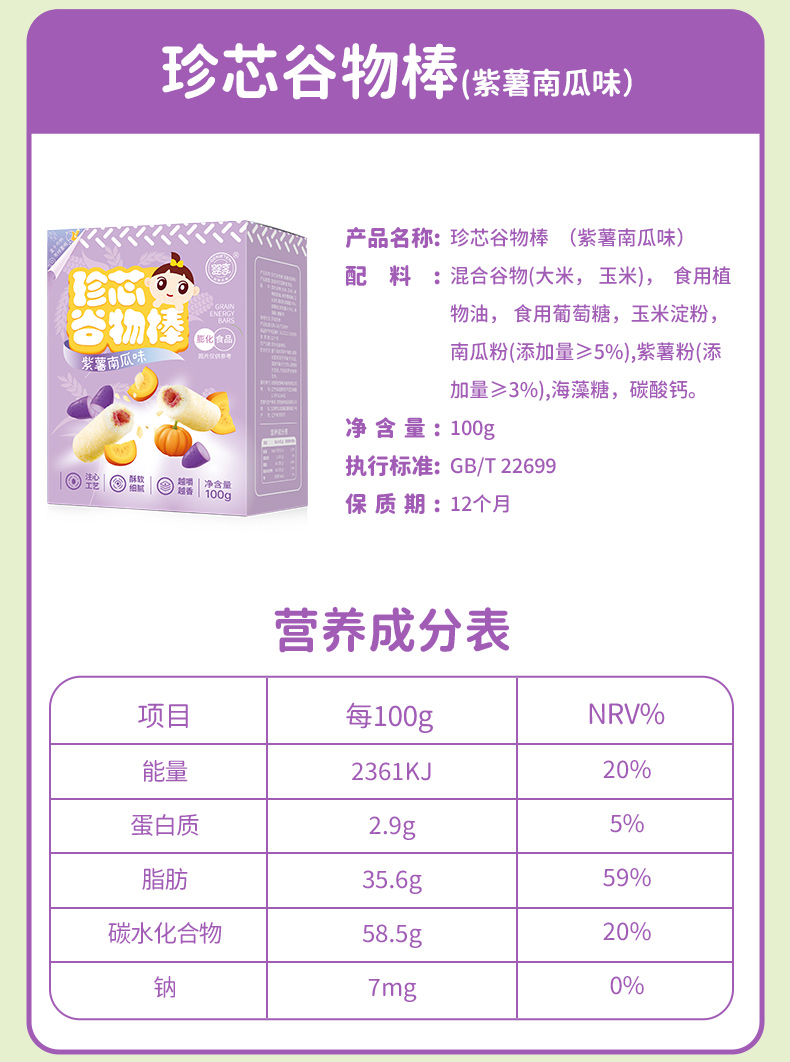 婴享珍芯谷物棒100g酥软细腻儿童零食