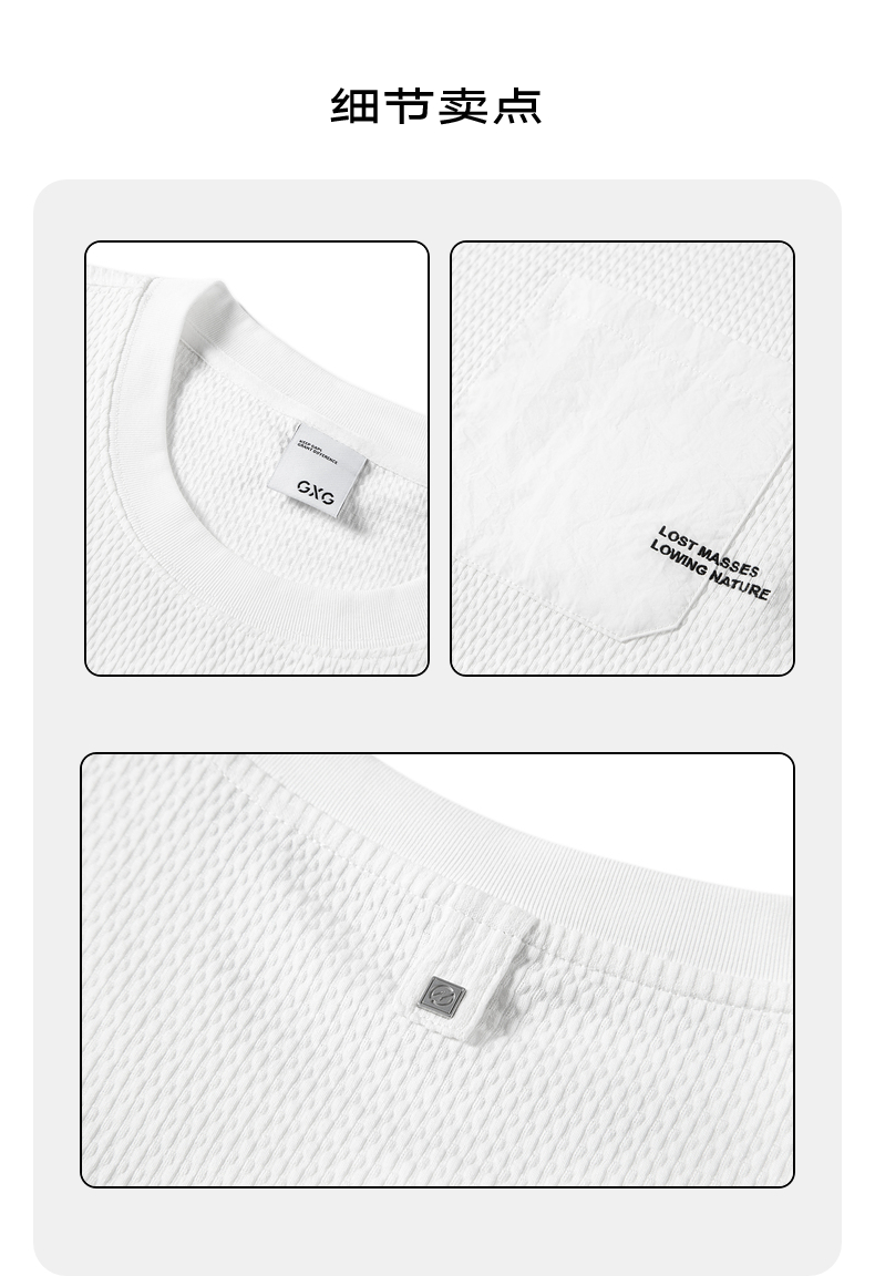 GXG男装 白色肌理面料短袖T恤 舒适简约休闲夏季热卖G24X442083