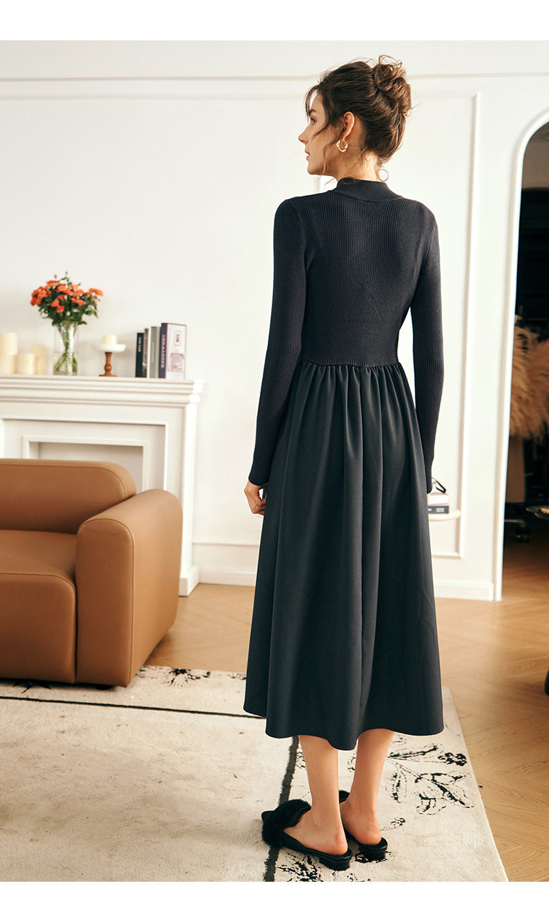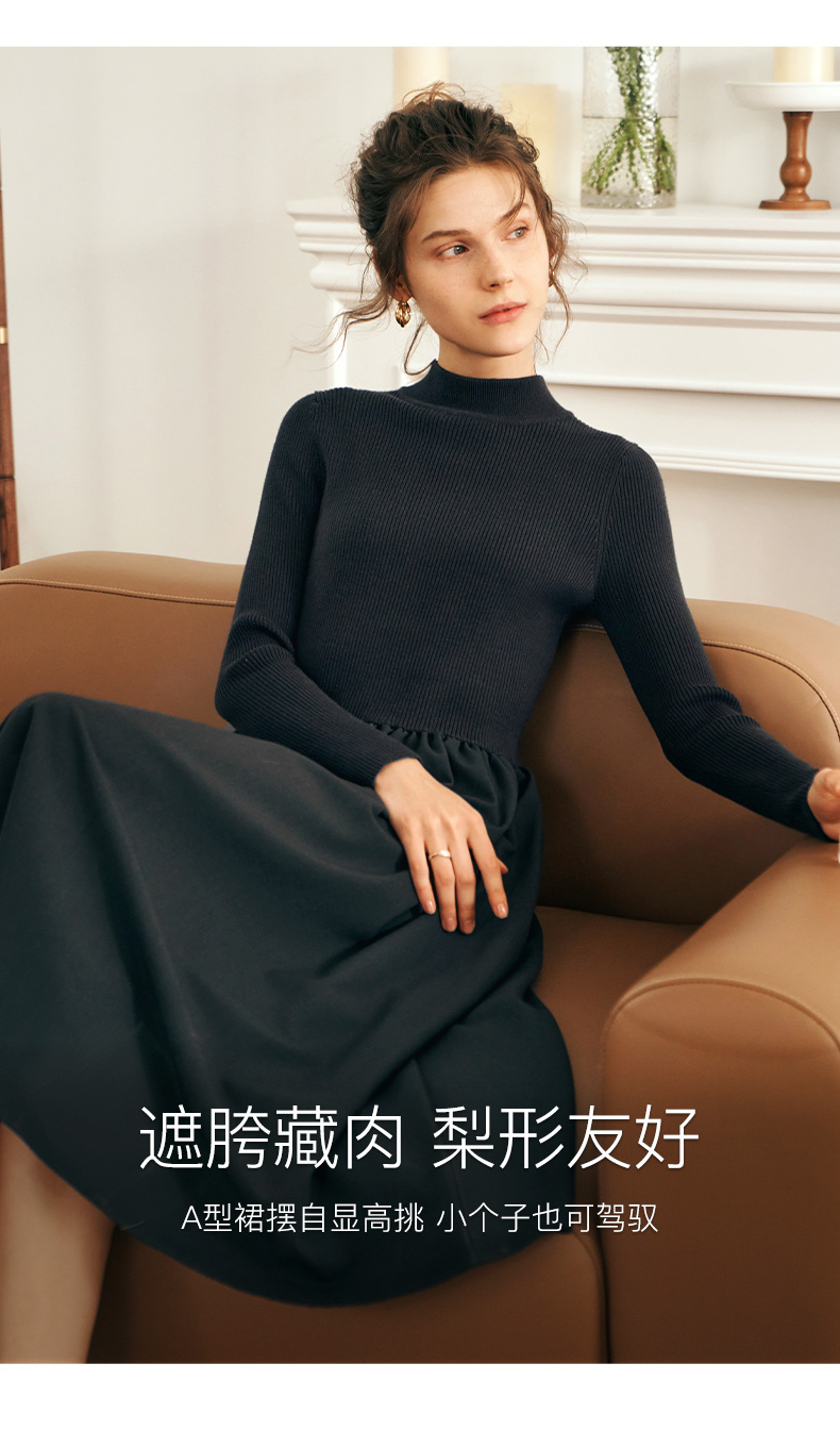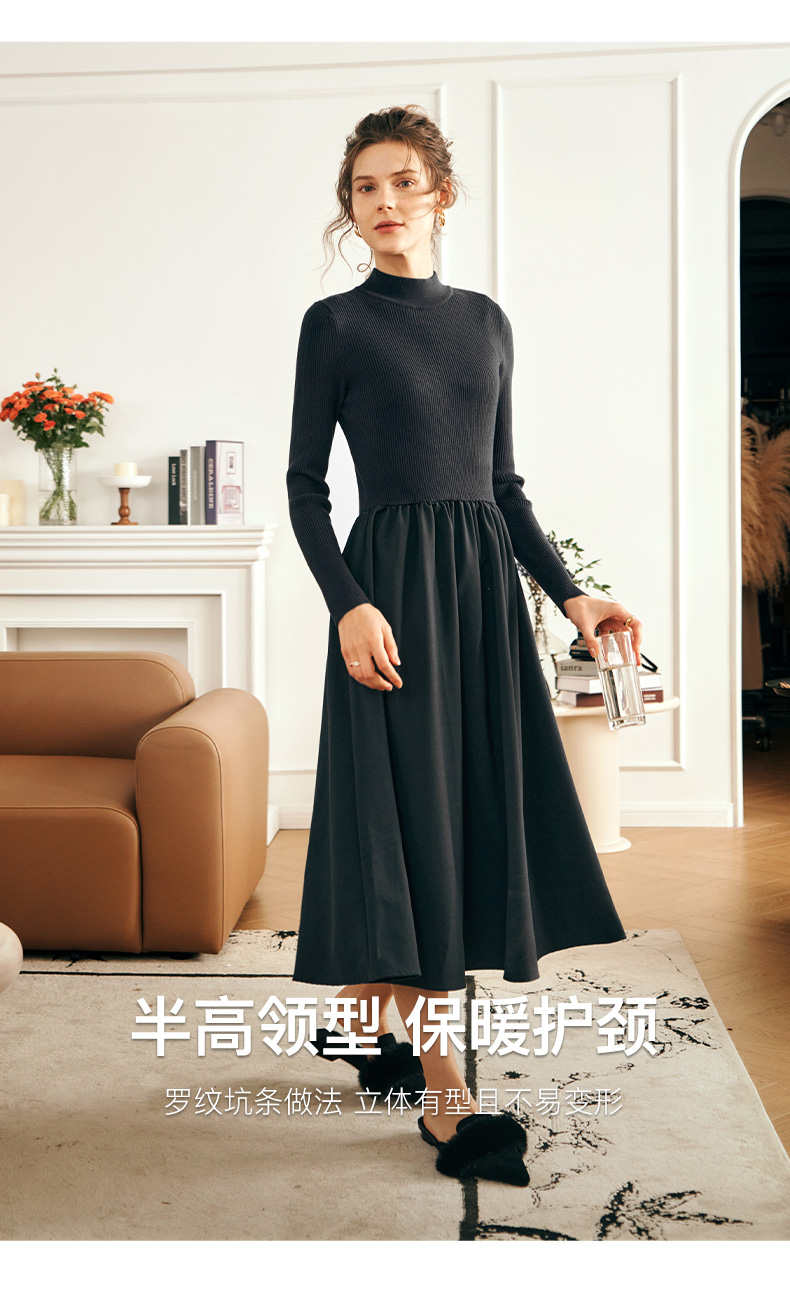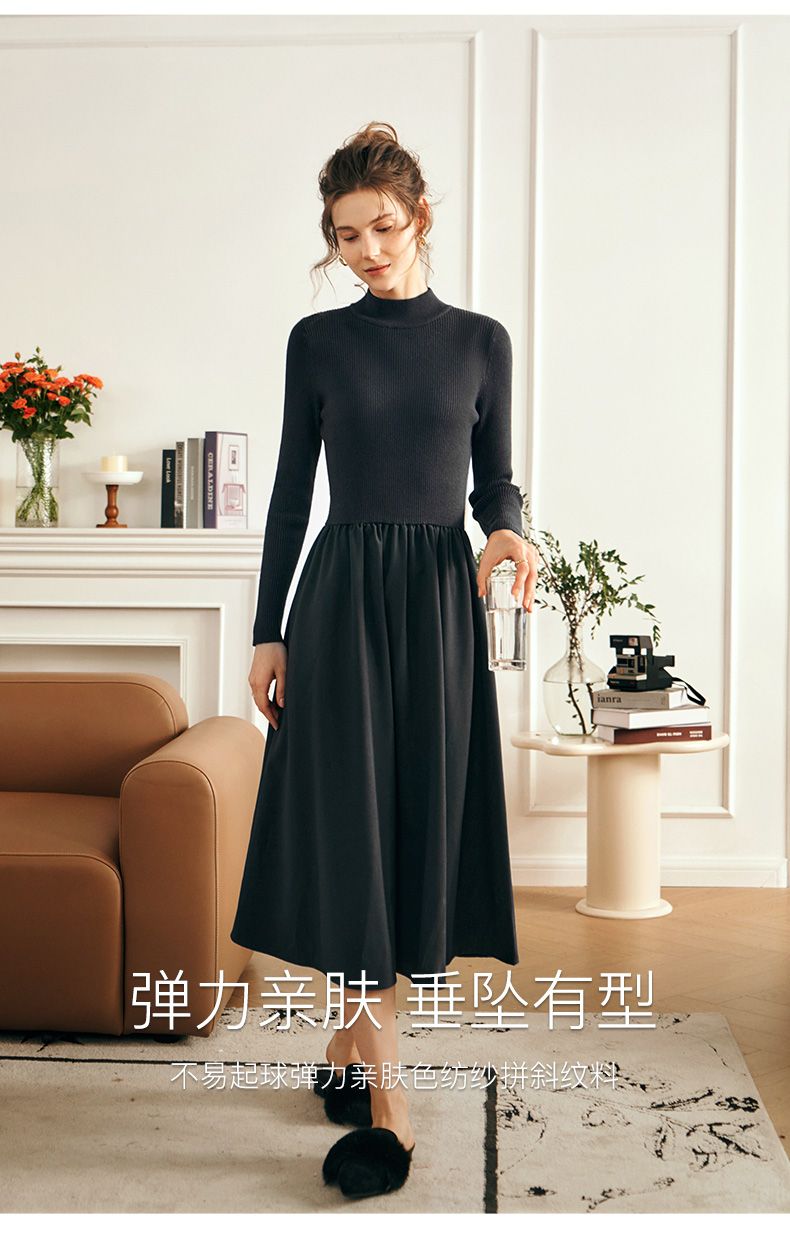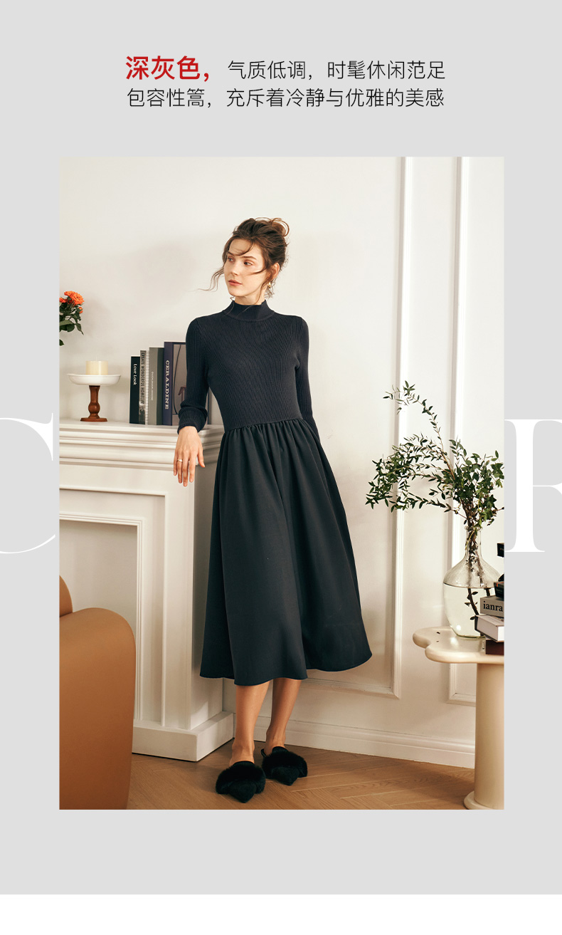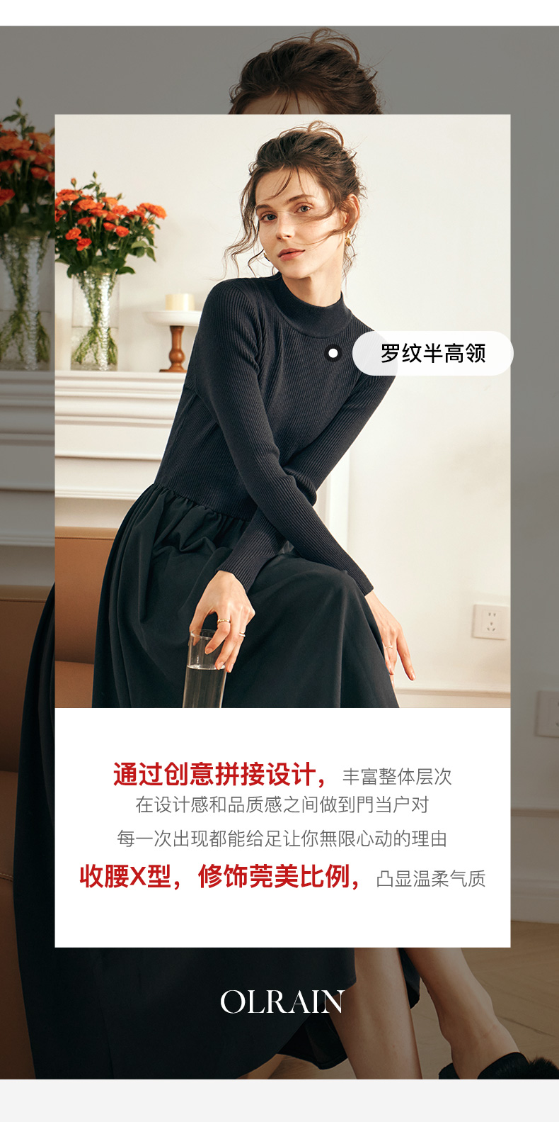 OLrain欧芮儿法式深灰色连衣裙女秋季2023新款赫本风气质显瘦长裙
