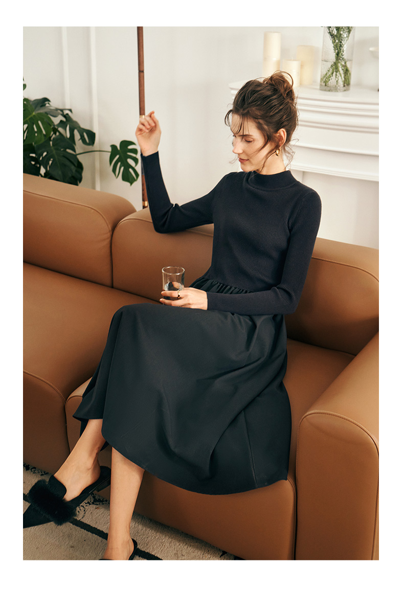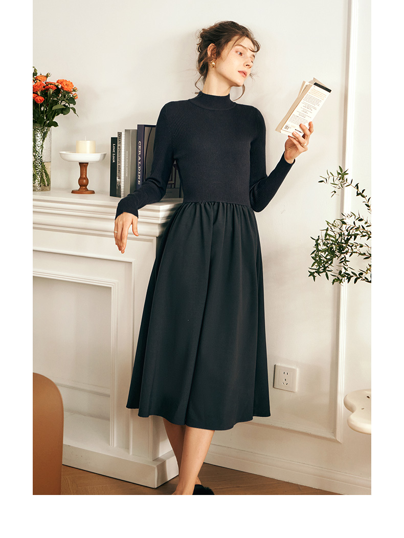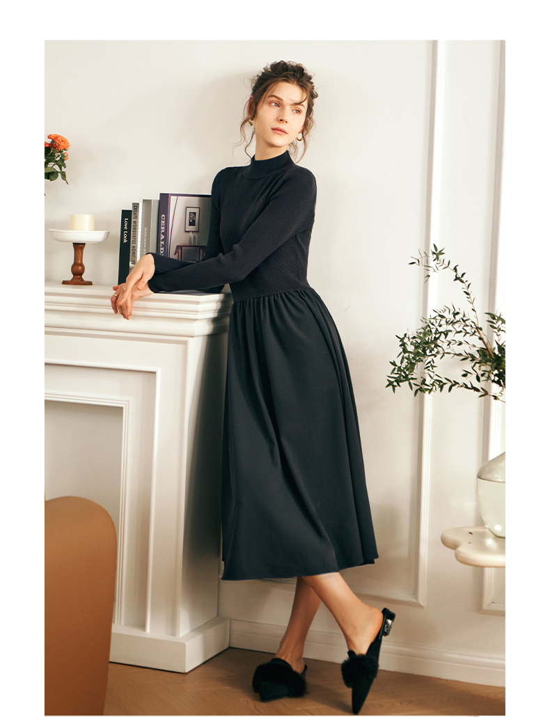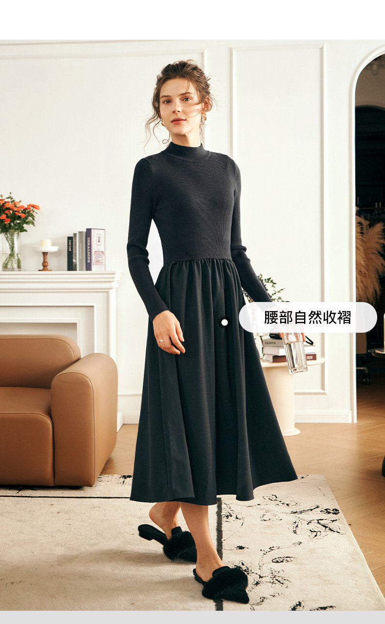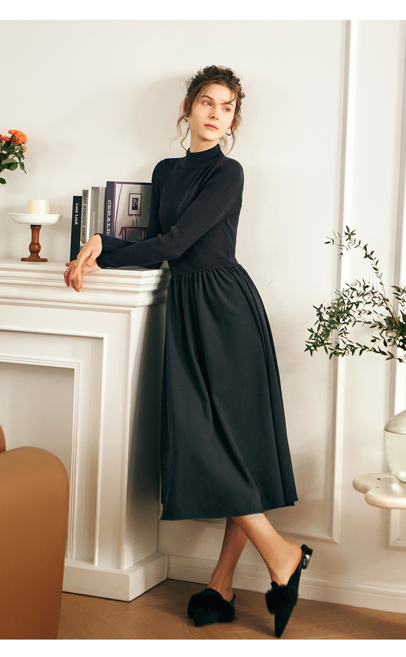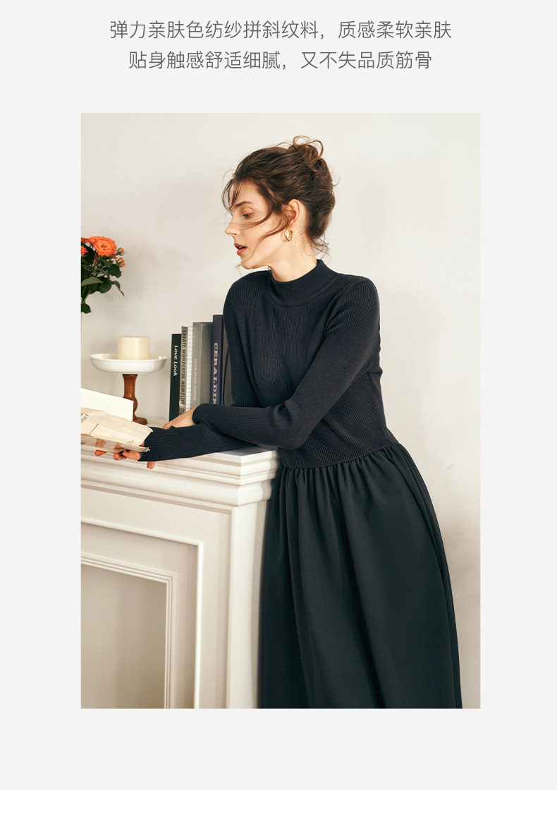OLrain欧芮儿法式深灰色连衣裙女秋季2023新款赫本风气质显瘦长裙