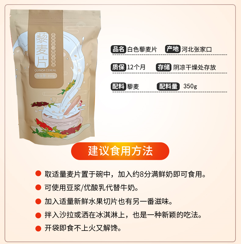沽源县谷麦郎即食白藜麦片350g*2/件