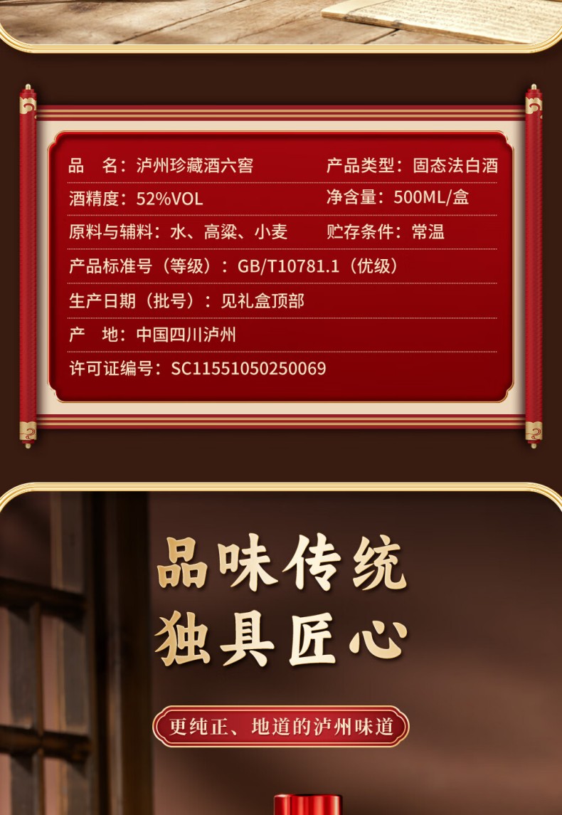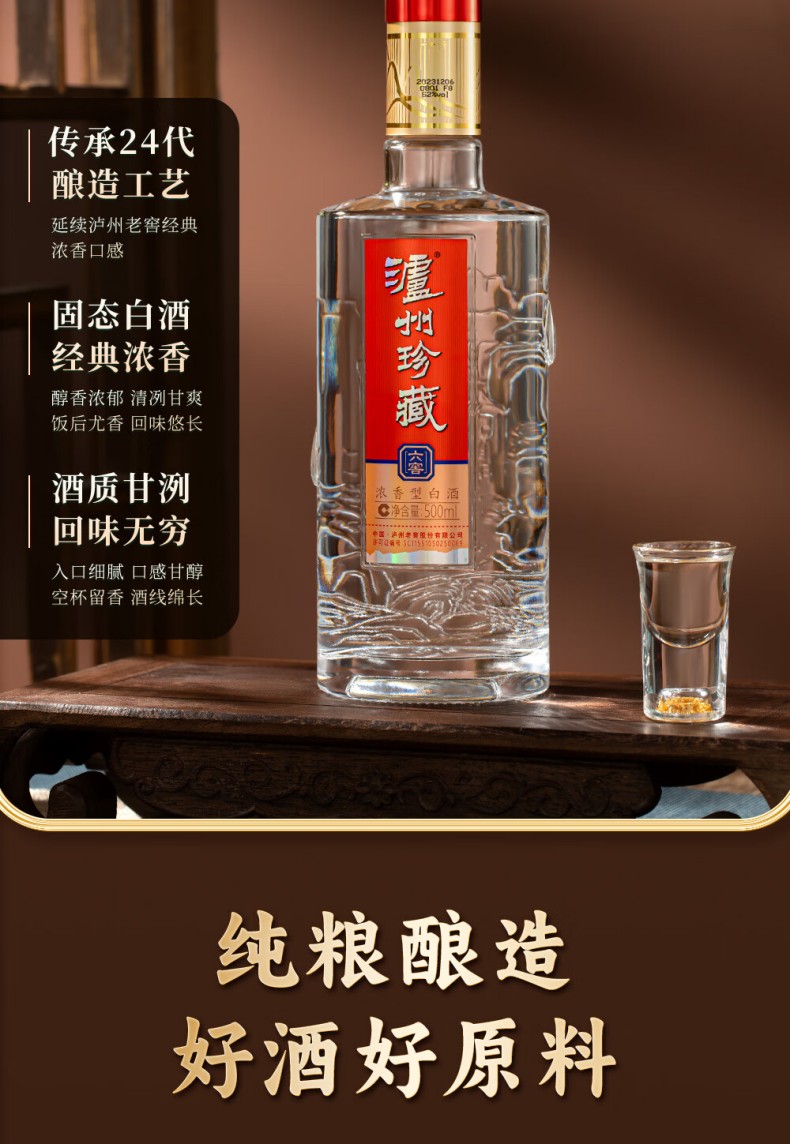 热卖中!!赠3个手提袋!【泸州老窖·泸州珍藏·六窖】52°浓香型白酒 500ml*6瓶整箱