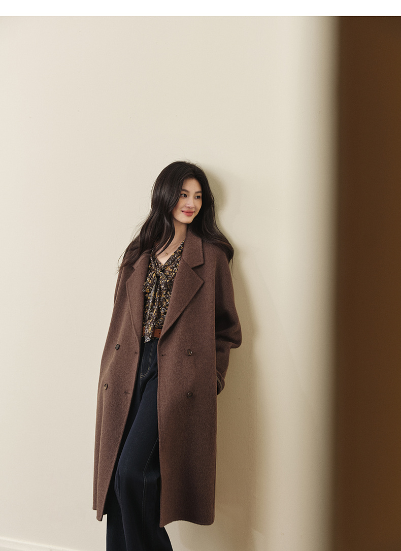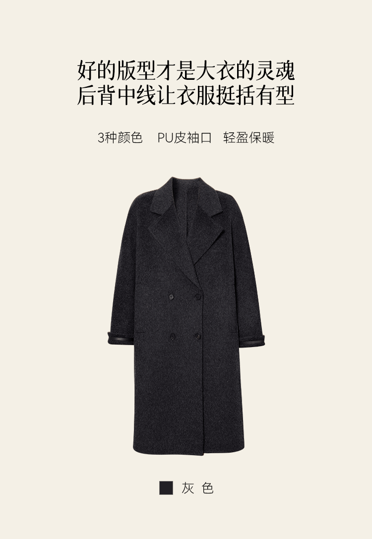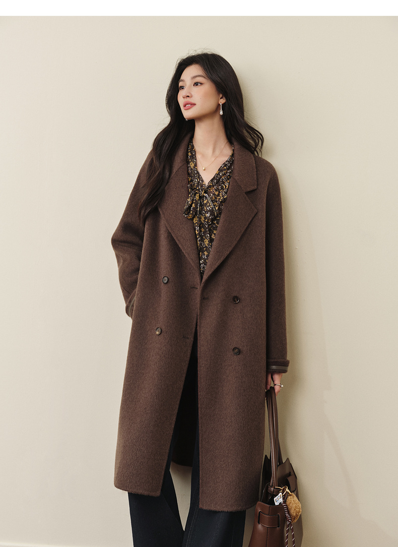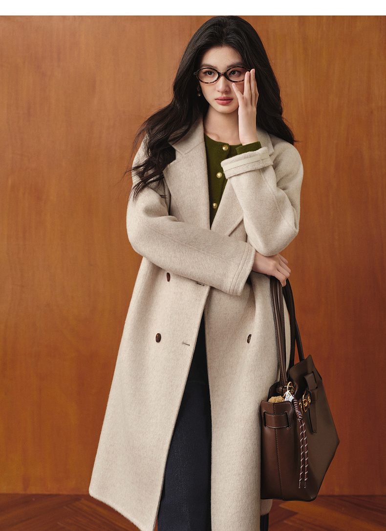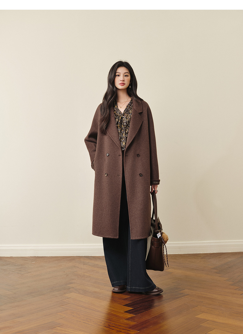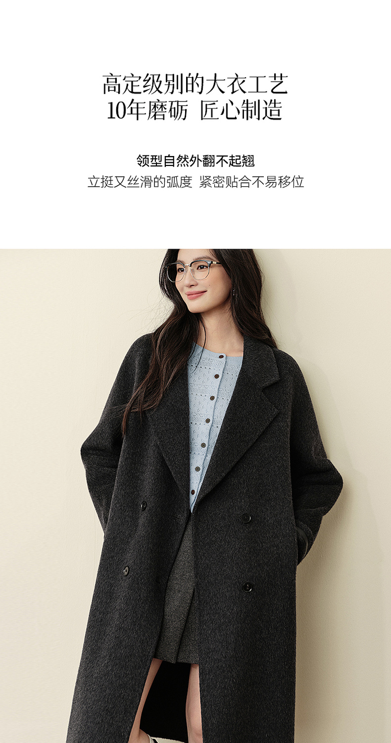 【严选】诗凡黎绵羊毛翻领长款大衣2025秋冬新款双排扣气质通勤双面呢外套7G8170731D