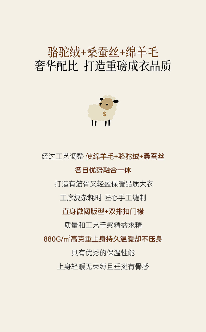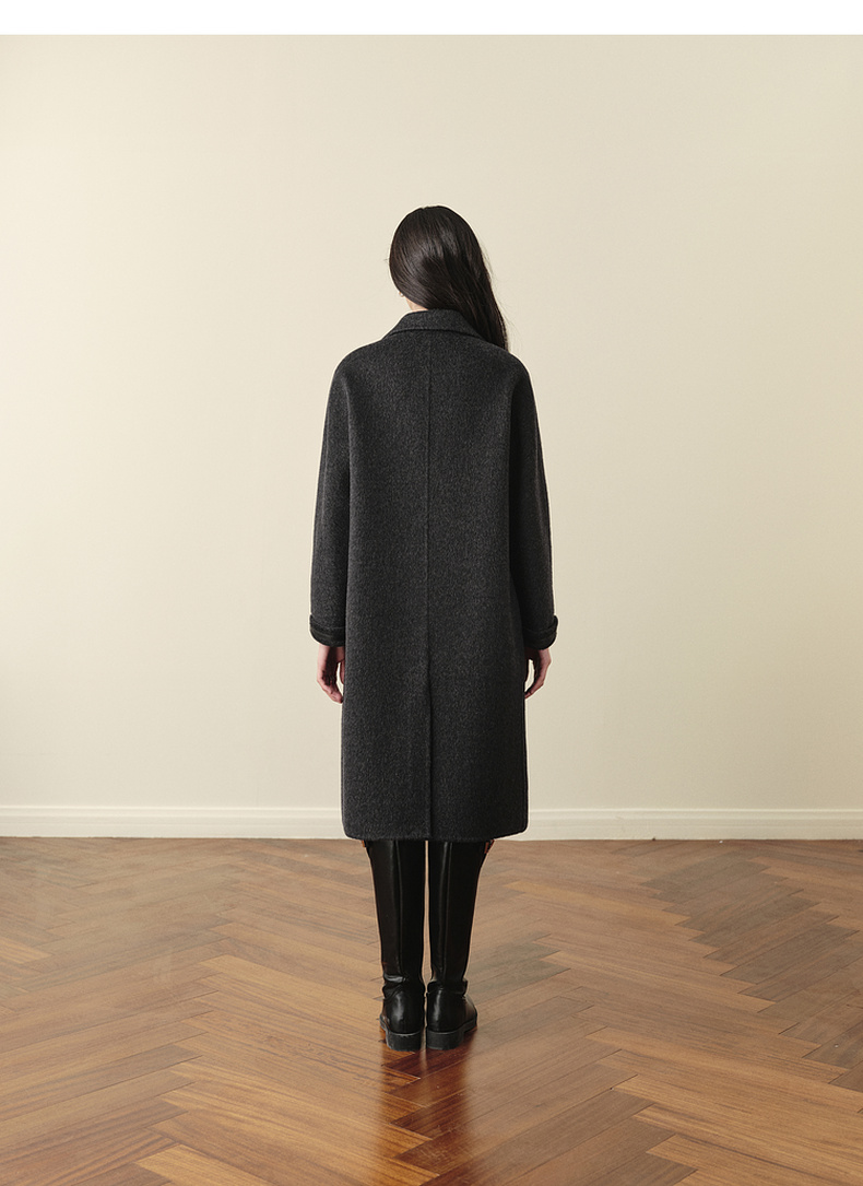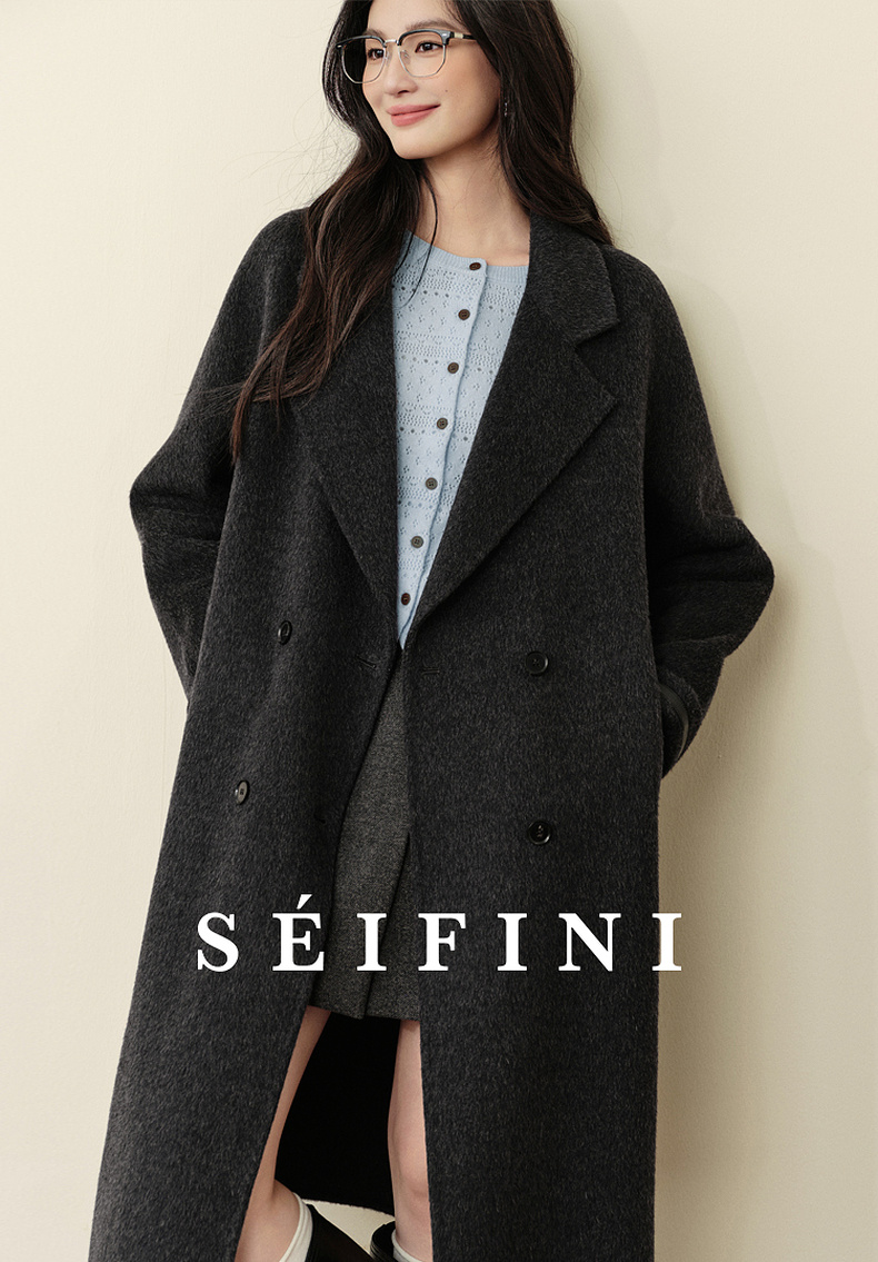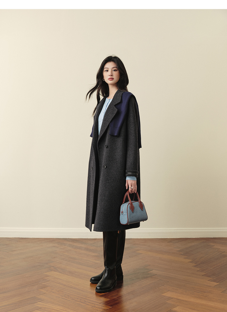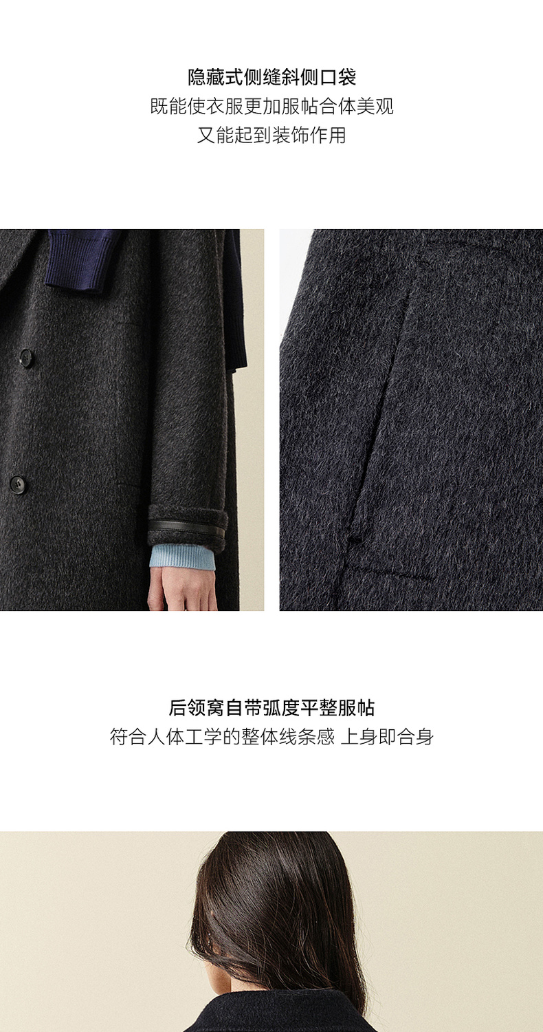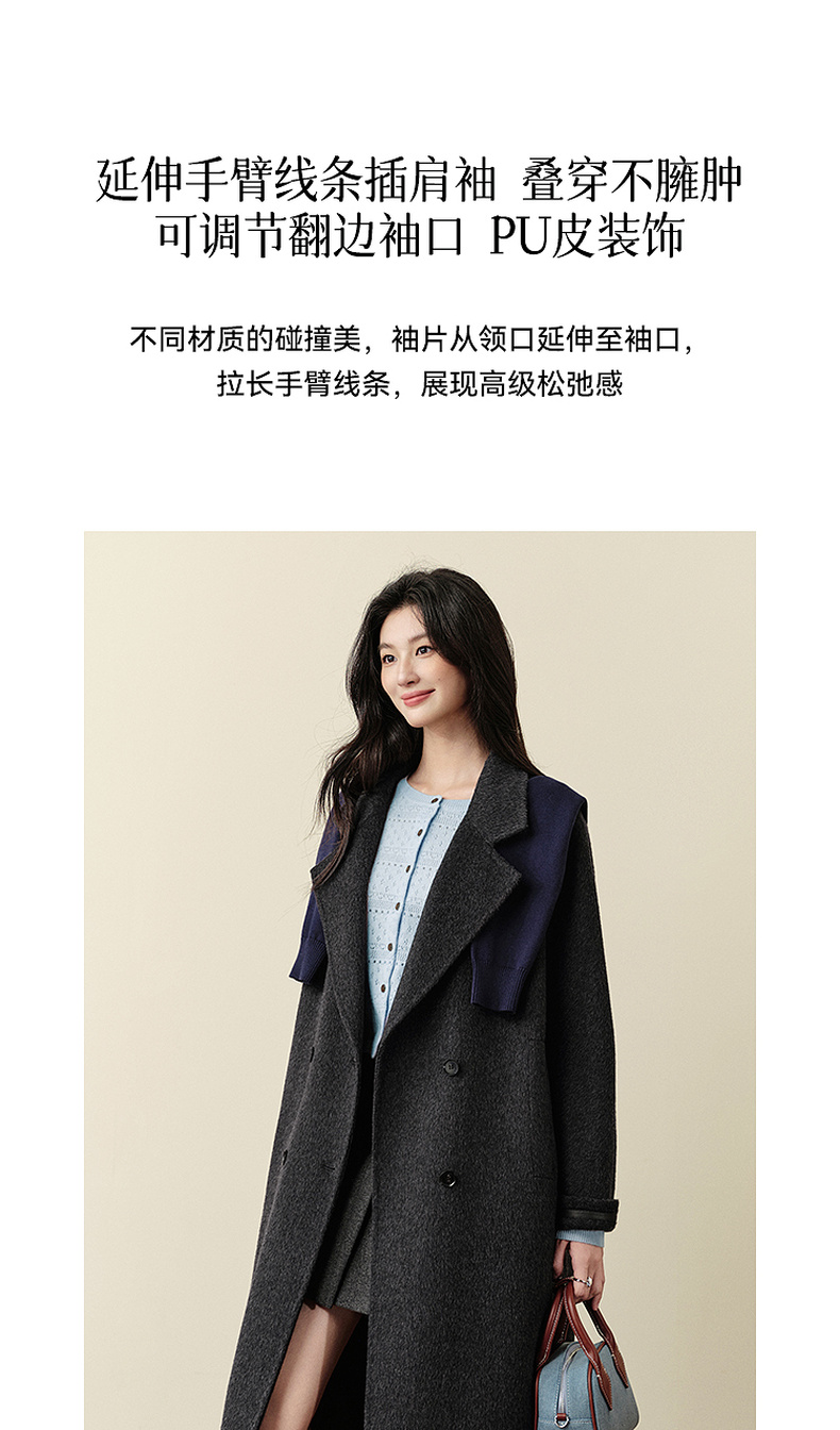 【严选】诗凡黎绵羊毛翻领长款大衣2025秋冬新款双排扣气质通勤双面呢外套7G8170731D