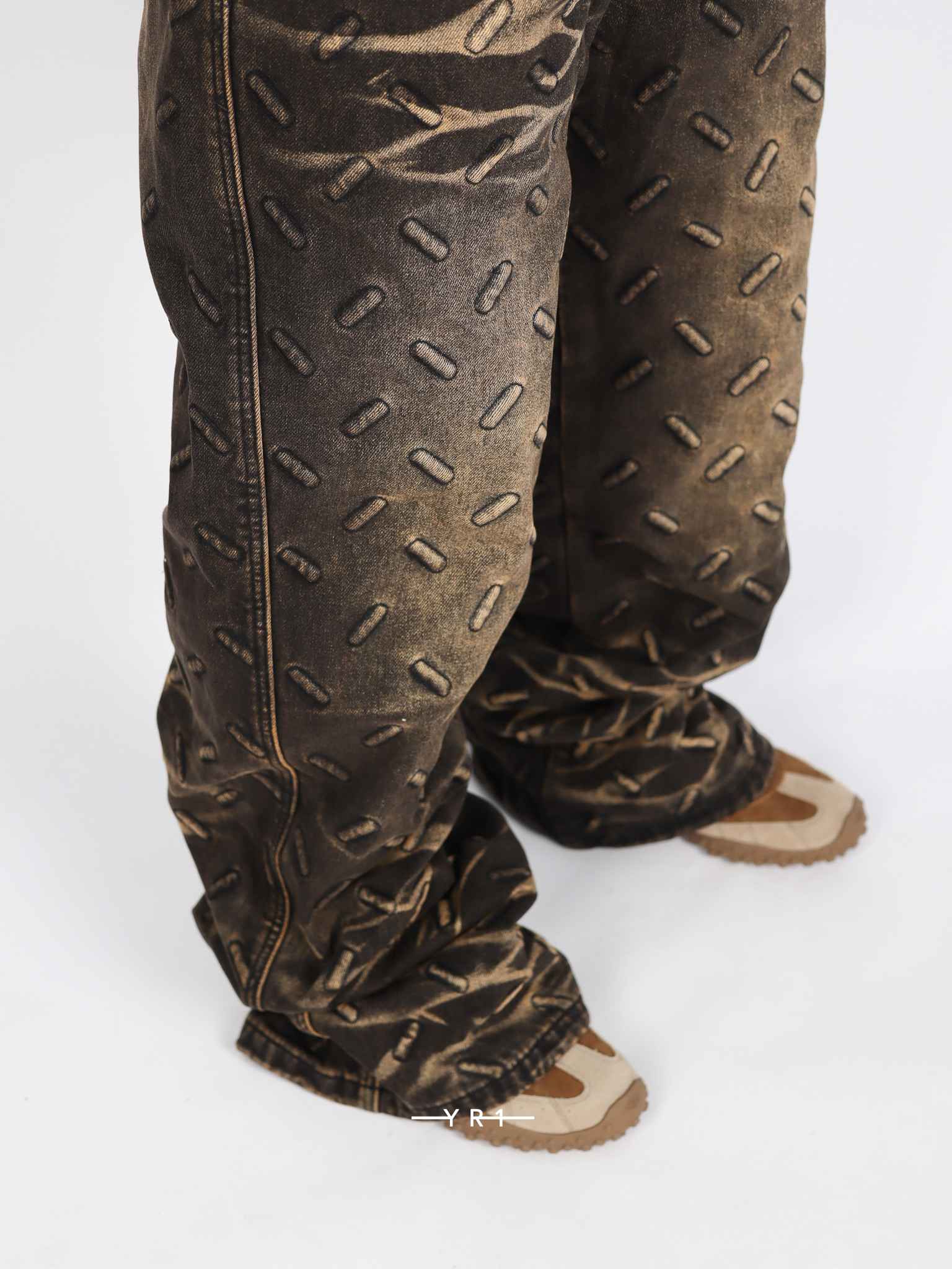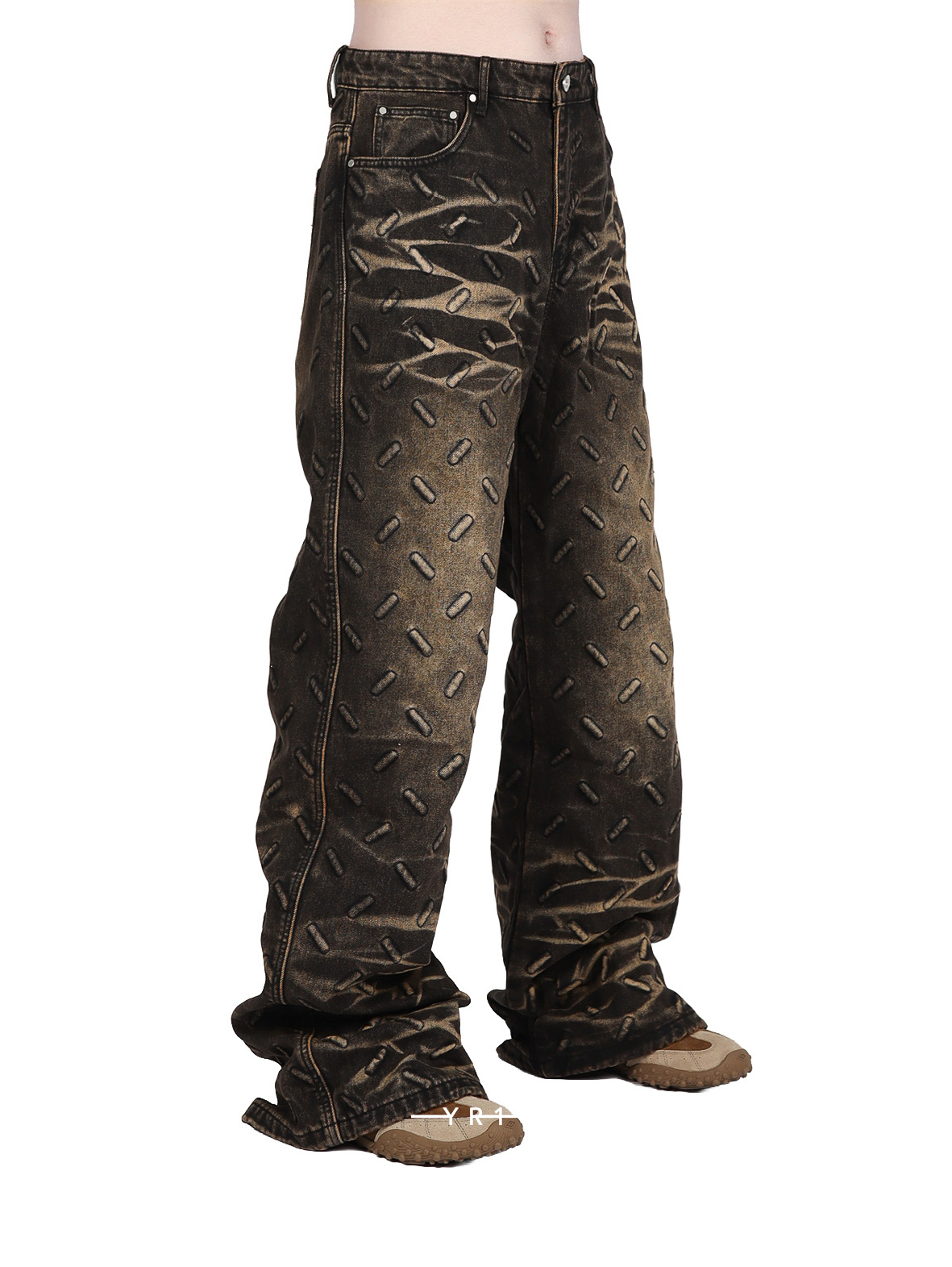 复古做旧金属纹牛仔裤