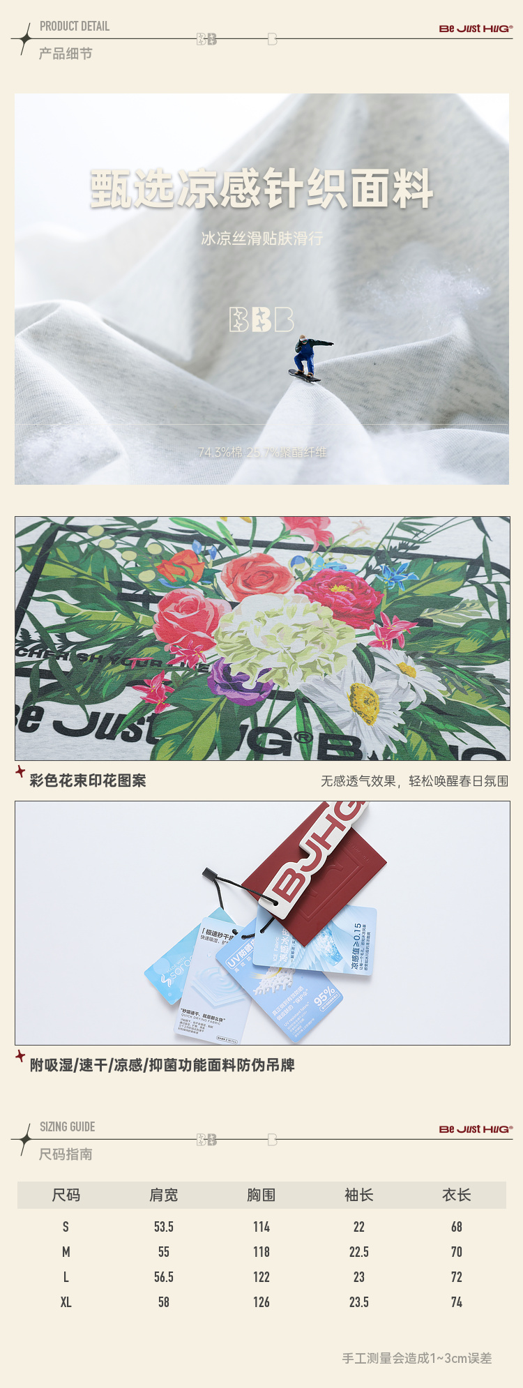 BJHG不计后果 美式短袖t恤男夏新款抗菌凉感防晒体恤休闲重磅短袖