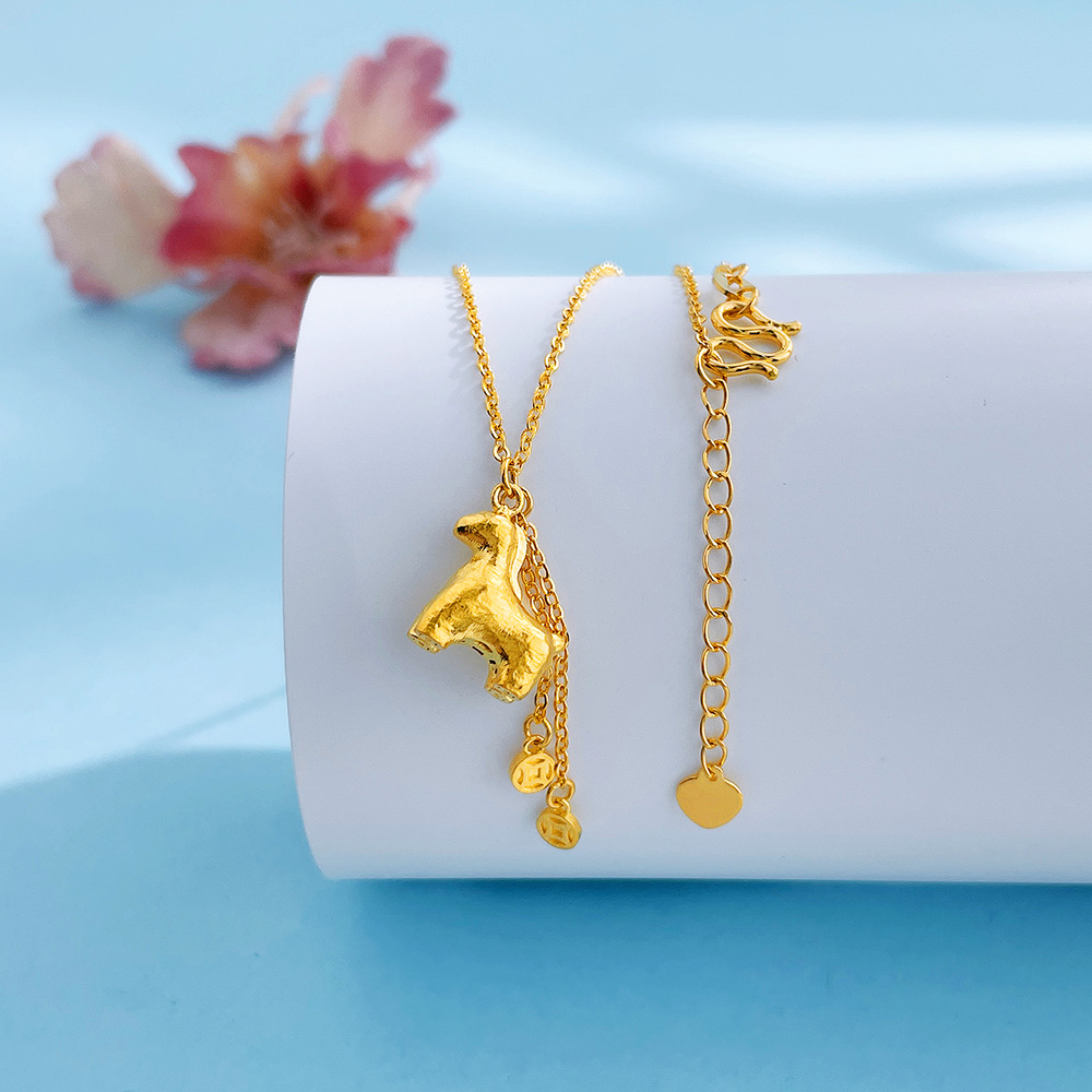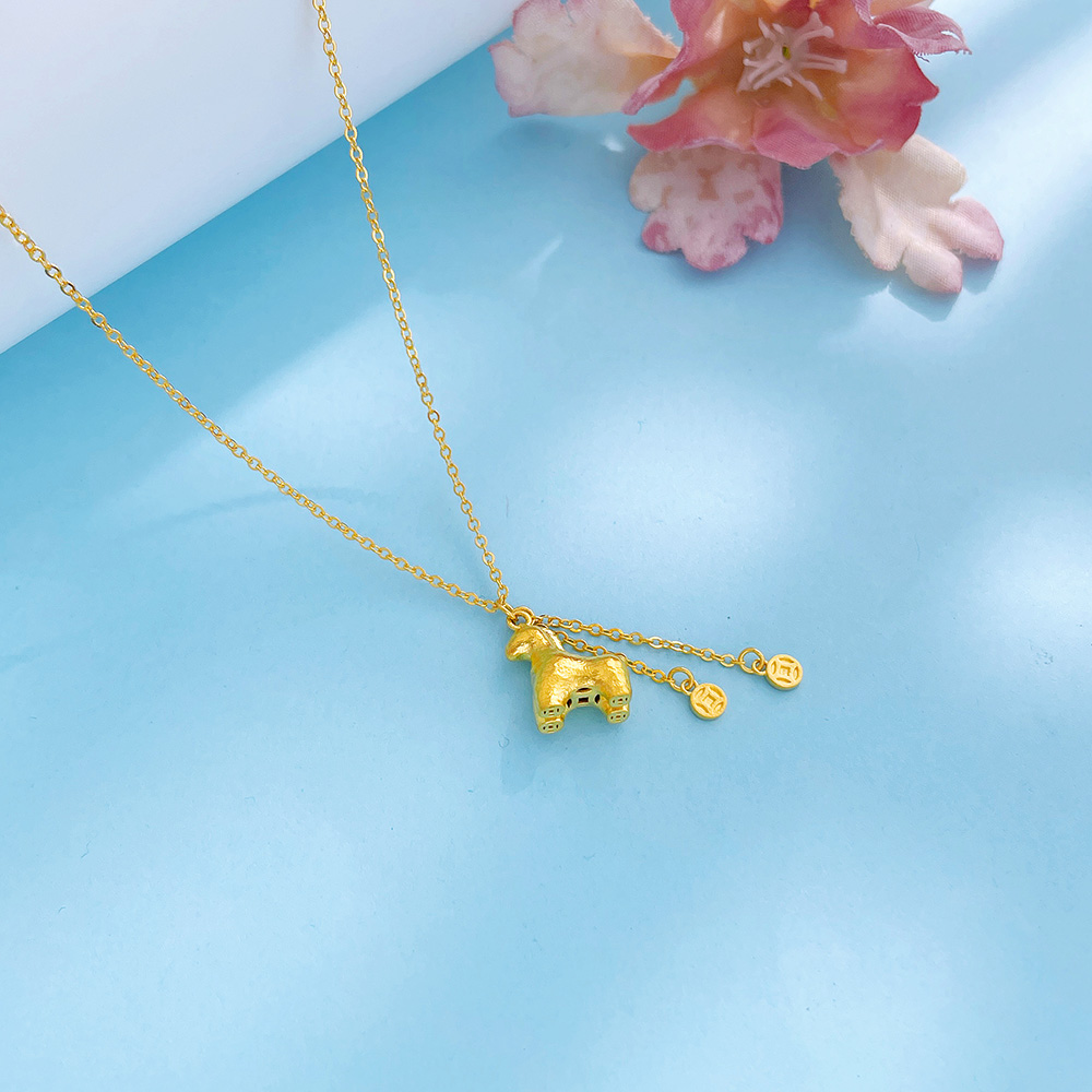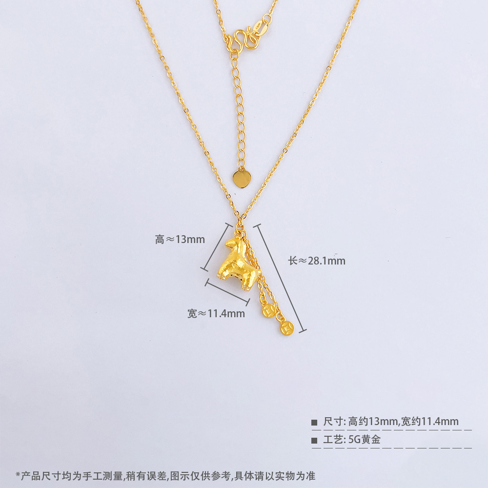 【限时克减150元】足金999 #卡通 5G黄金镂空新年战马招财纳福铜钱图案流苏马上有钱童趣木马调节套链(AG5GTL00522)(预售产品下单后不退款不退货不换货不补差价)