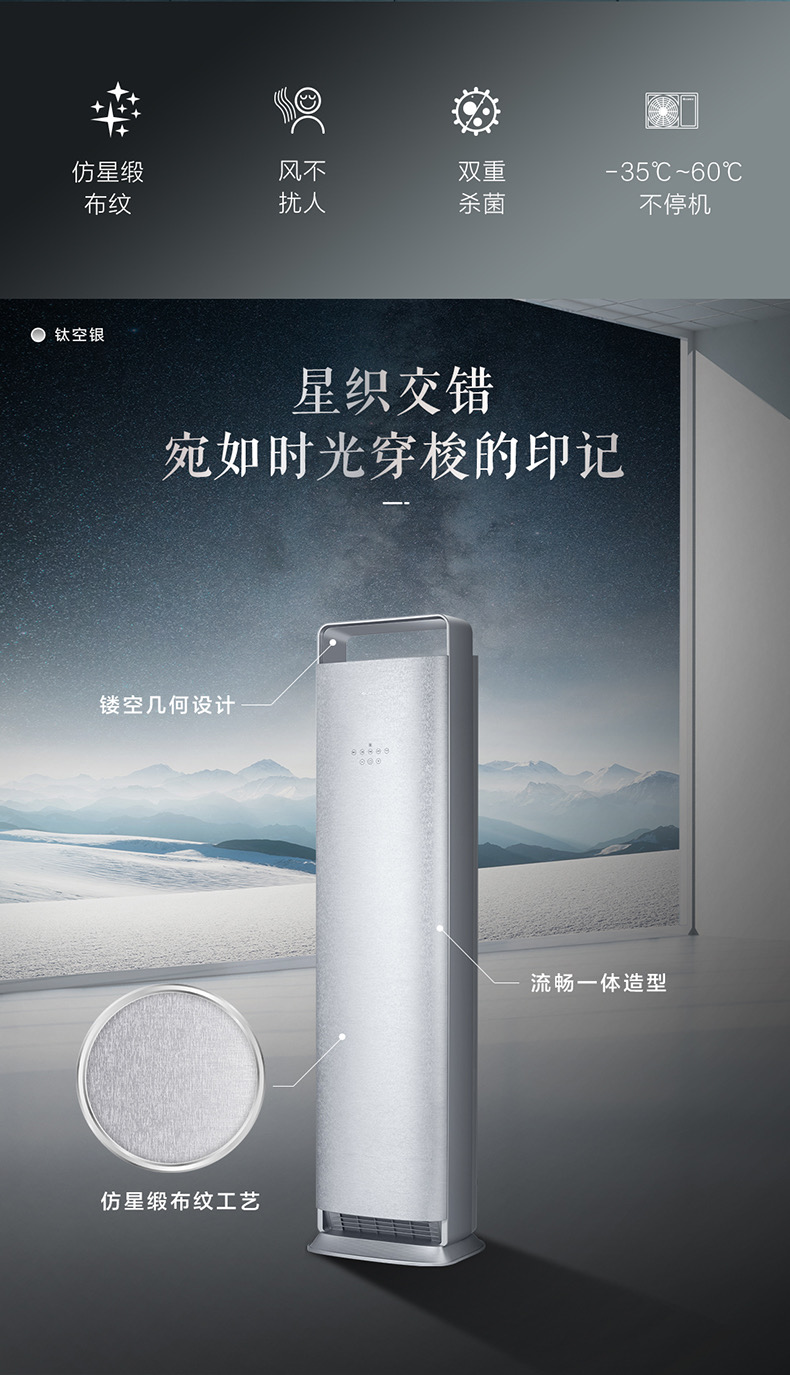 时光序变频冷暖3匹1级能效柜机空调 KFR-72LW/(72516)FNhAb-B1(WIFI)(钛空银)