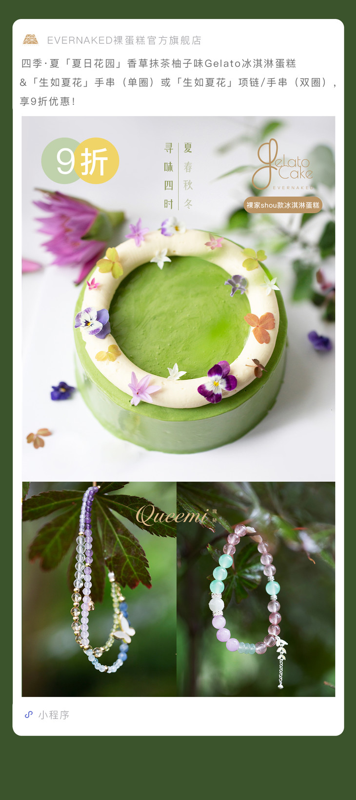 9折优惠| 四季·夏「夏日花园」香草抹茶柚子味Gelato冰淇淋蛋糕&「生如夏花」项链/手串