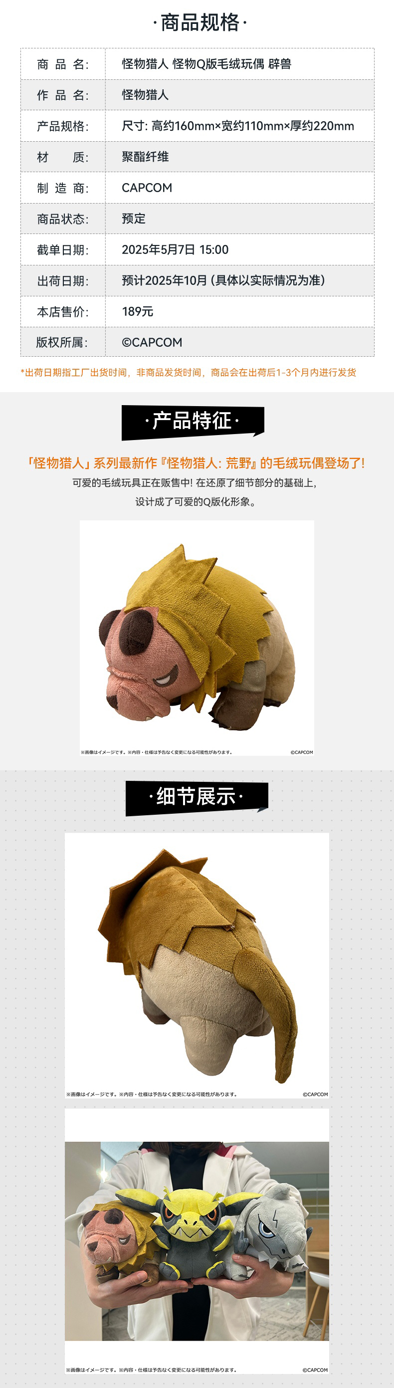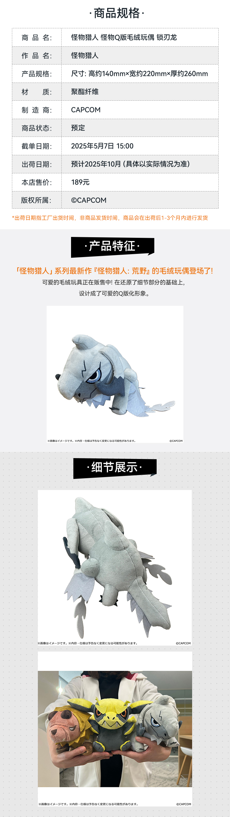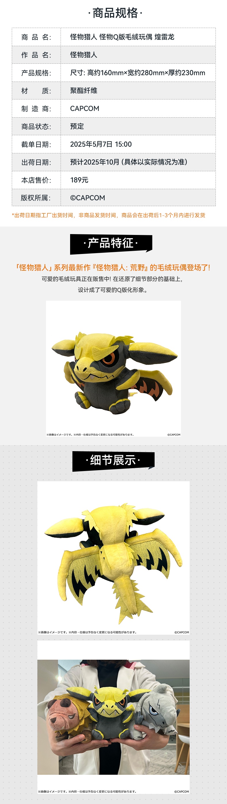 【GSC现货】怪物猎人 怪物Q版毛绒玩偶 煌雷龙/辟兽/锁刃龙