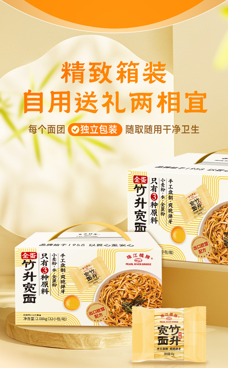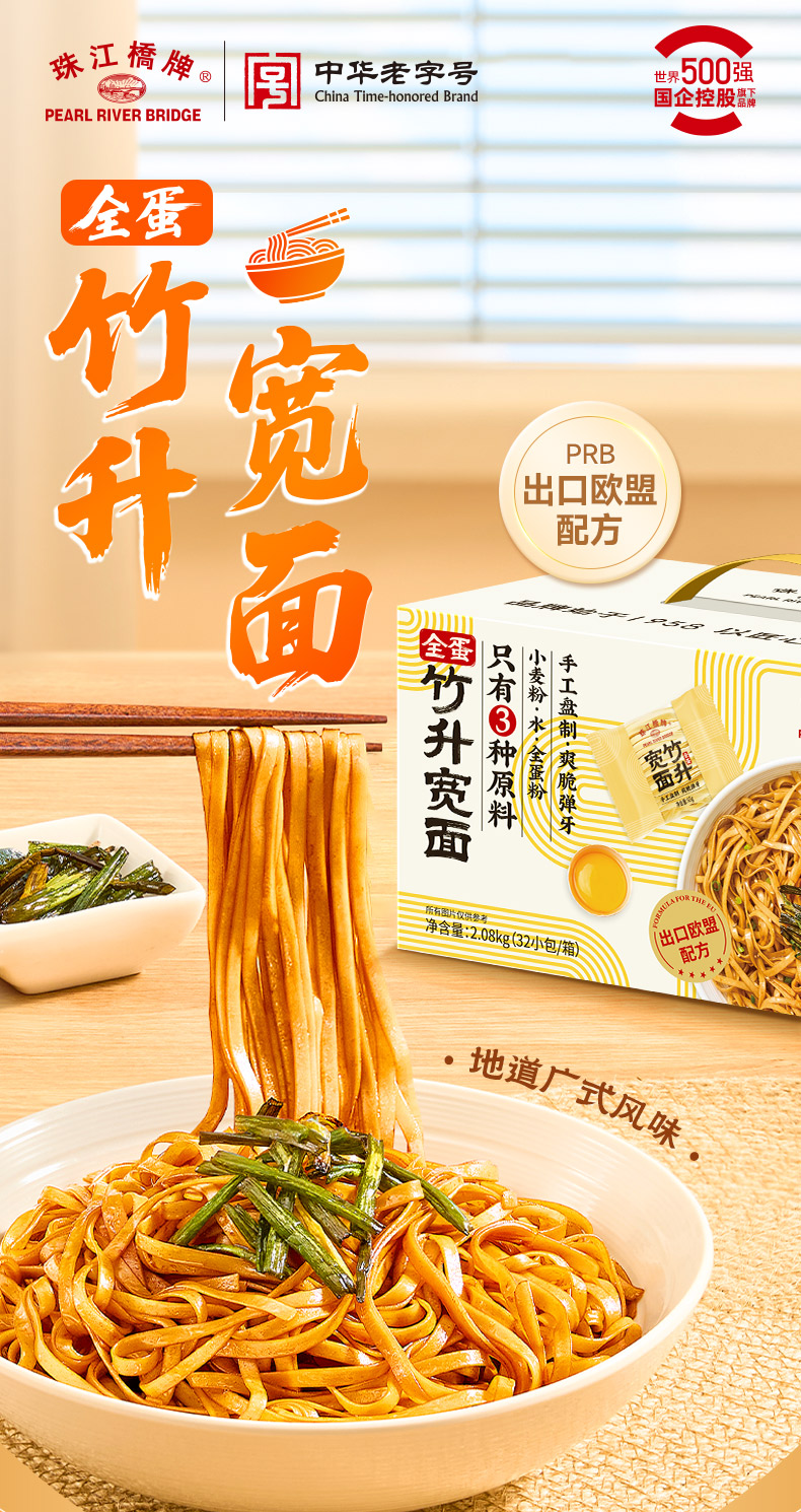 【新品热销】珠江桥牌 宽面-全蛋竹升宽面2.08kg 手工挂面(65gx32小包)