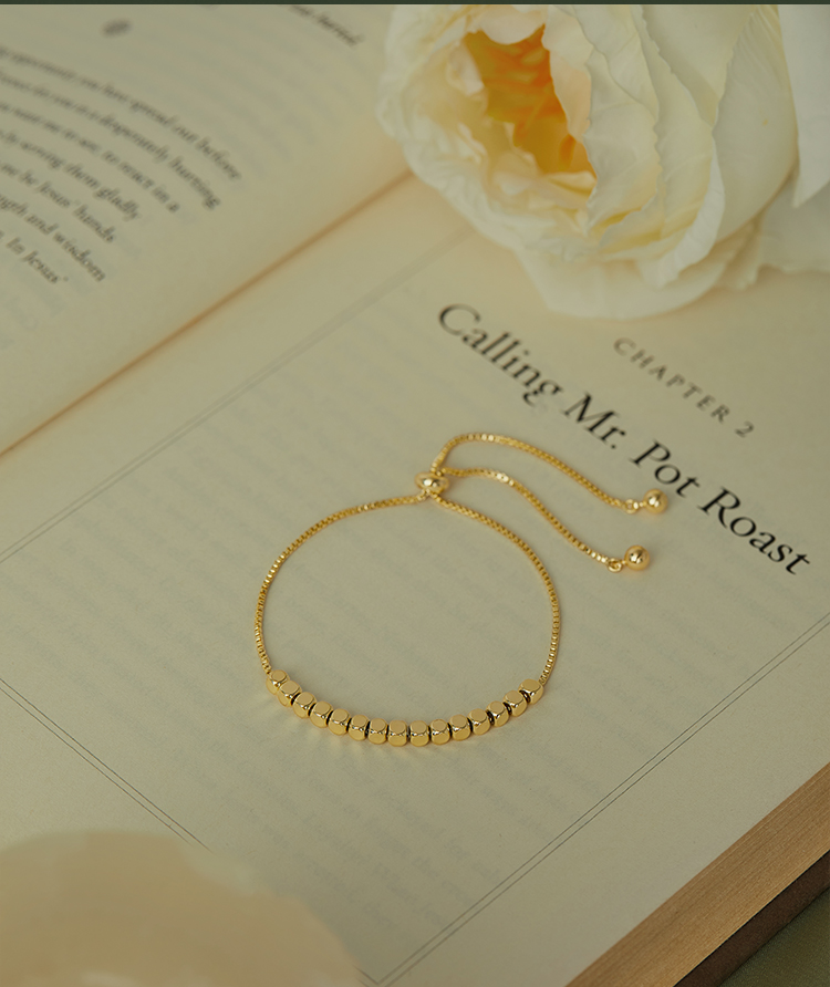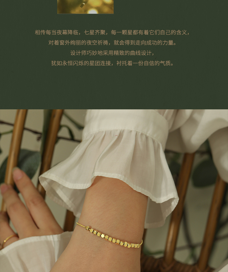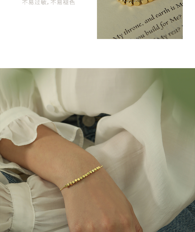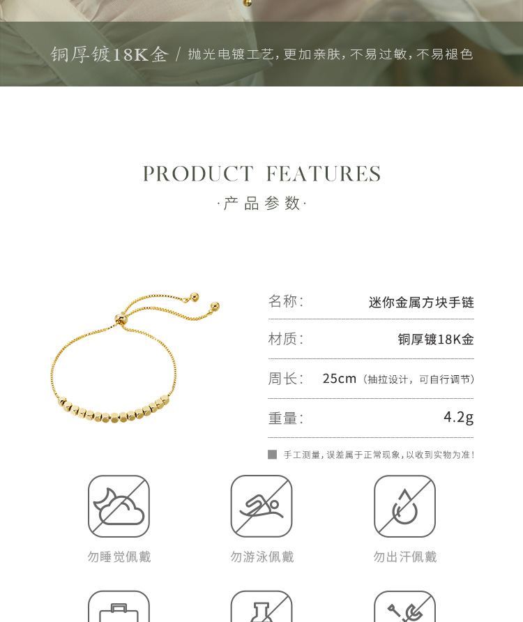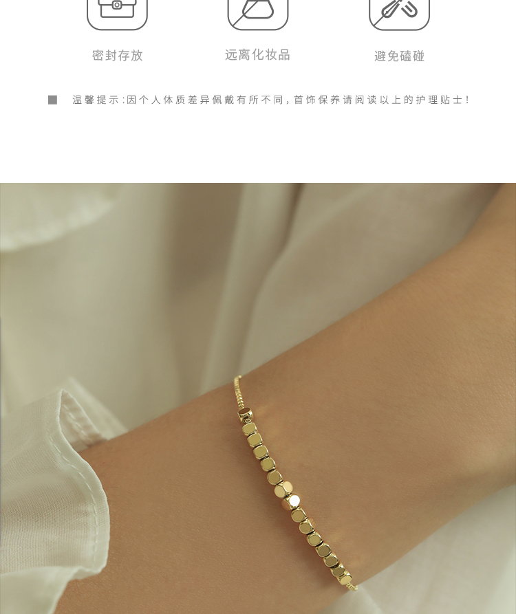 Oflye潮流饰品 高质感碎银几两方块手链女镀18k金色小众轻奢方砖手串