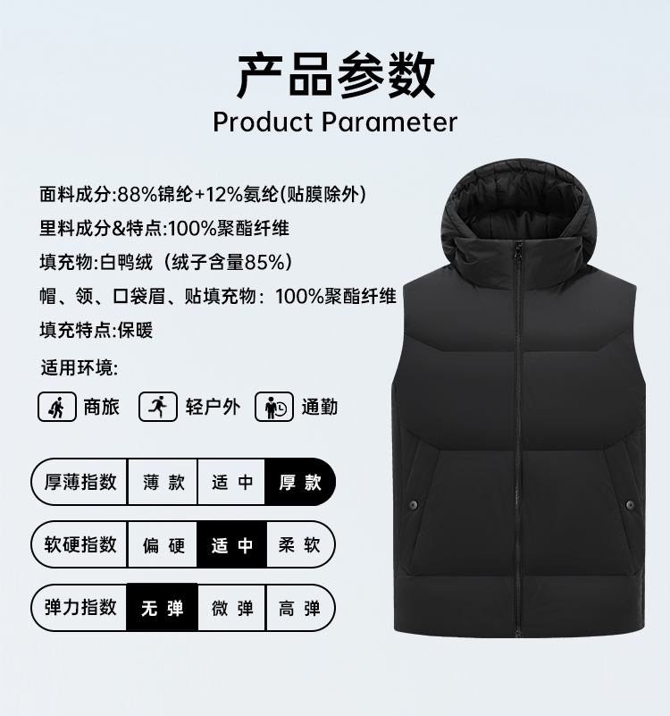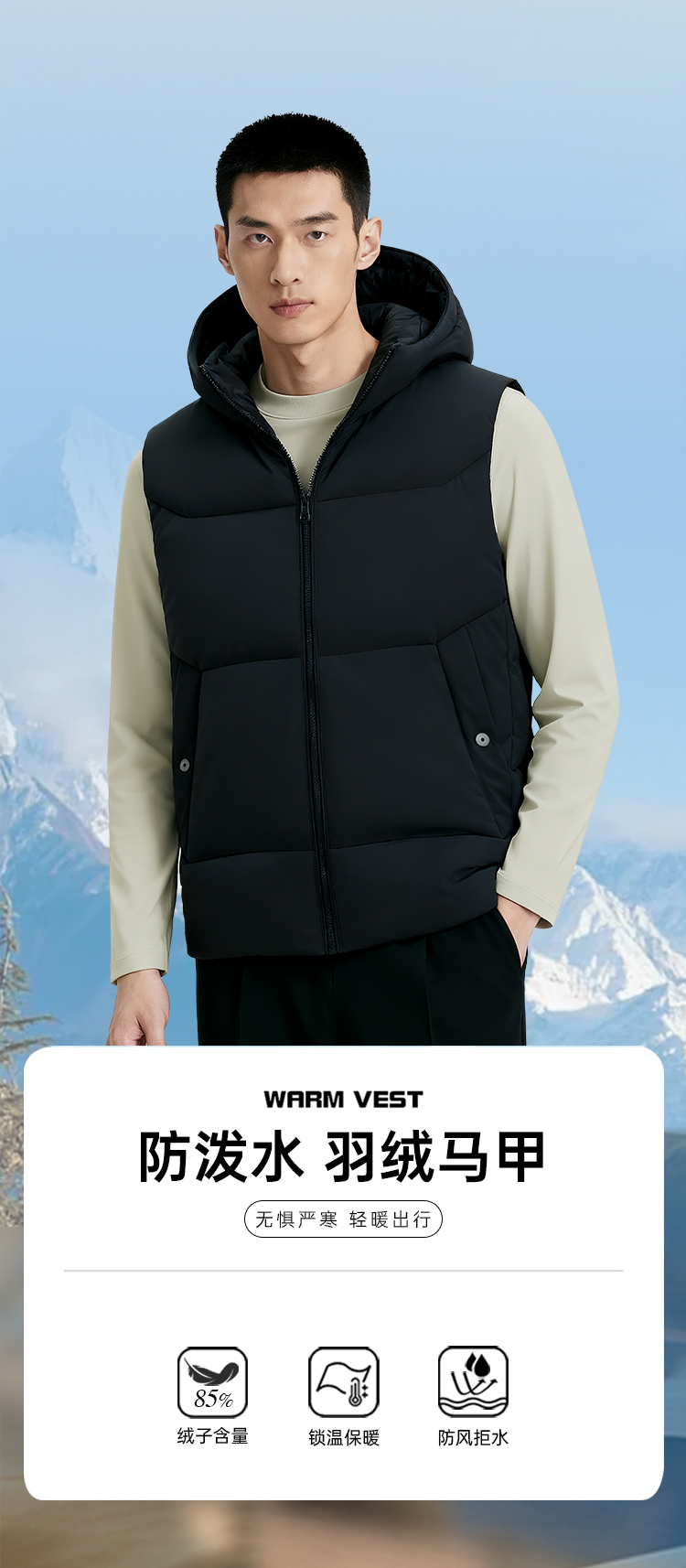 【实付满399送保温杯】【防风防水加厚羽绒马甲】白鸭绒休闲马甲防风保暖无袖羽绒服外套BT504