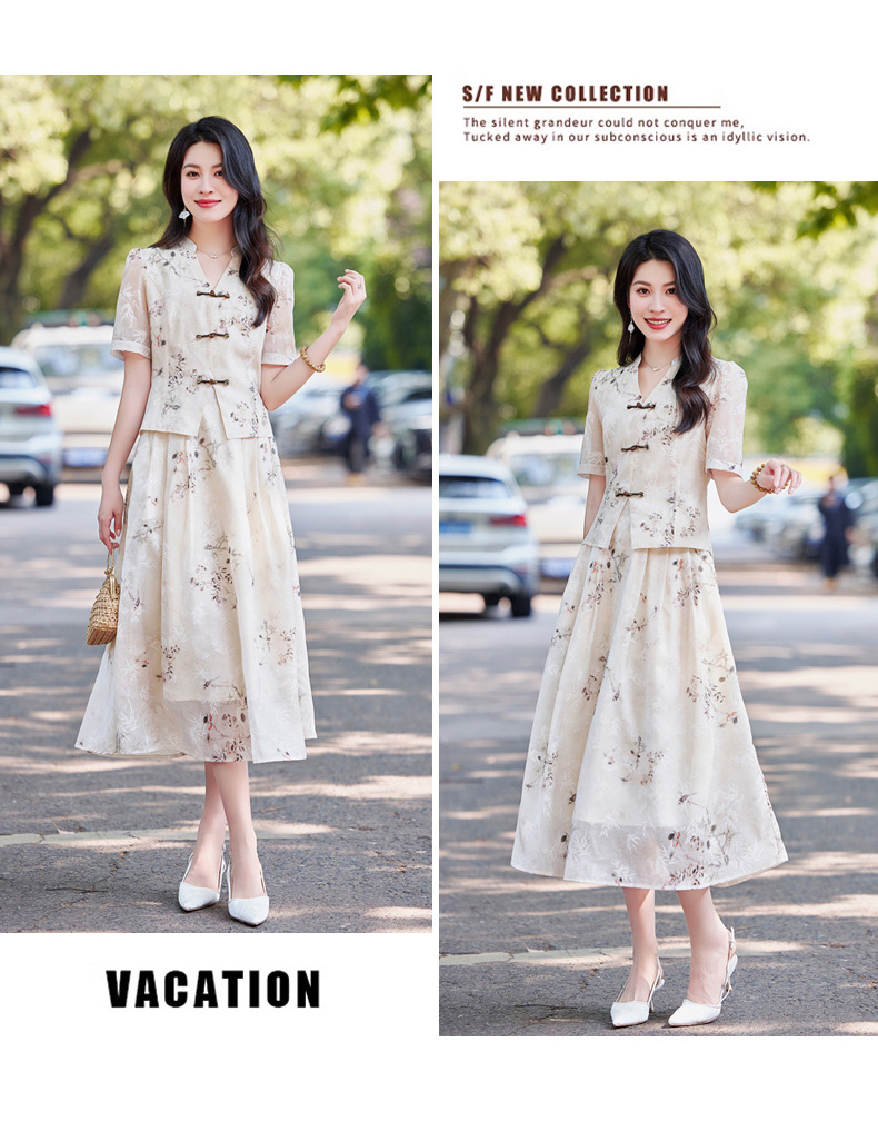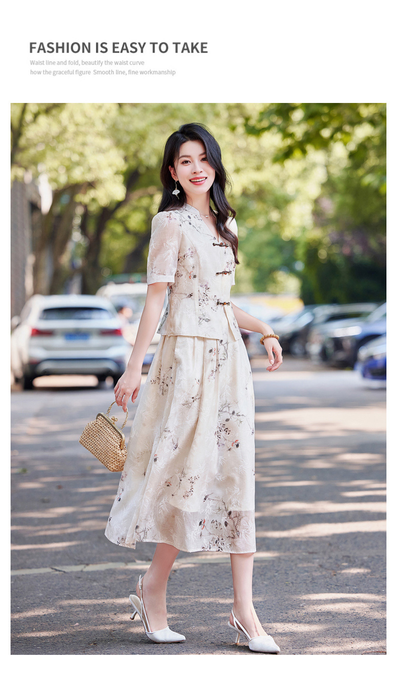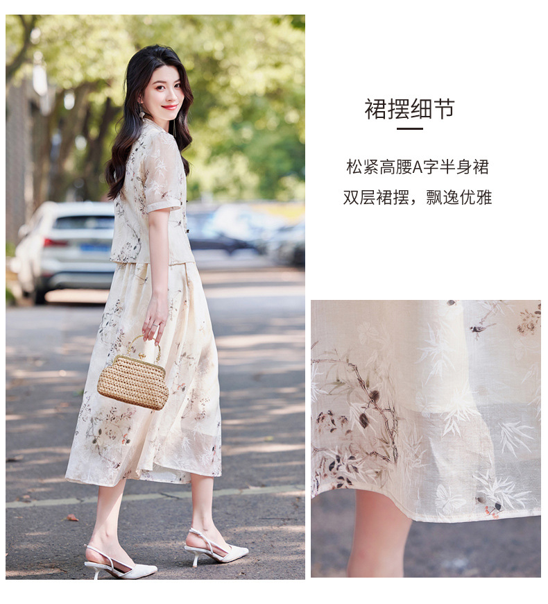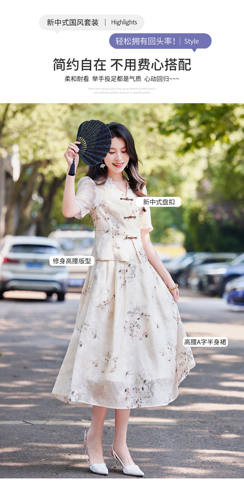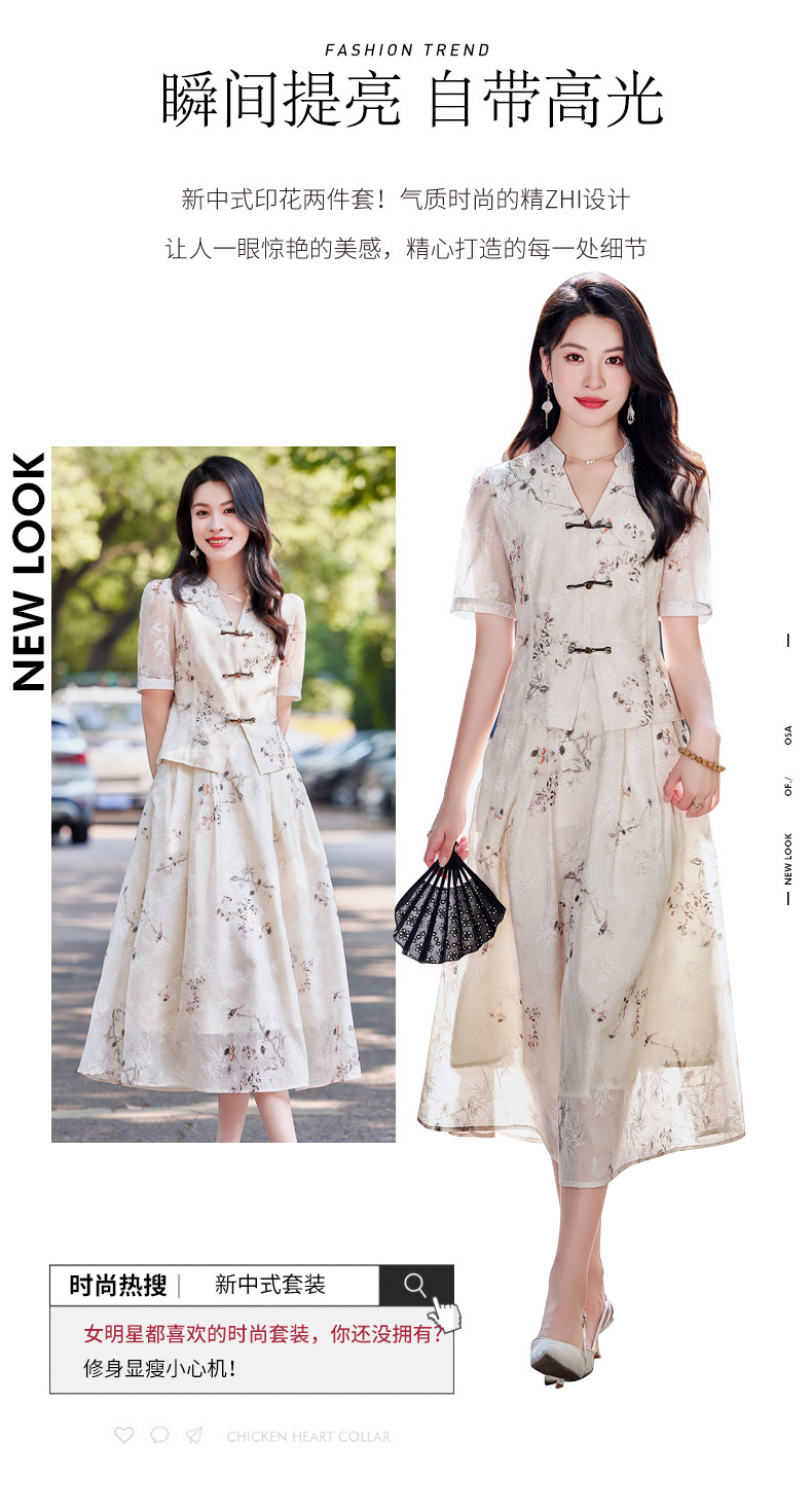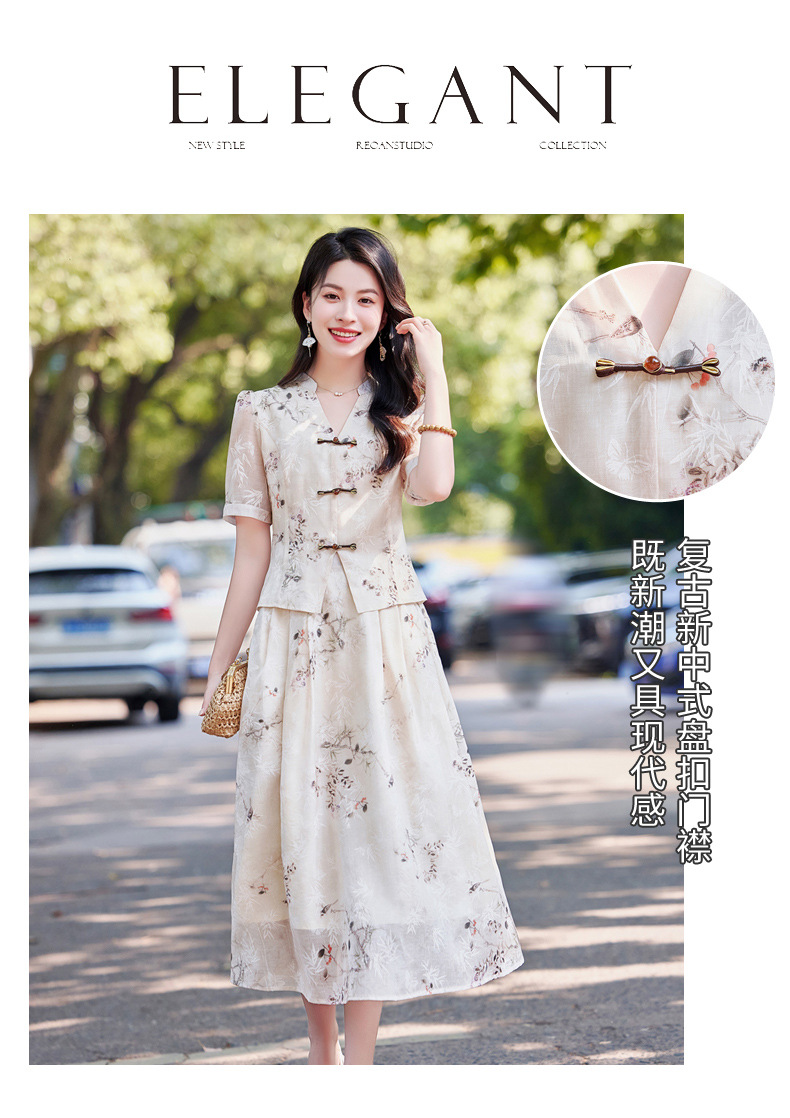 新中式改良显瘦,盘扣国风印花半身裙两件套HR-SYY733