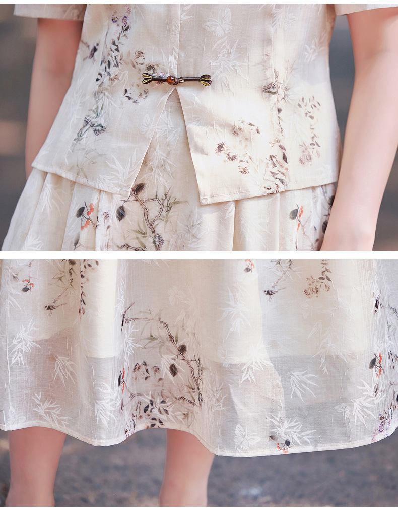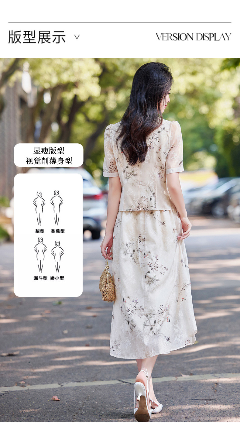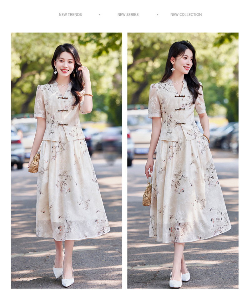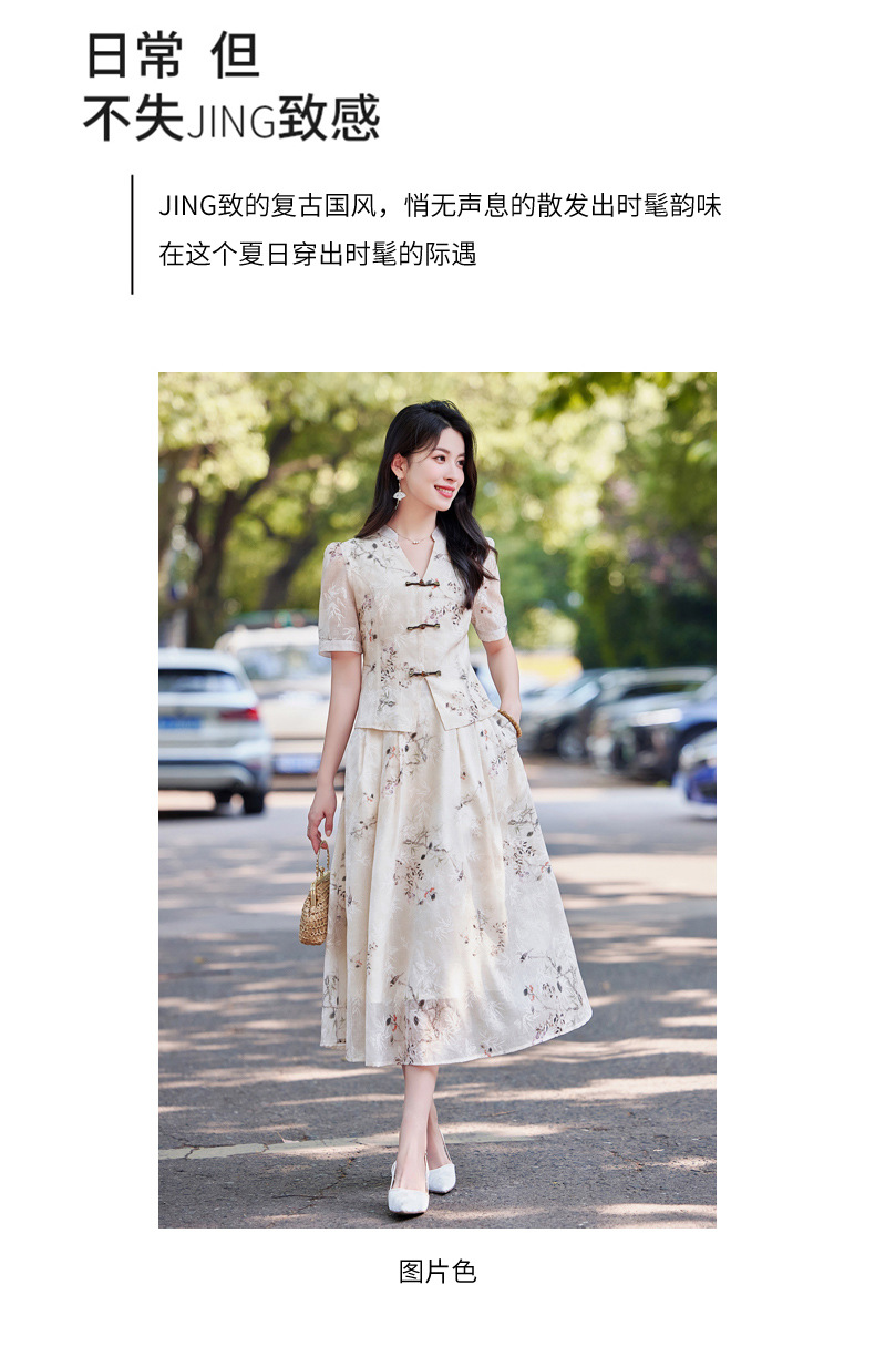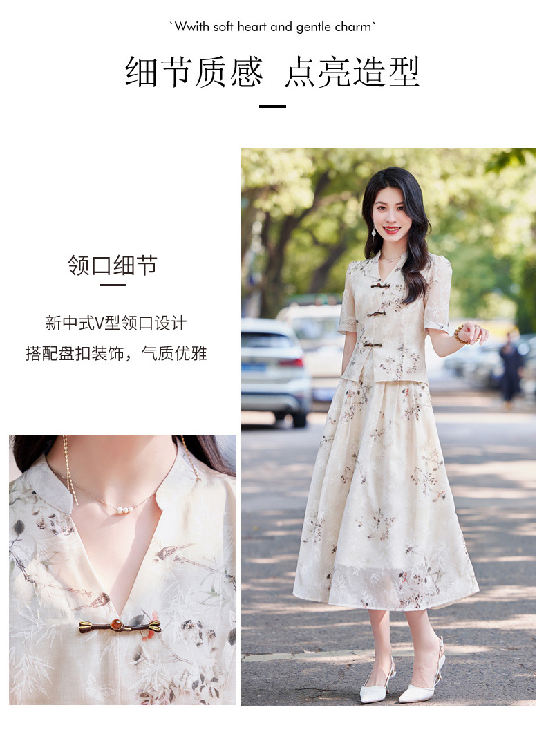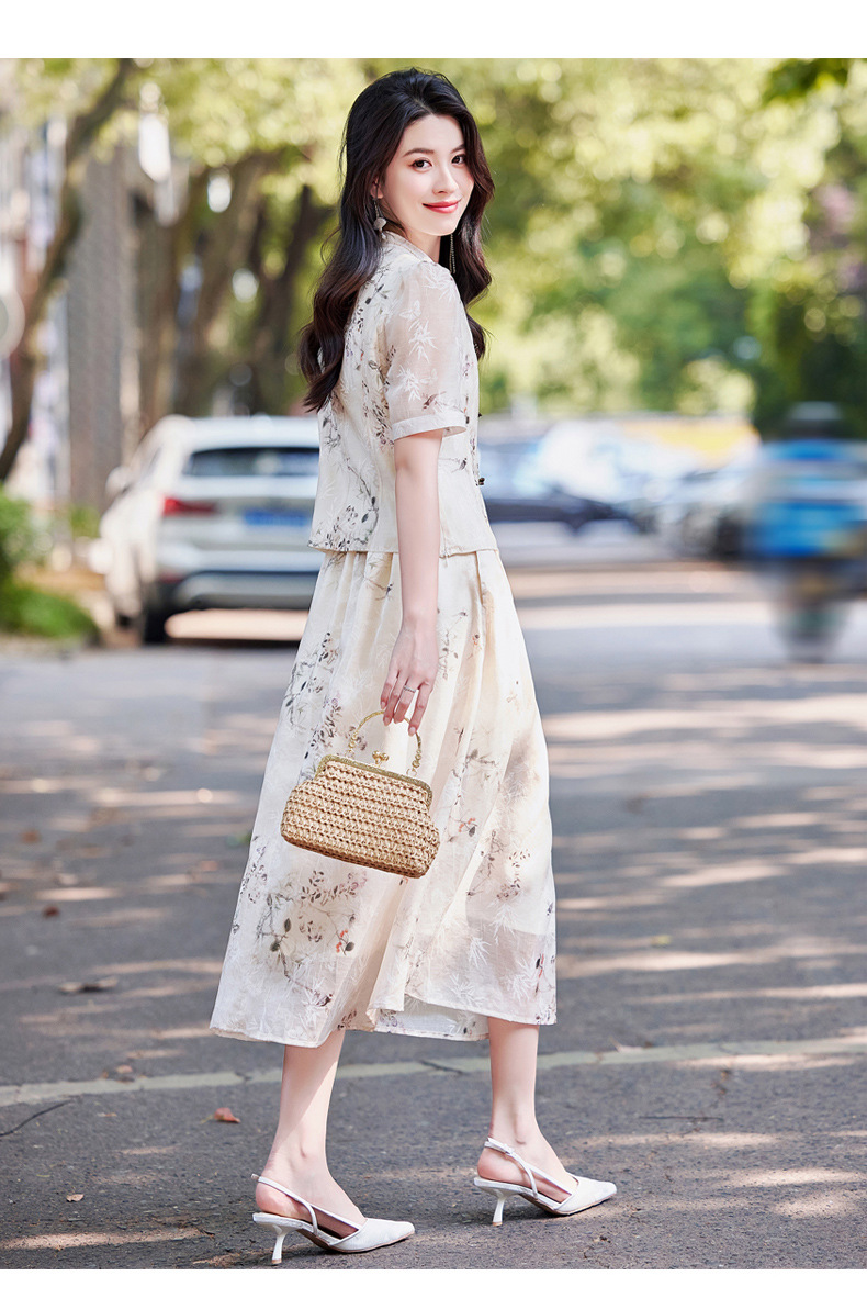 新中式改良显瘦,盘扣国风印花半身裙两件套HR-SYY733
