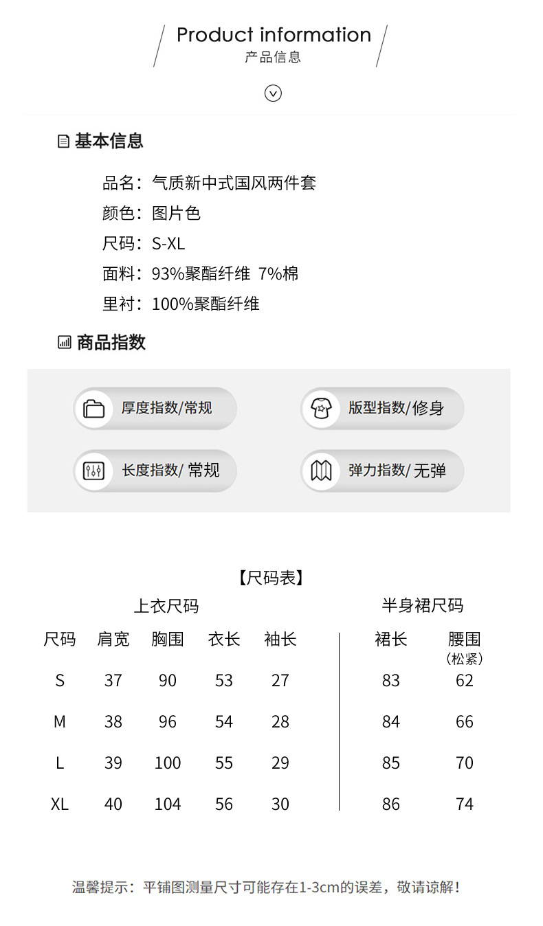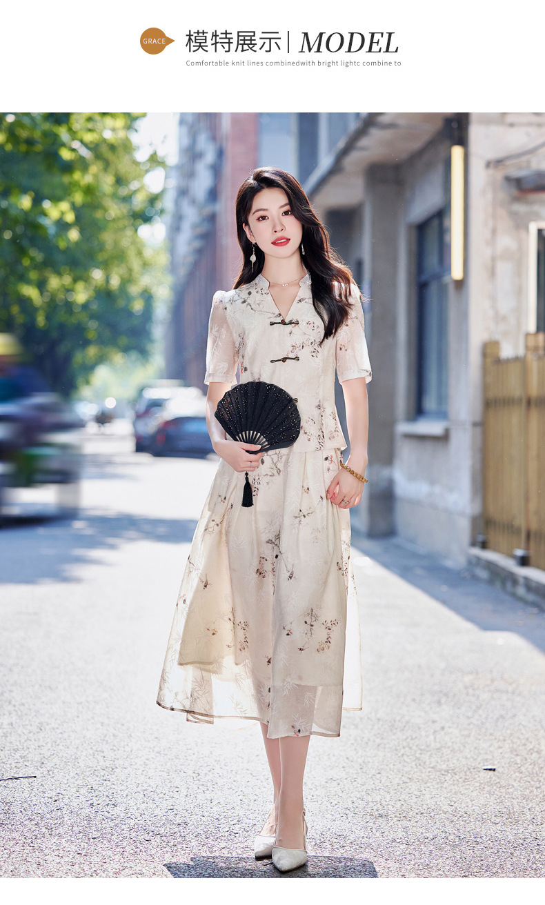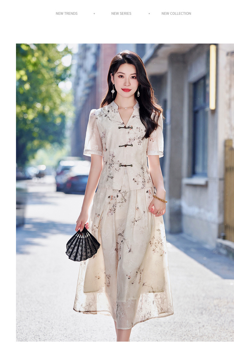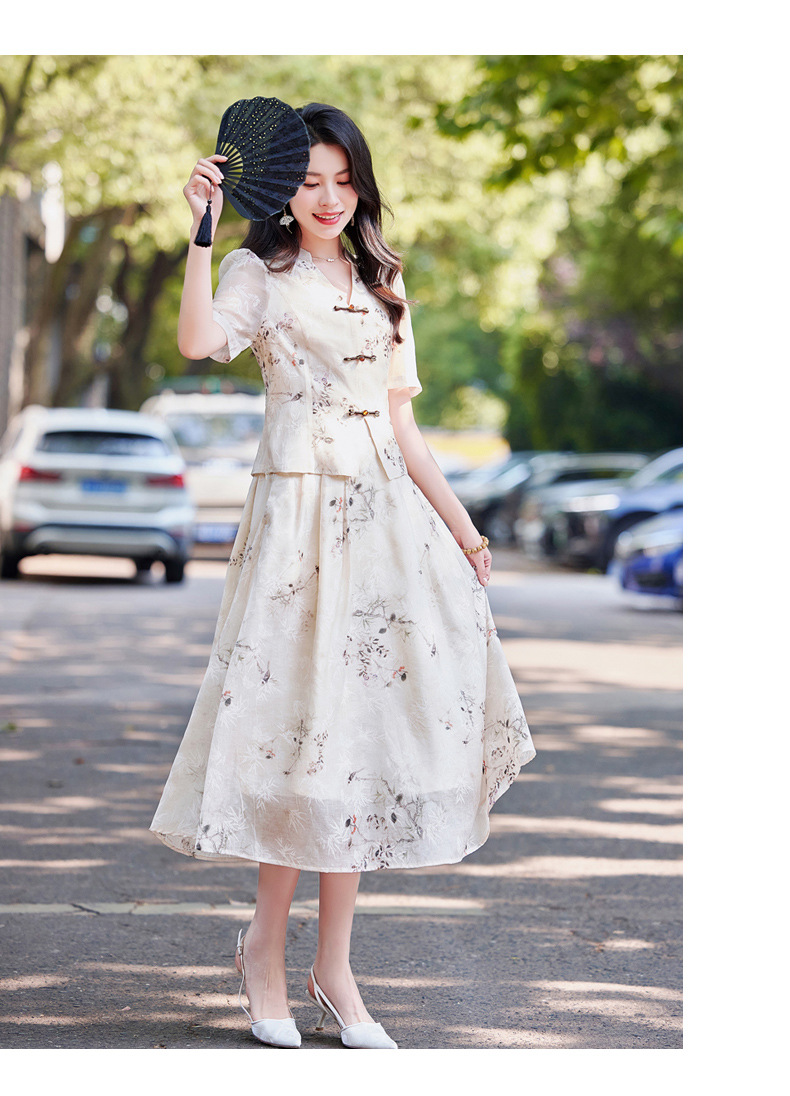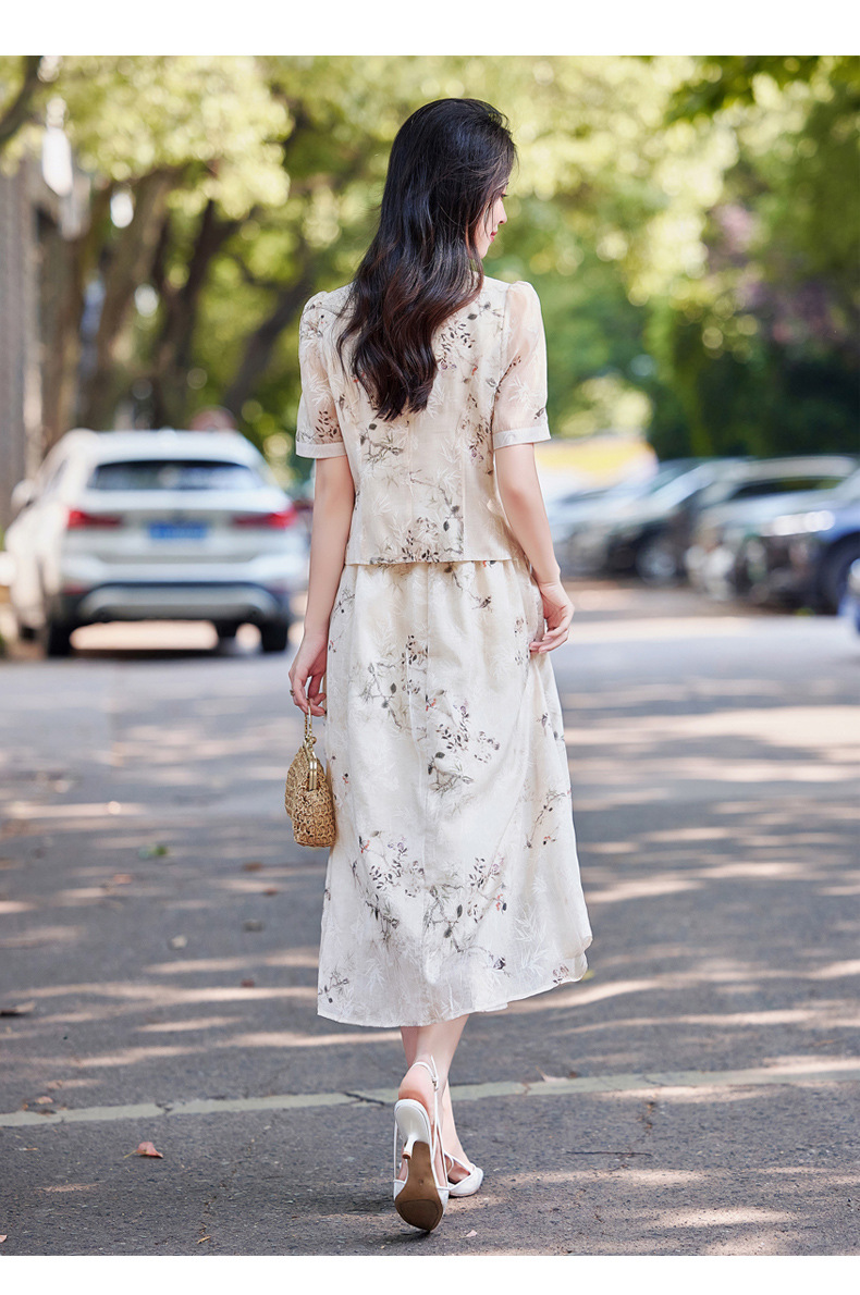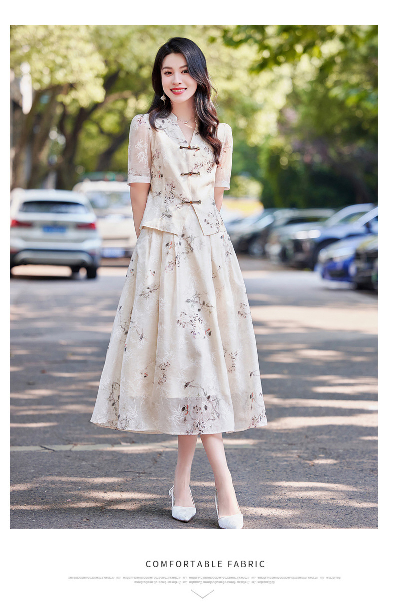 新中式改良显瘦,盘扣国风印花半身裙两件套HR-SYY733