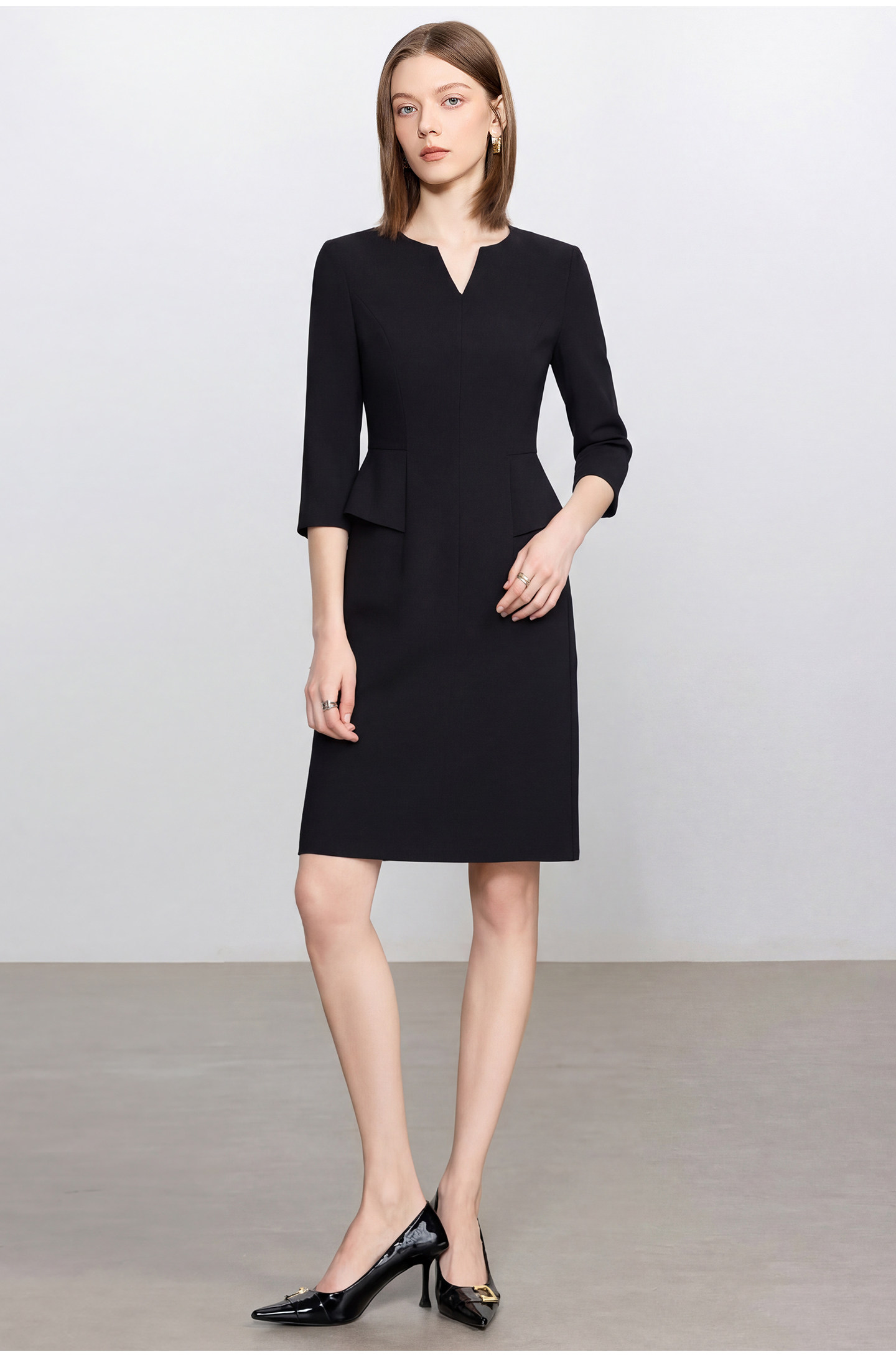 IWY/黑色西装连衣裙女夏季高级感气质通勤职业装收腰显瘦中长裙243020Q1