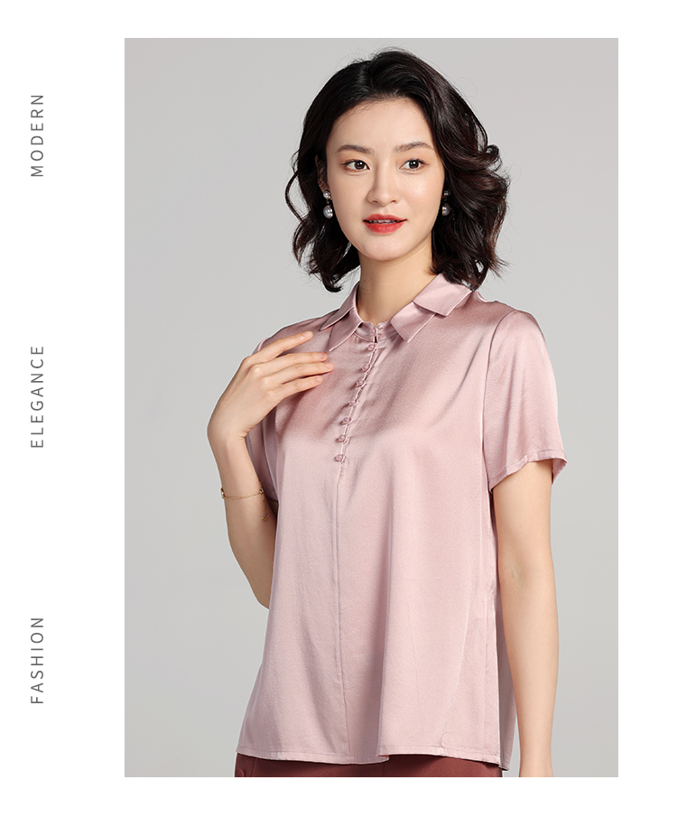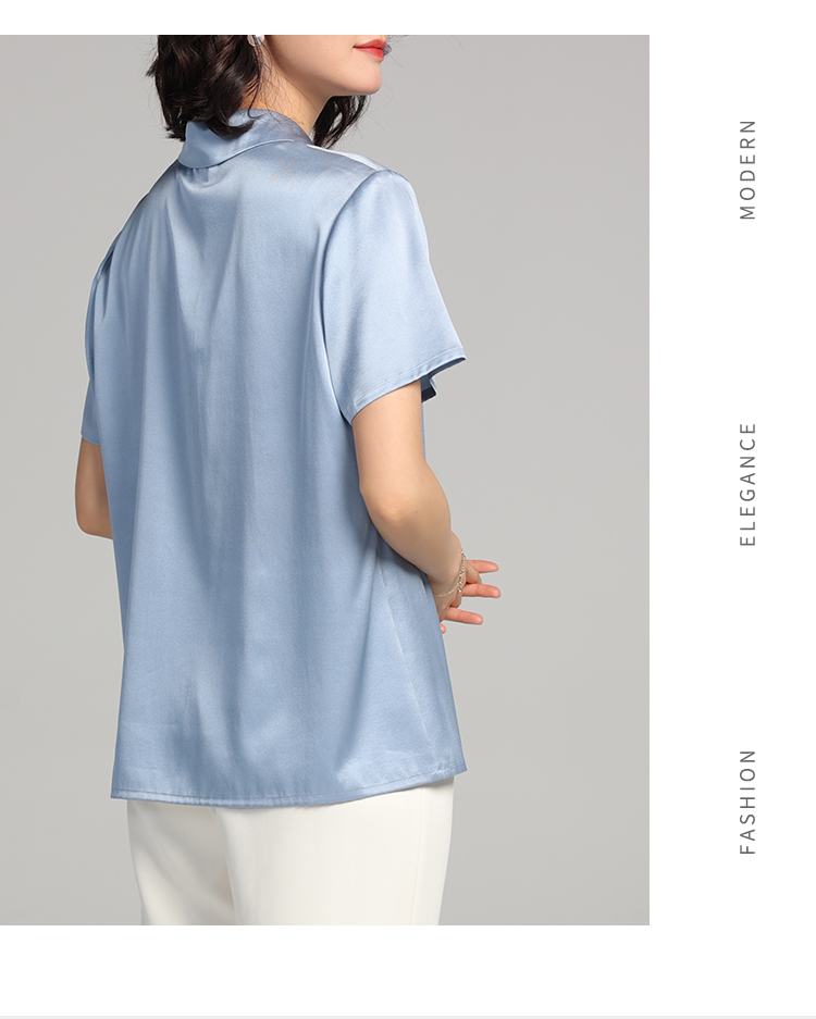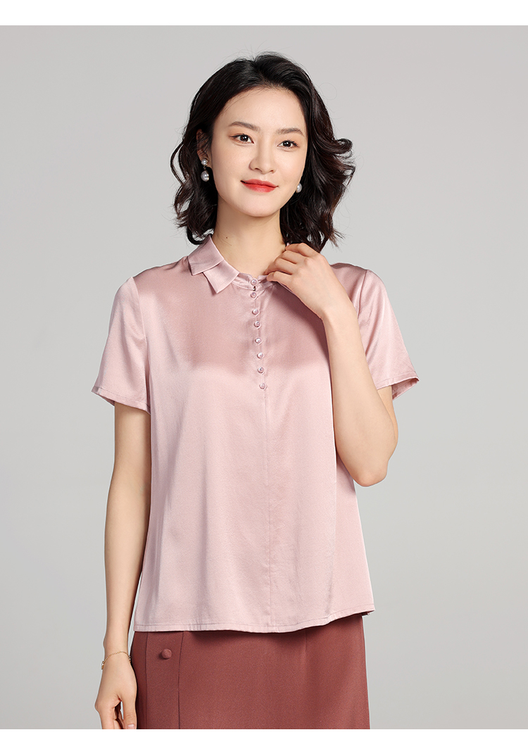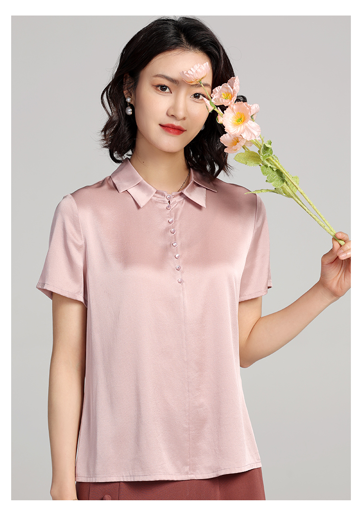 佐尔美夏季新款 气质桑蚕丝真丝纯色短袖衬衣女E22CS64