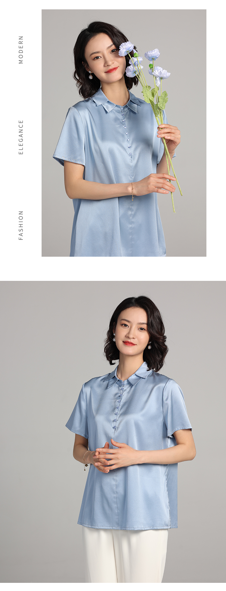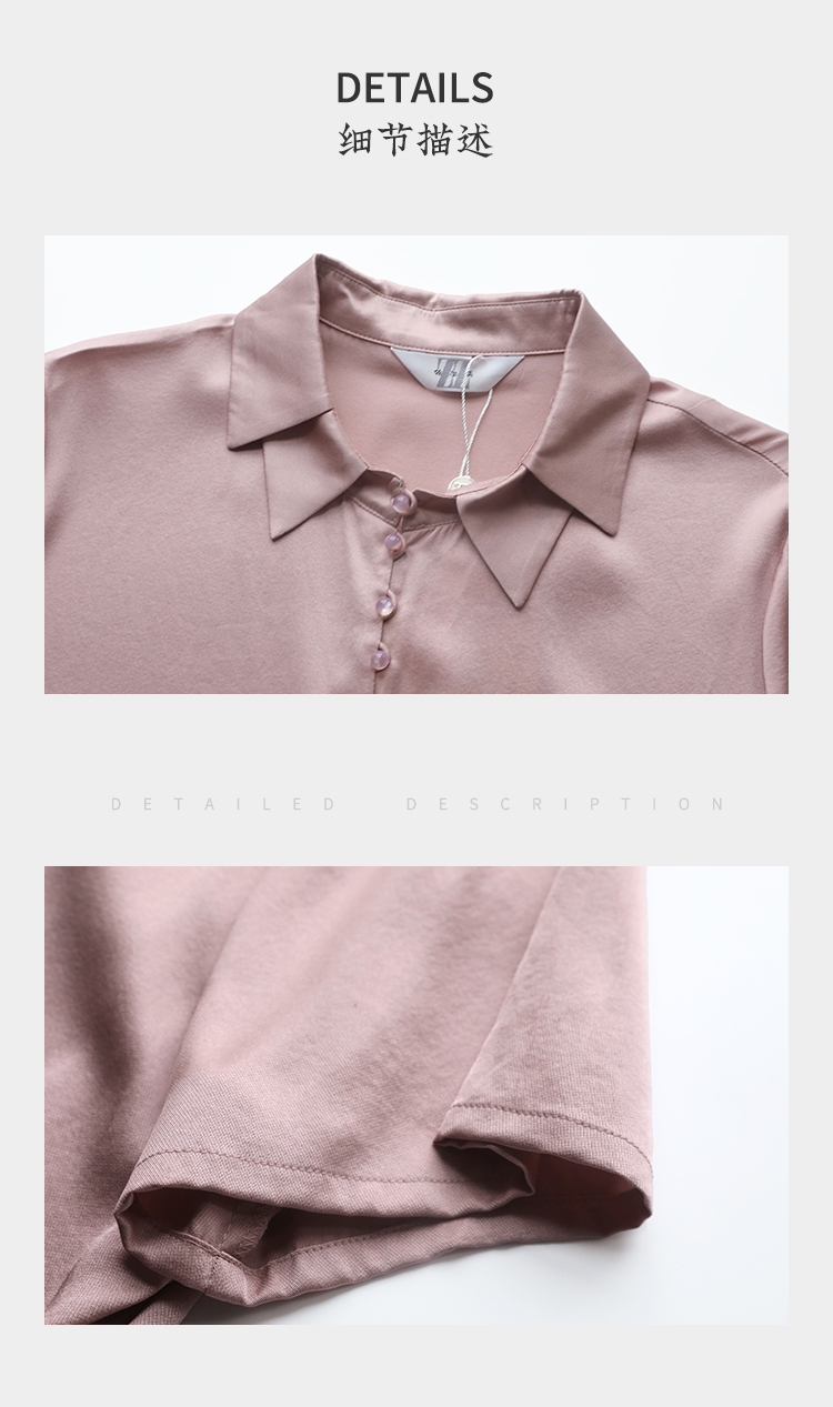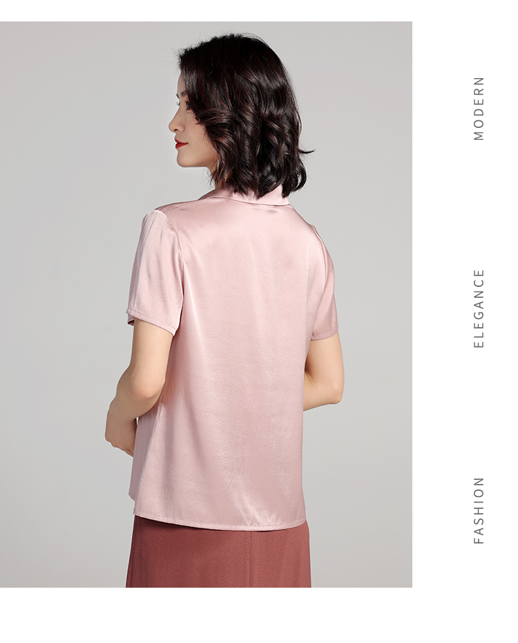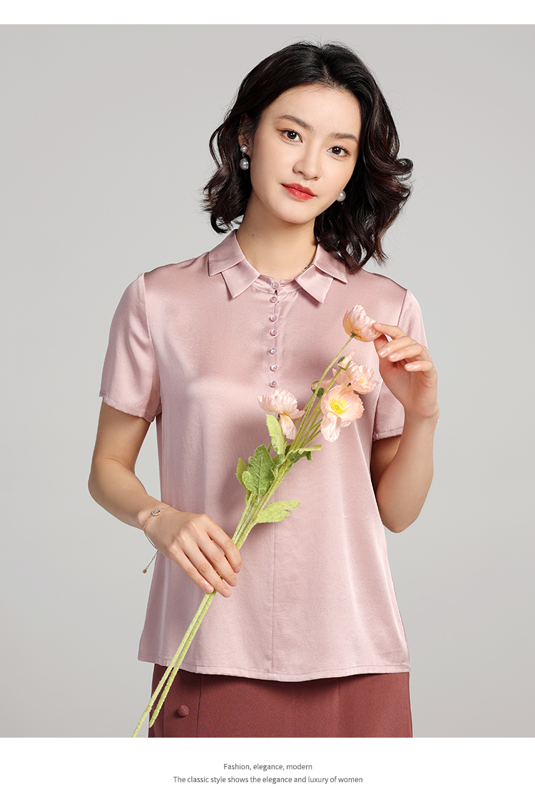 佐尔美夏季新款 气质桑蚕丝真丝纯色短袖衬衣女E22CS64