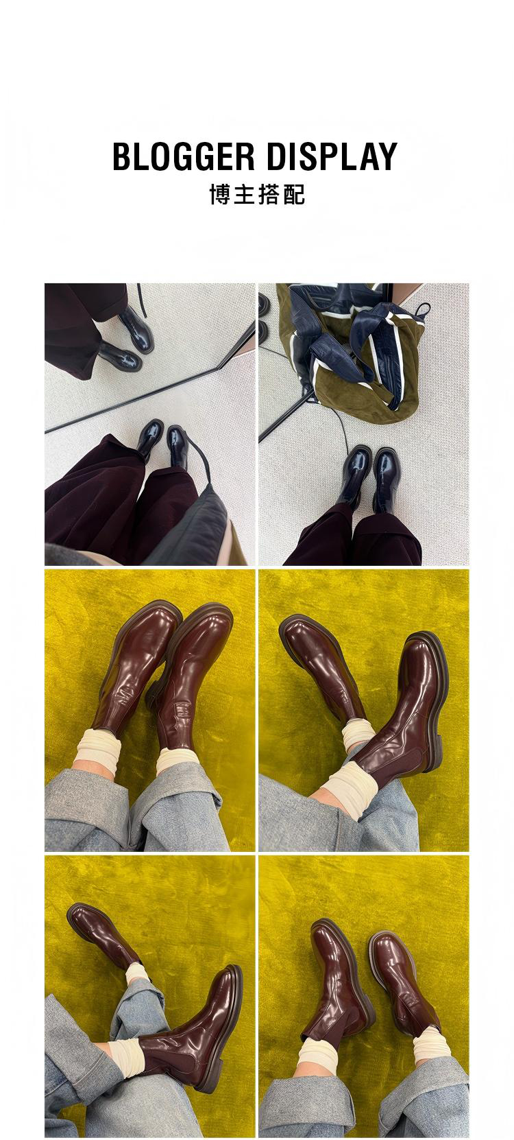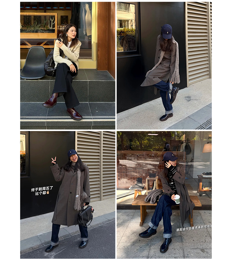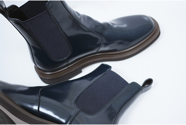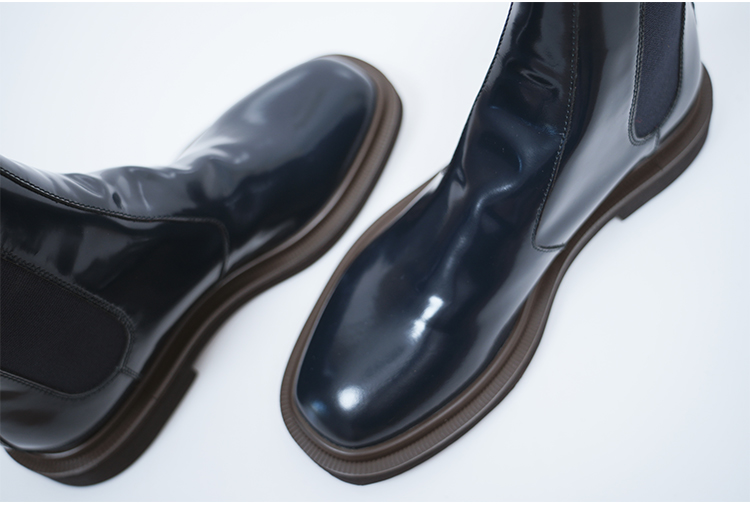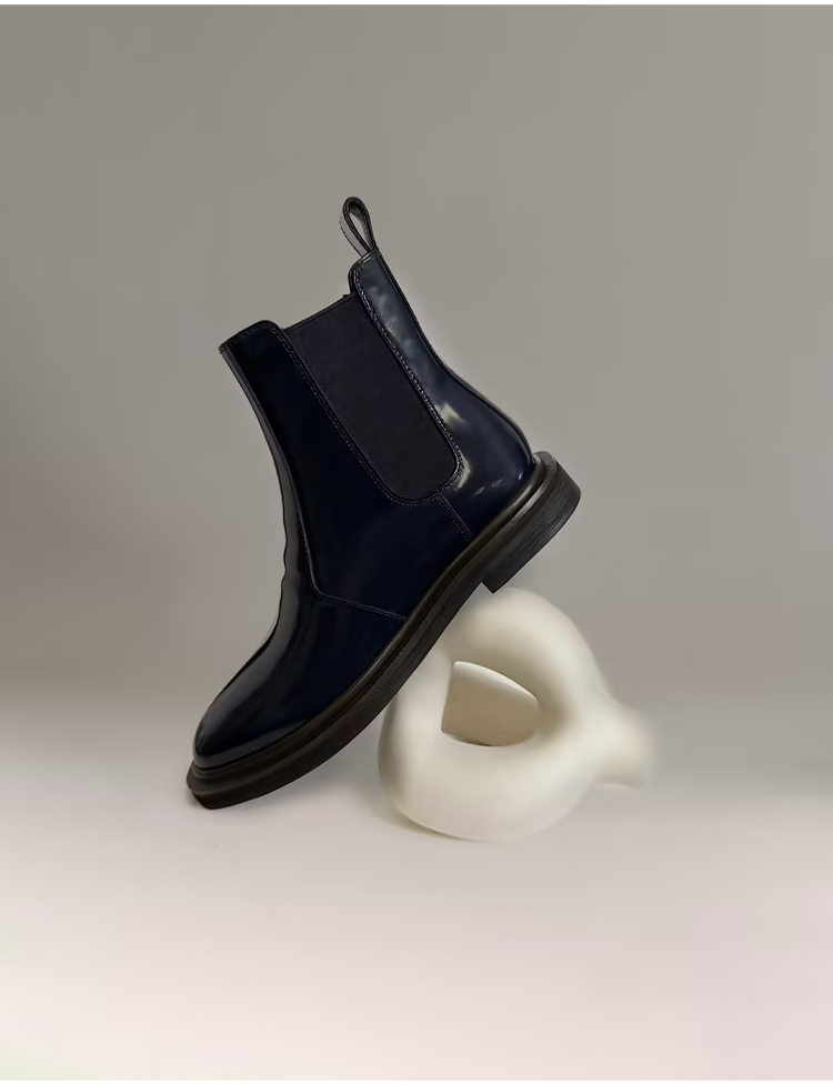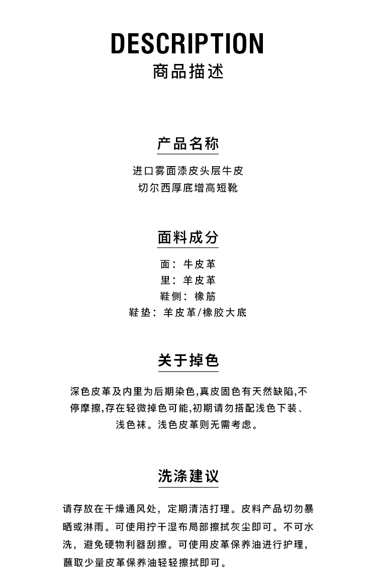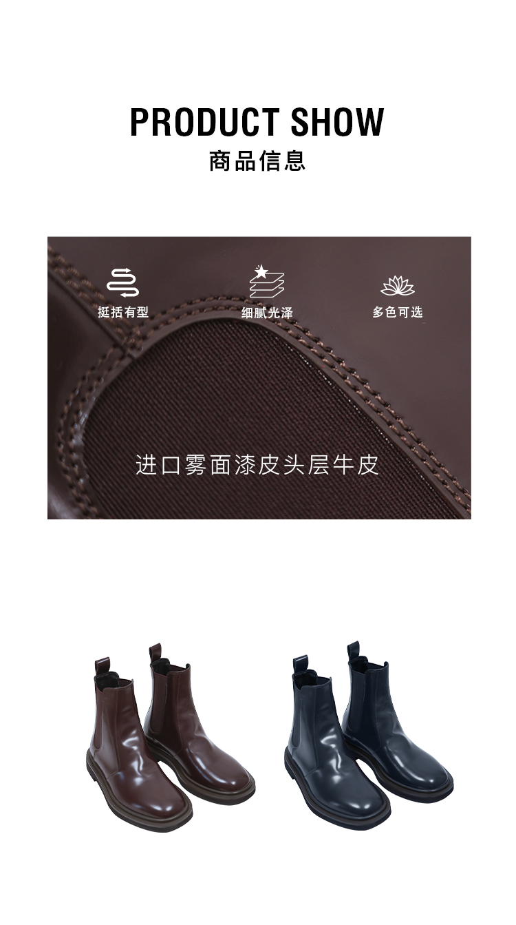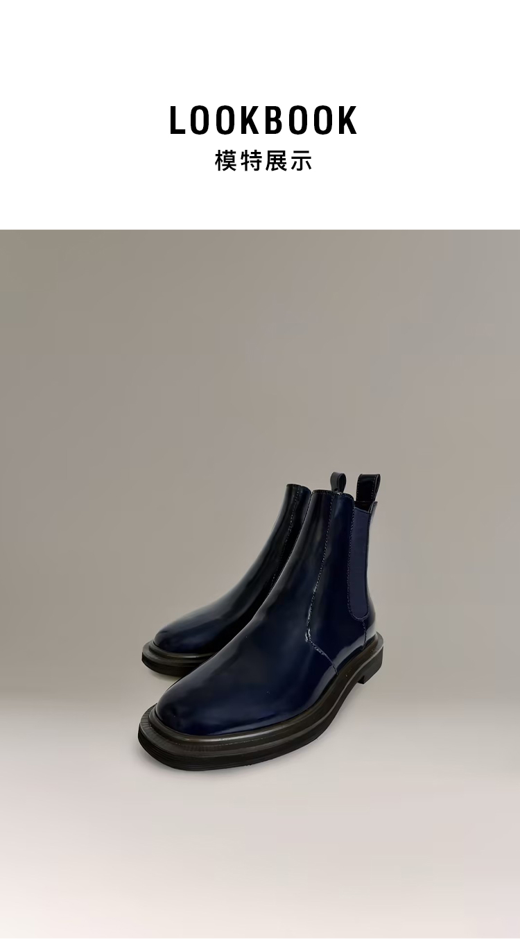 HIDEMI 进口雾面漆皮头层牛皮切尔西厚底增高短靴