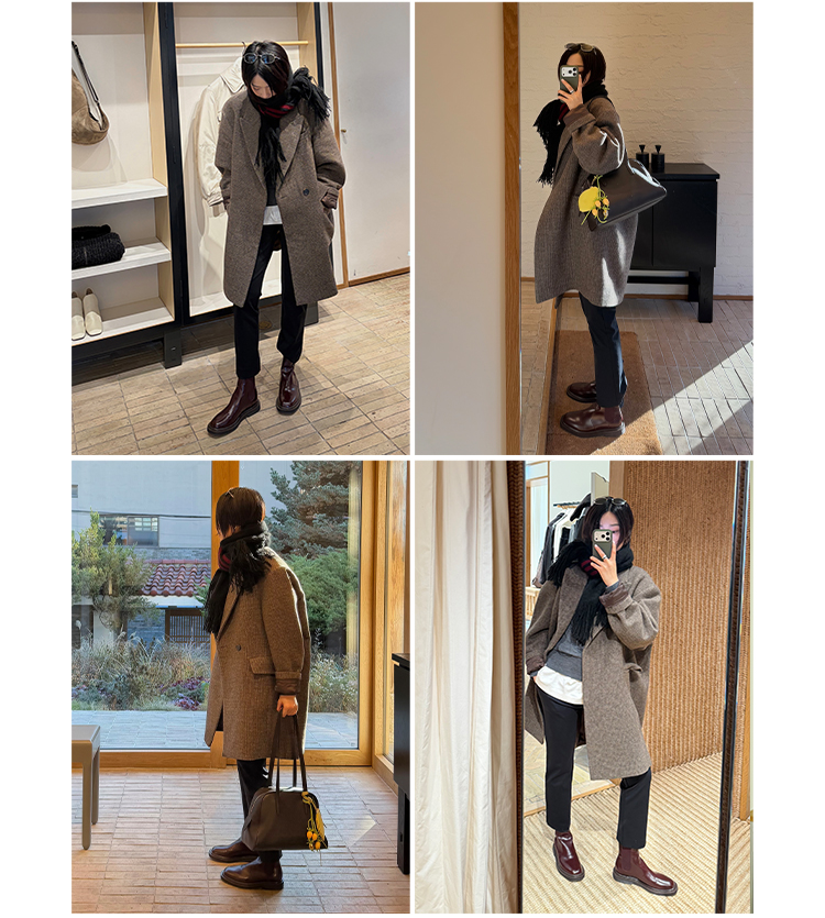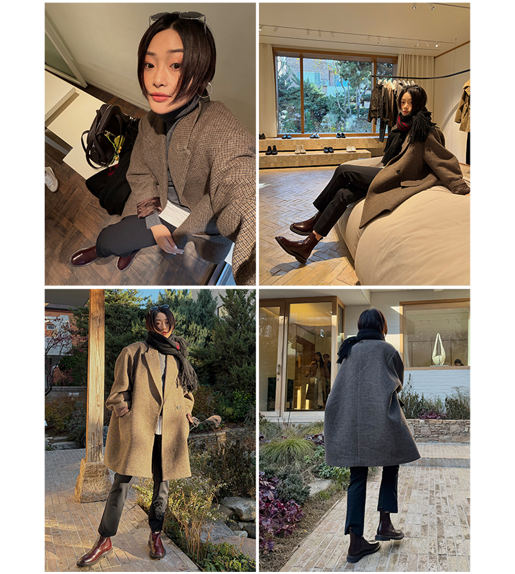 HIDEMI廓形一粒扣圈圈羊毛短款大衣/外套