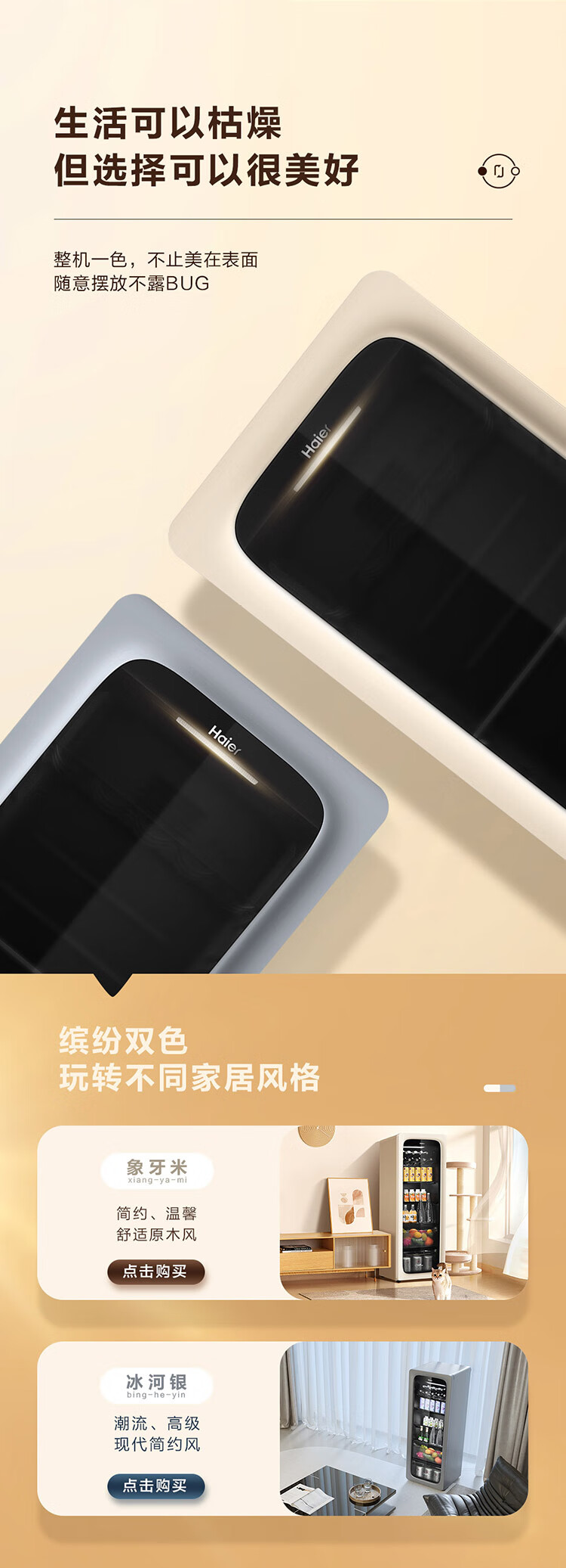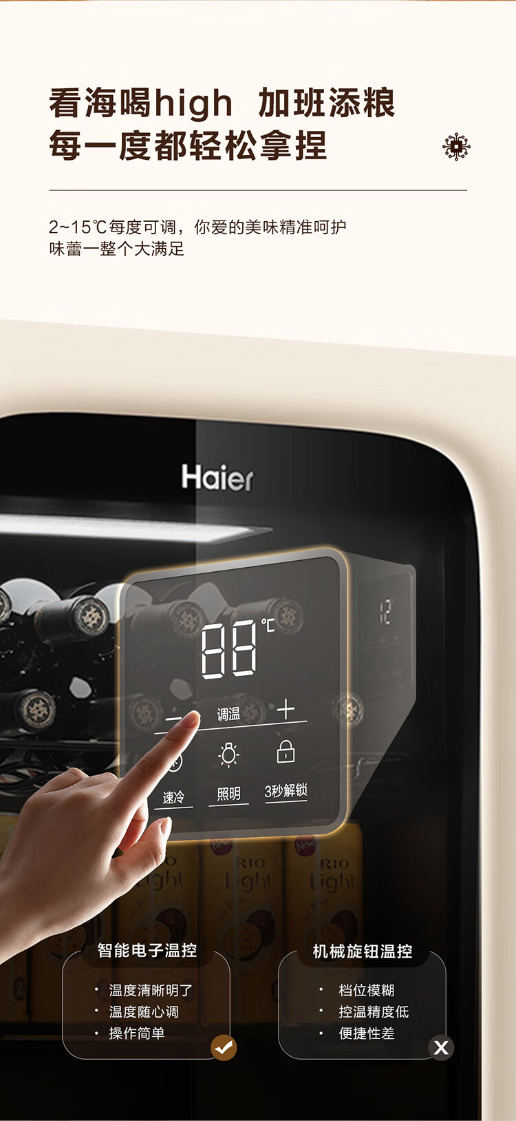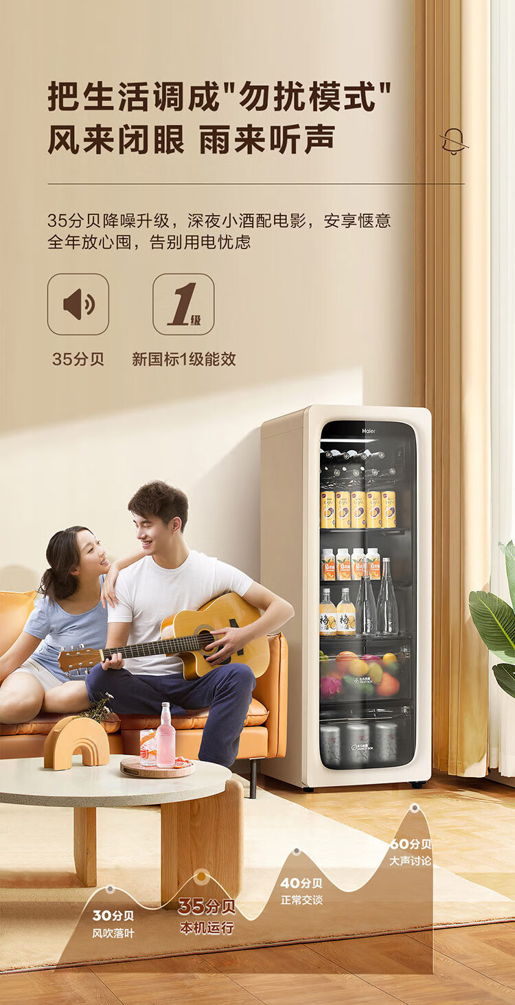海尔200升一级能效家用客厅办公室冷藏柜暖藏冰吧元气吧茶叶饮料水果蔬菜小冰箱LC-200WLH9EY1