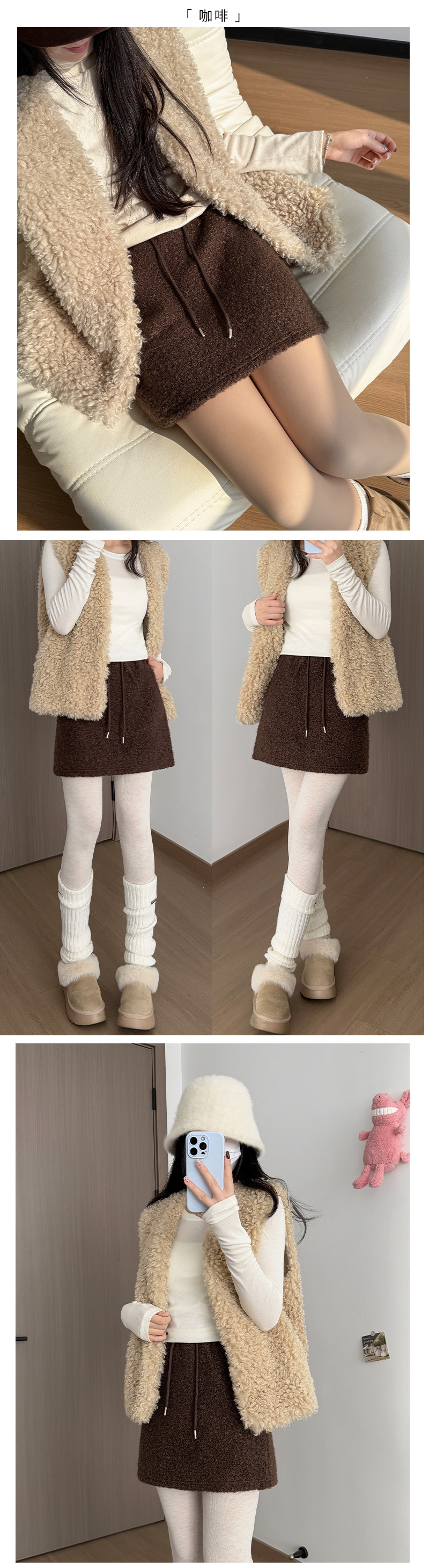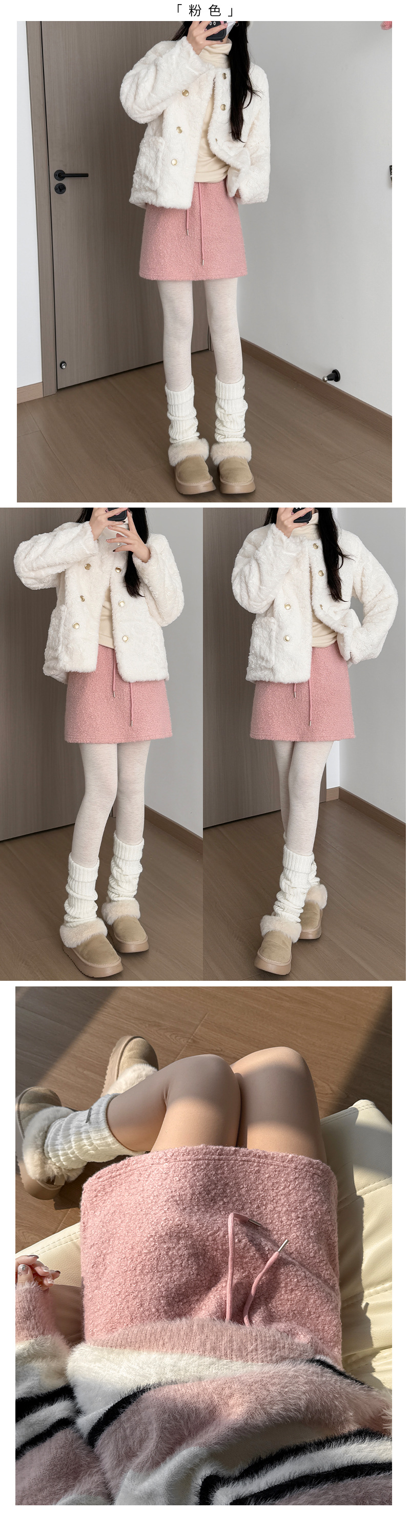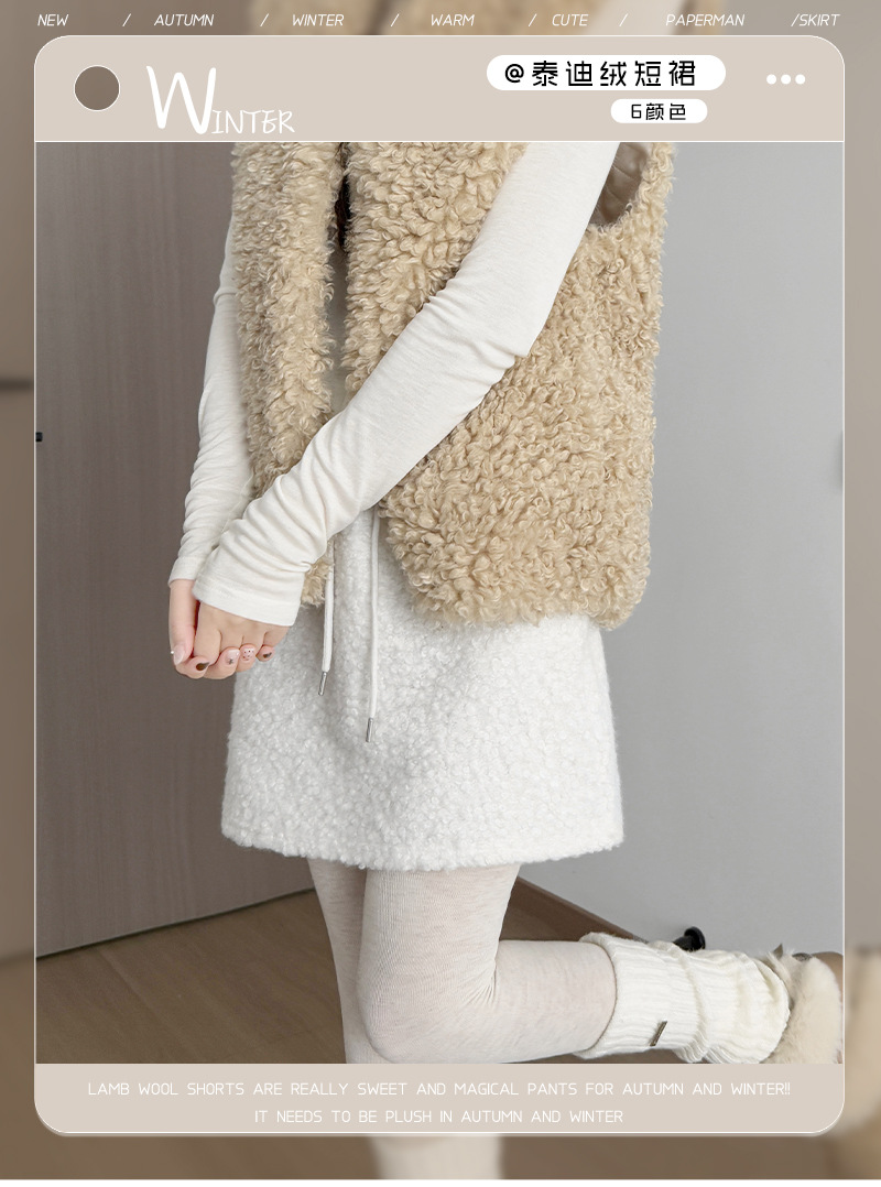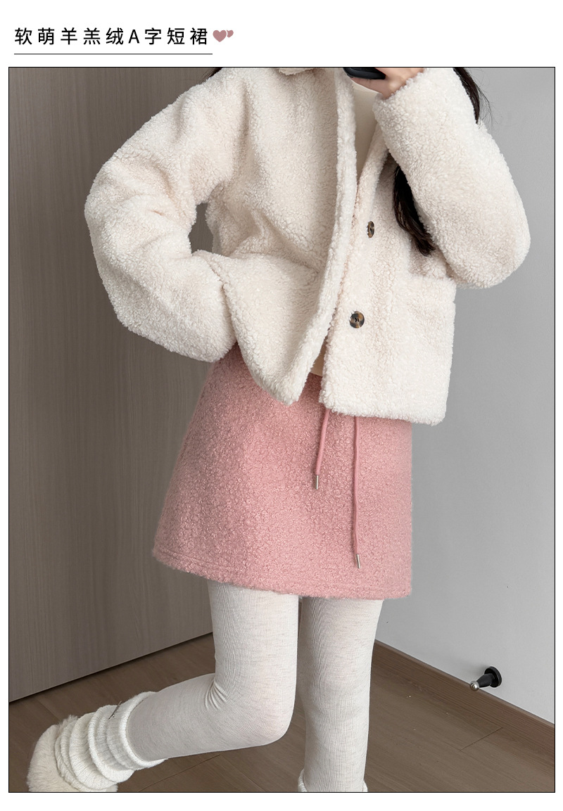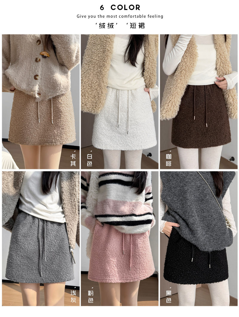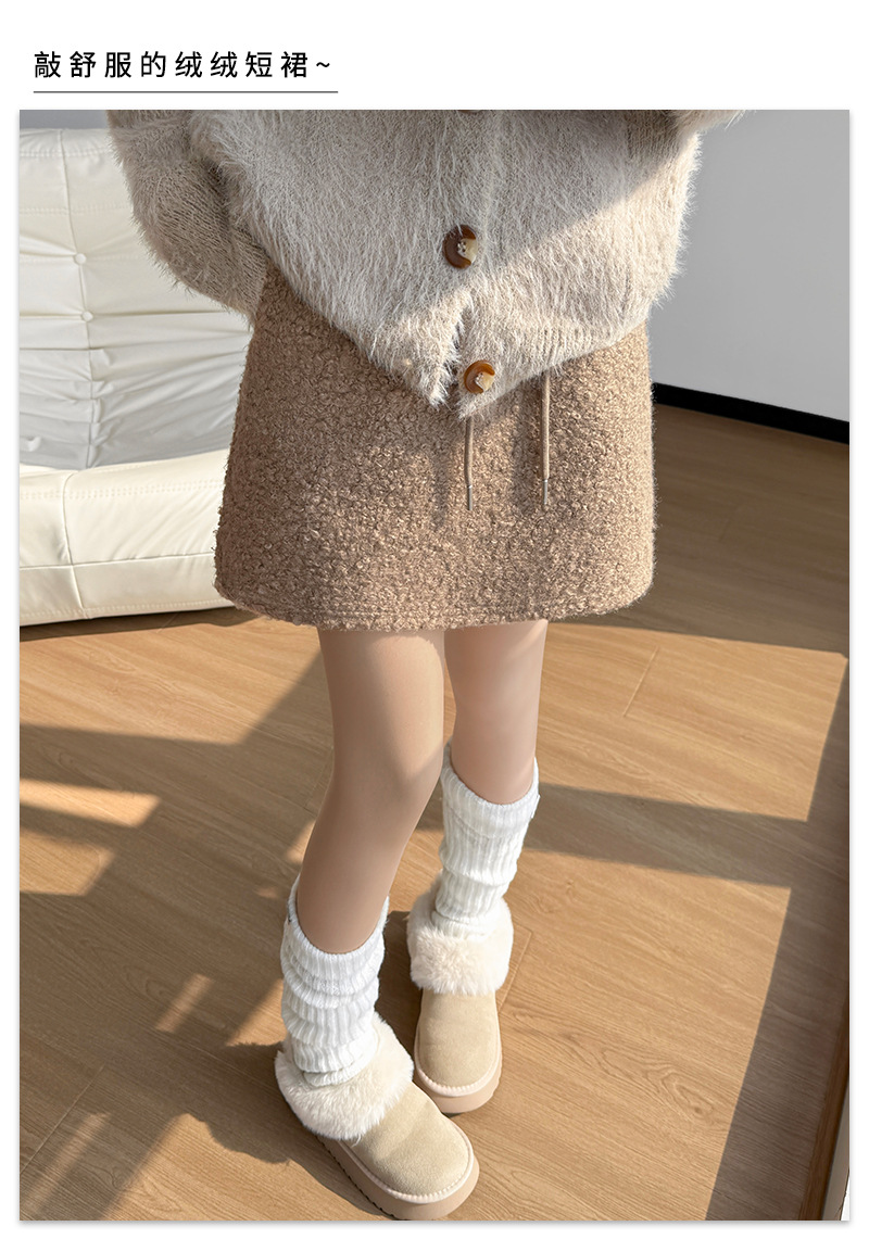 【YW】无忧购羊羔绒包臀短裙女秋冬高腰遮肉显瘦泰迪绒裙子H-2057(截单后3-5天发货)