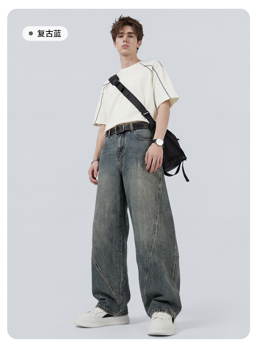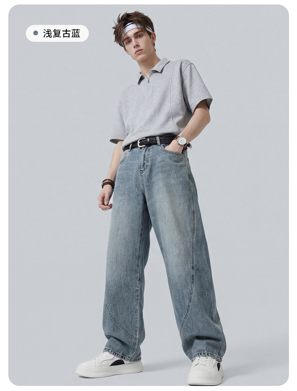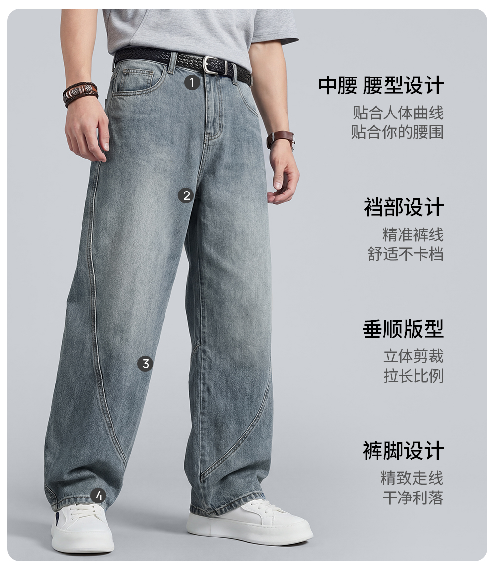 【含棉】圣得西牛仔裤2026新款男春季简约时尚休闲通勤风宽松裤子