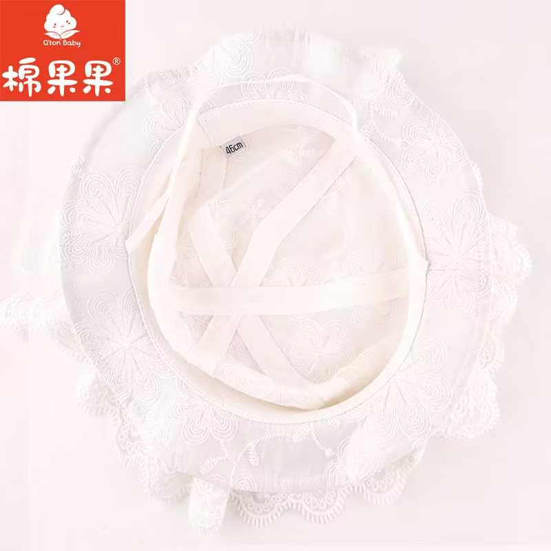 棉果果夏季新品白色宽帽檐女童蕾丝公主帽M224400422395