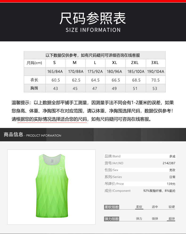 多威男款背心夏季日常穿搭必备透气轻薄无袖T恤2142387