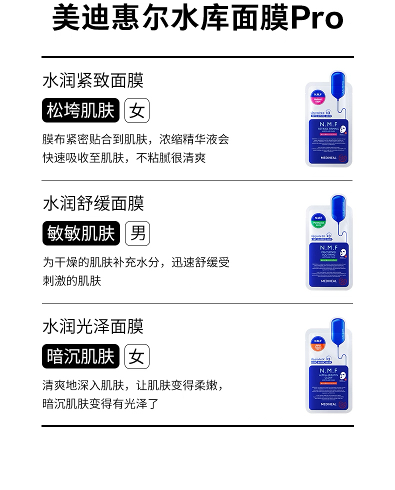 韩国 MEDIHEAL美迪惠尔 升级版N.M.F水润保湿面膜 10片