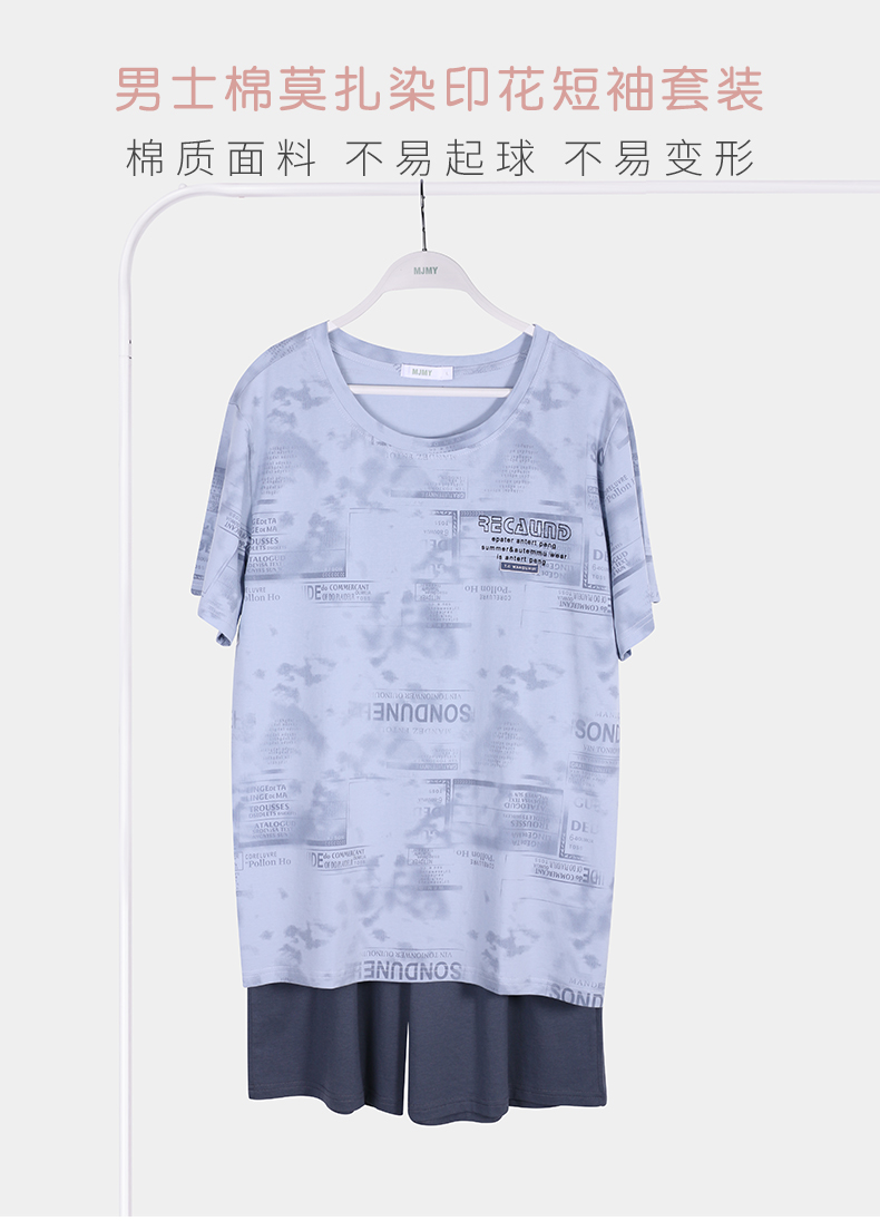 美季美优男士棉莫扎染印花短袖套装J426303