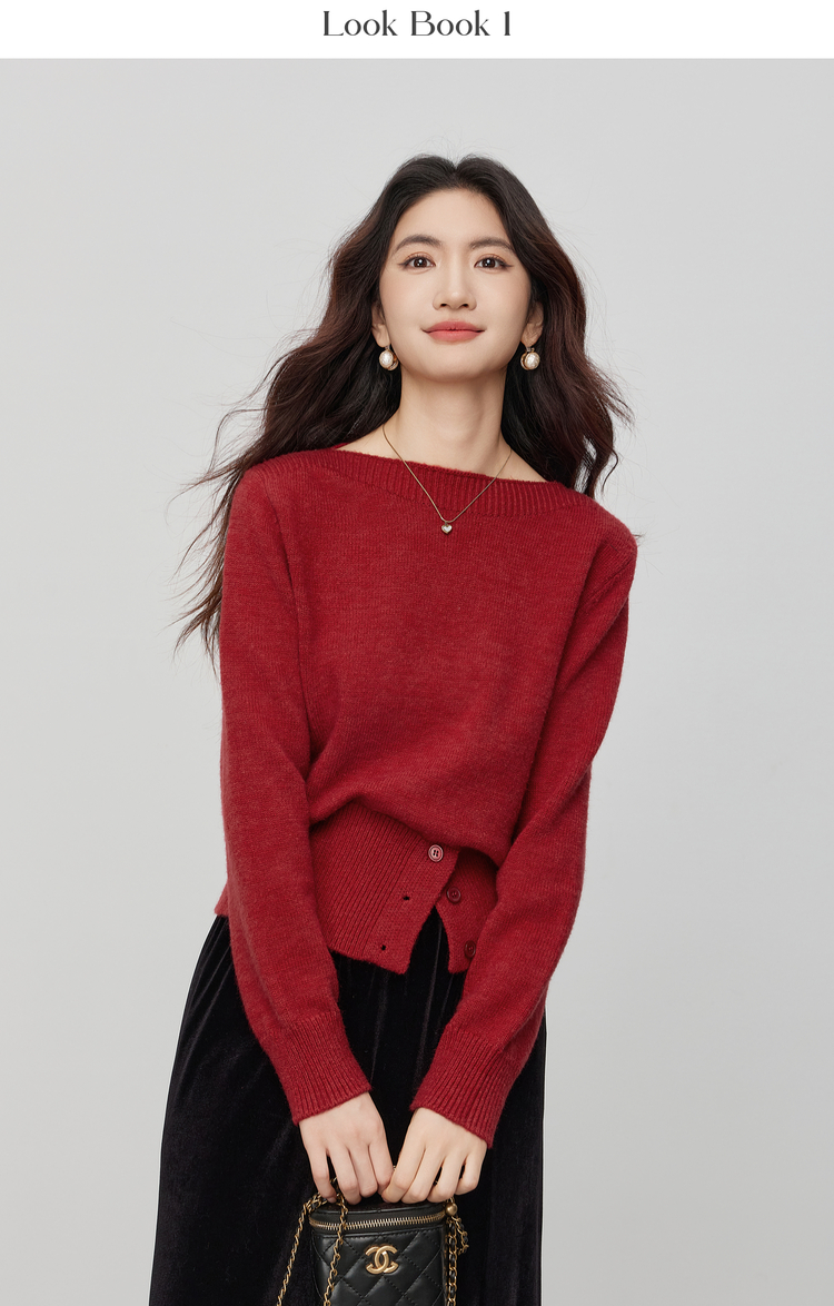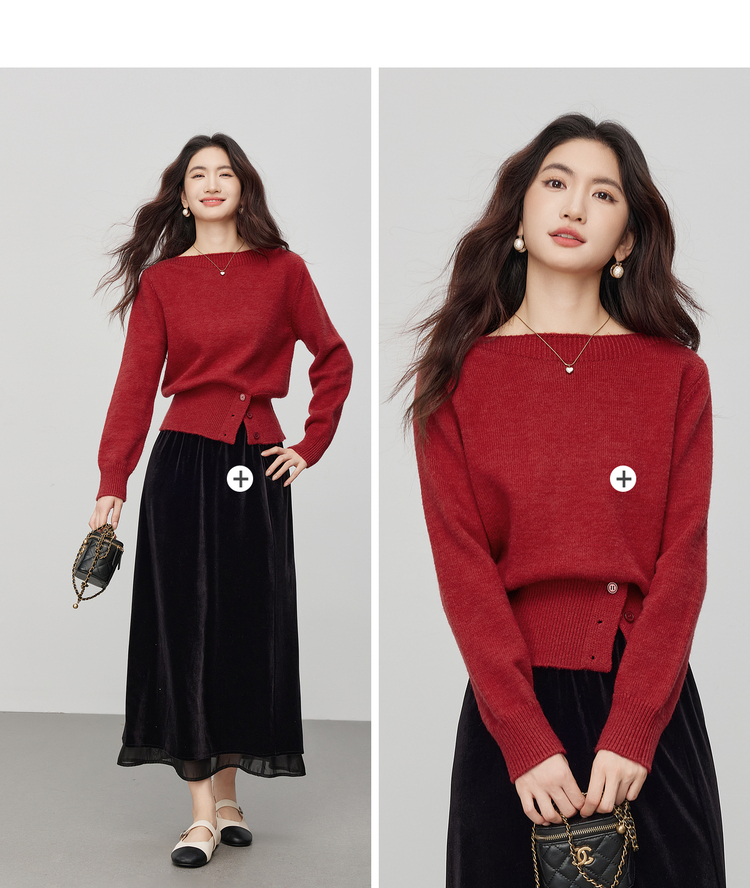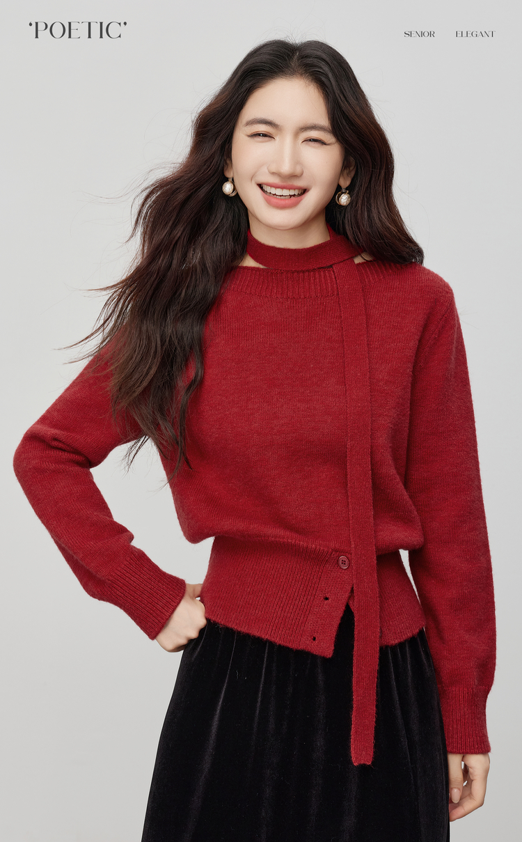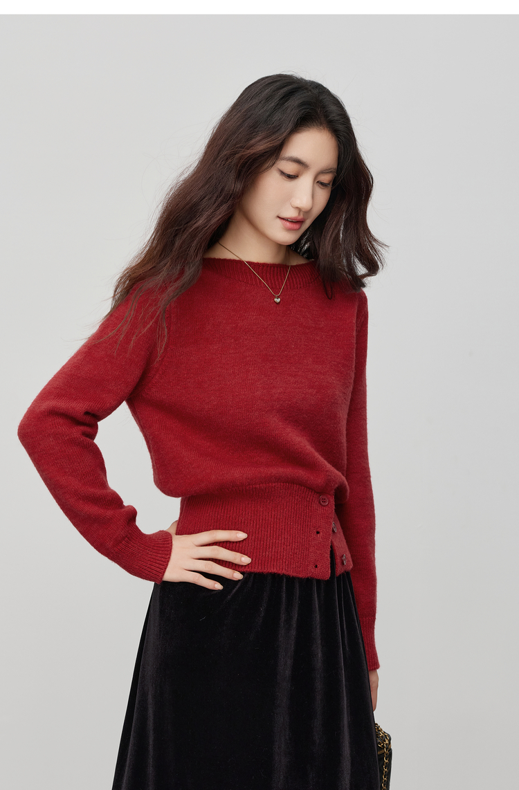 【12/03新品】熙世界绵羊毛&兔毛圣诞红色毛衣女冬季套头挂脖设计氛围感针织衫