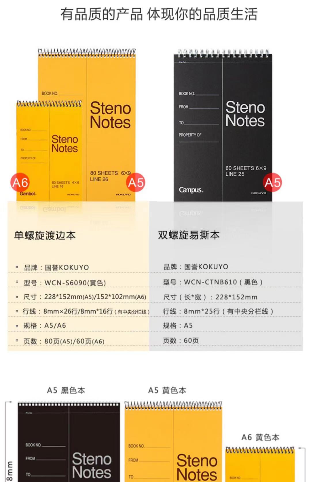 日本KOKUYO国誉笔记本竖翻线圈本分栏记事本