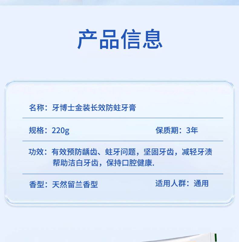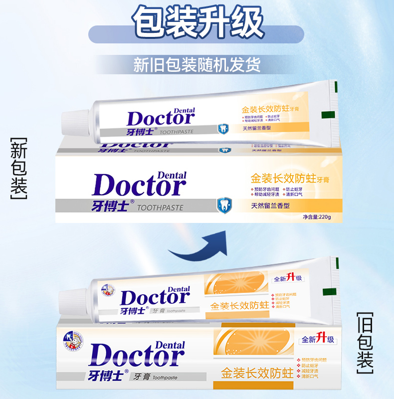 牙博士金装长效防蛀牙膏家庭装220g*3只装