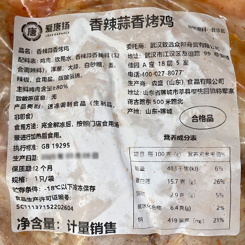 爱唐扬香辣蒜香烤鸡 商用烤鸡西装鸡半成品手扒鸡炸鸡脆皮全鸡