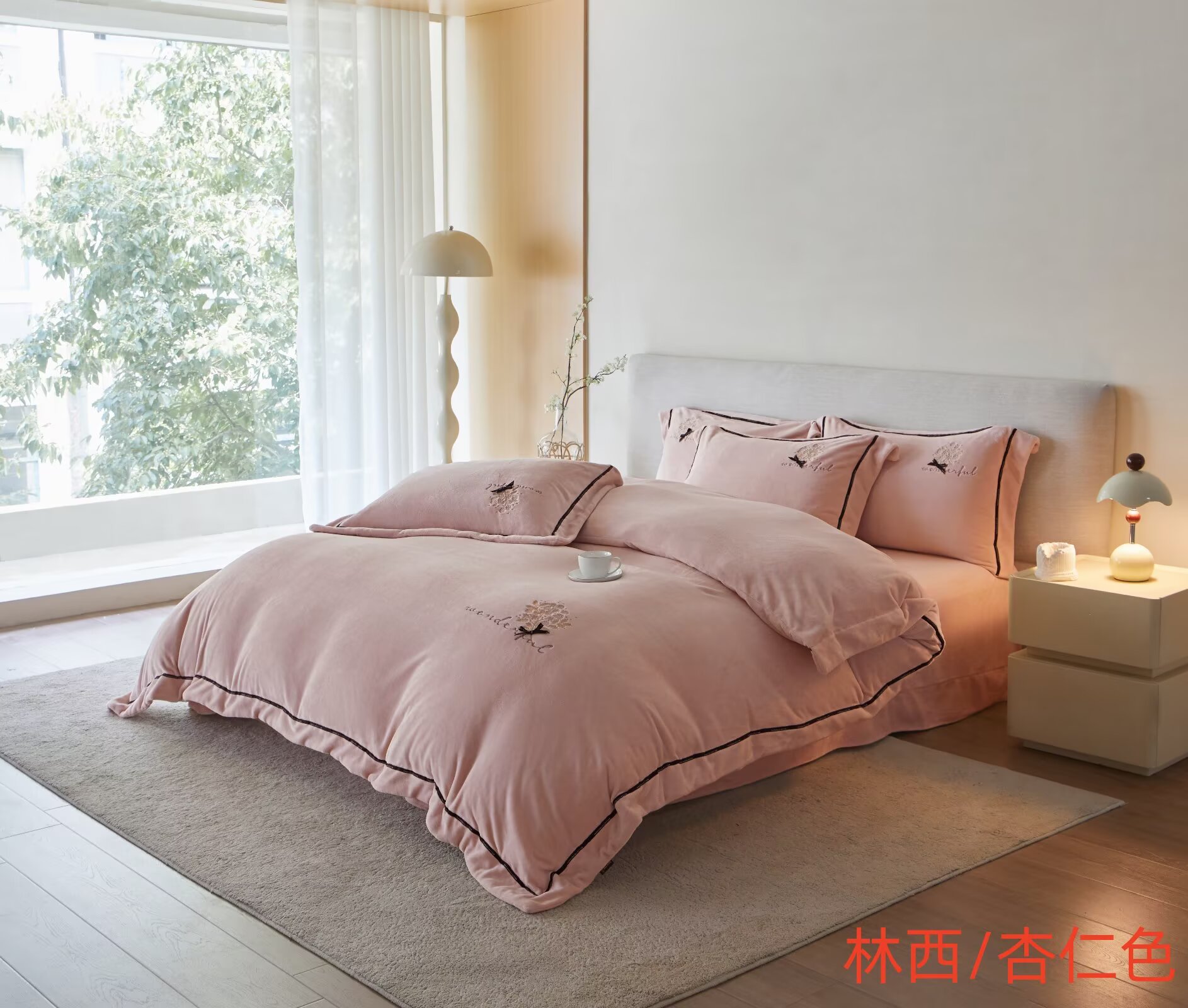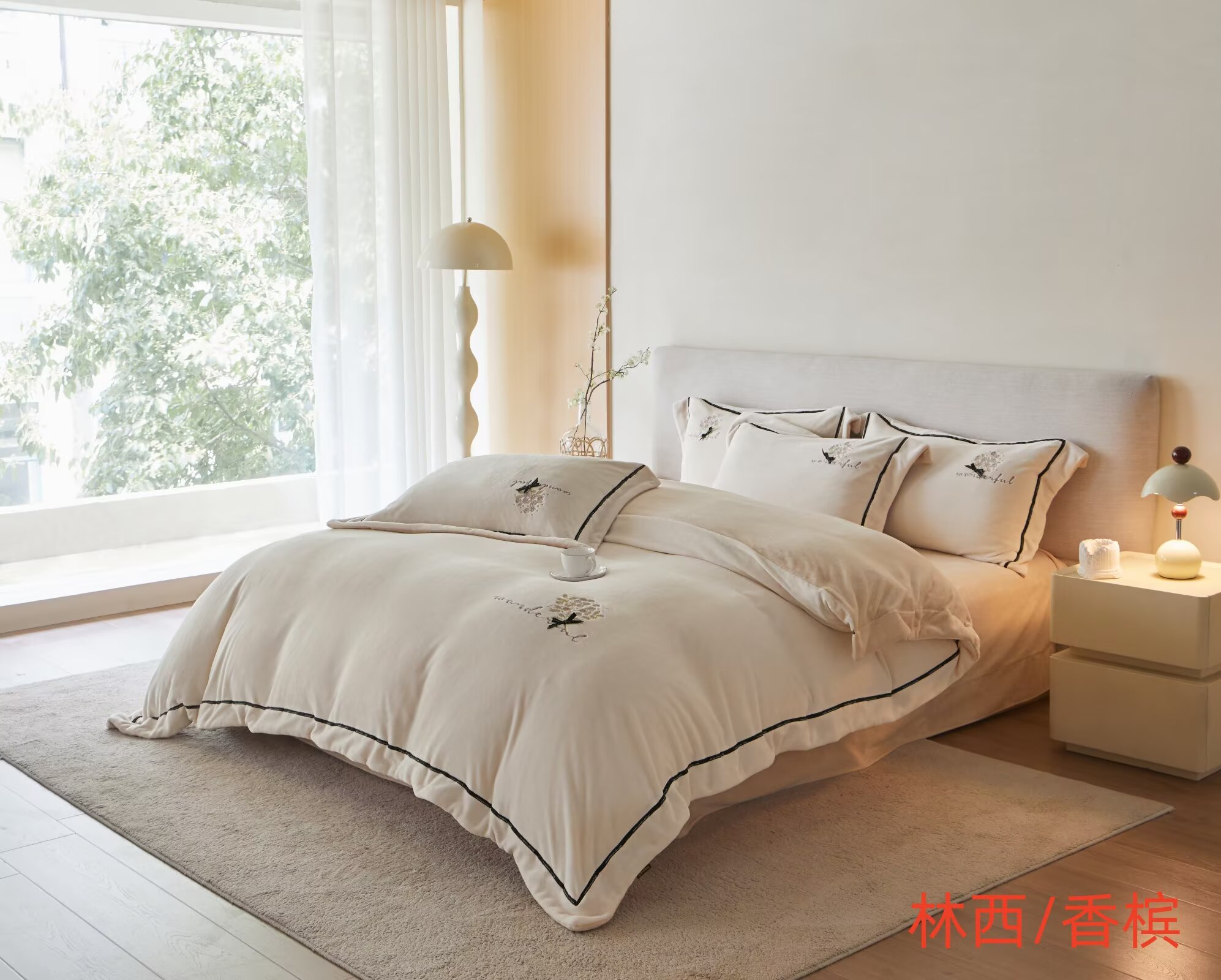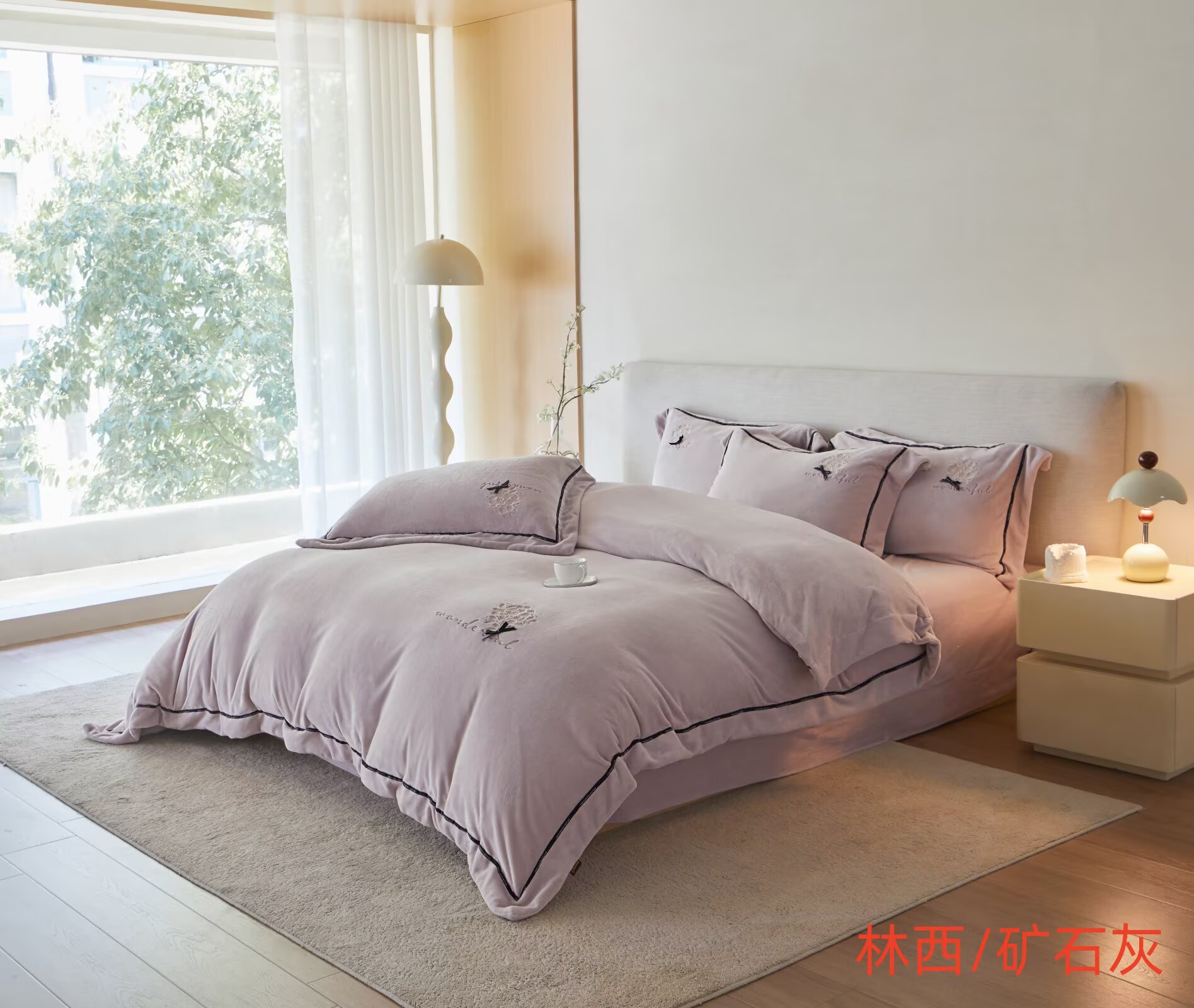 【3-7天发货丨蚕丝绒四件套丨林西轻绣】具有良好的亲肤性,冬暖夏凉!柔软贴身,轻暖舒适!呵护美好睡眠!
