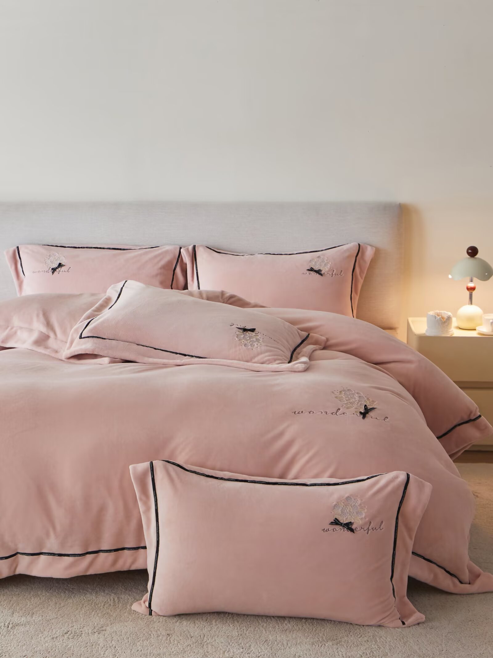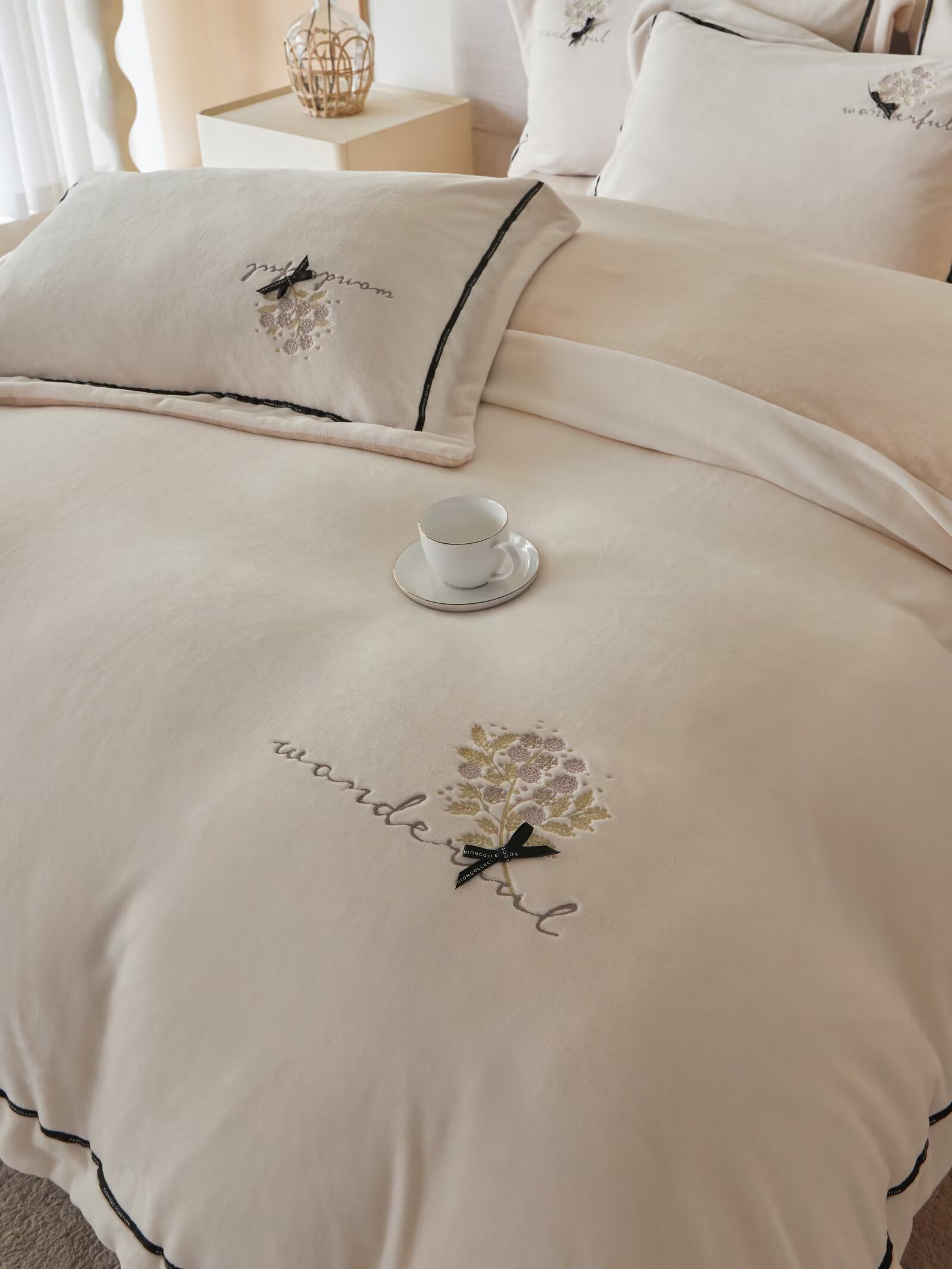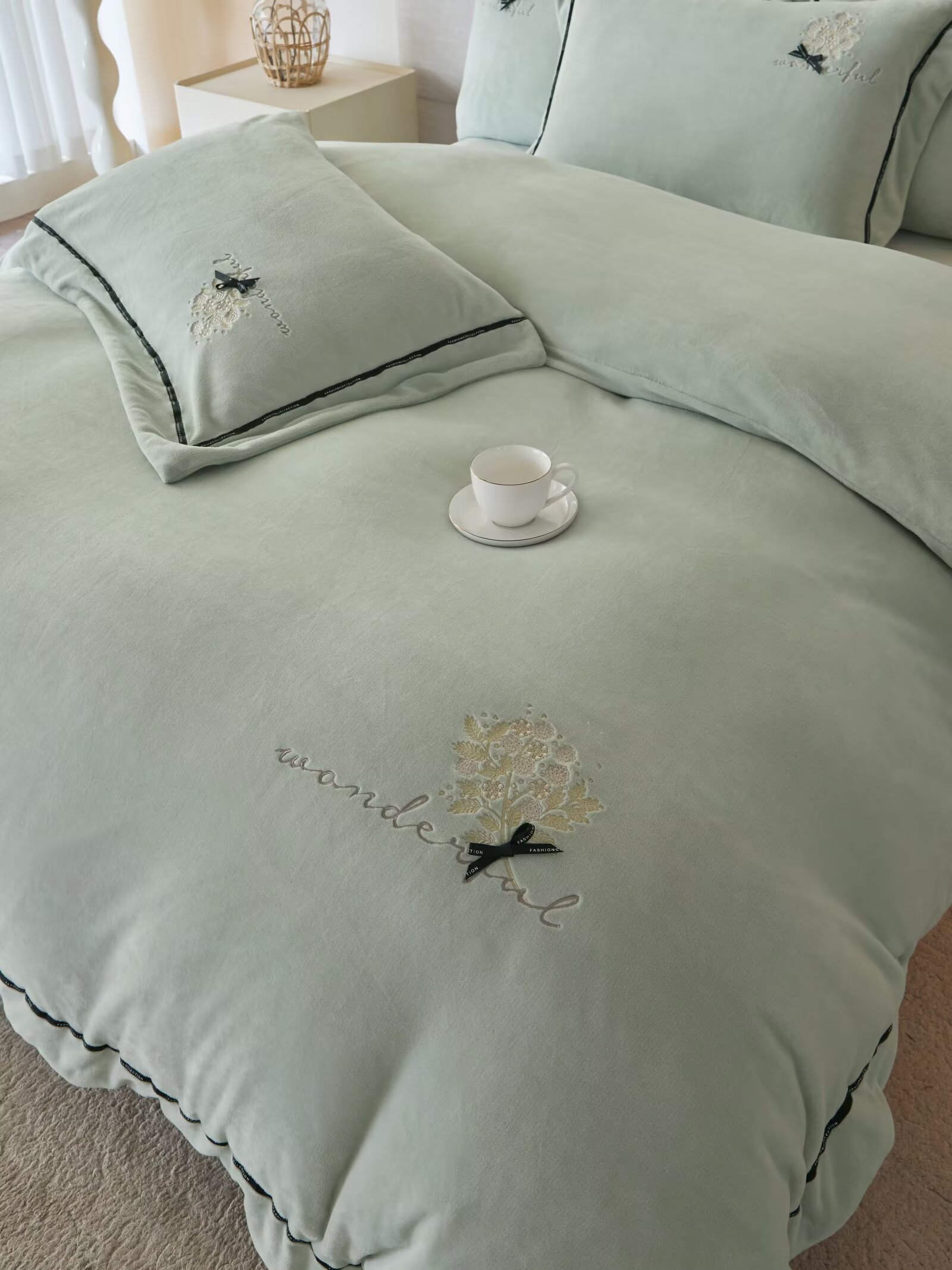 【3-7天发货丨蚕丝绒四件套丨林西轻绣】具有良好的亲肤性,冬暖夏凉!柔软贴身,轻暖舒适!呵护美好睡眠!