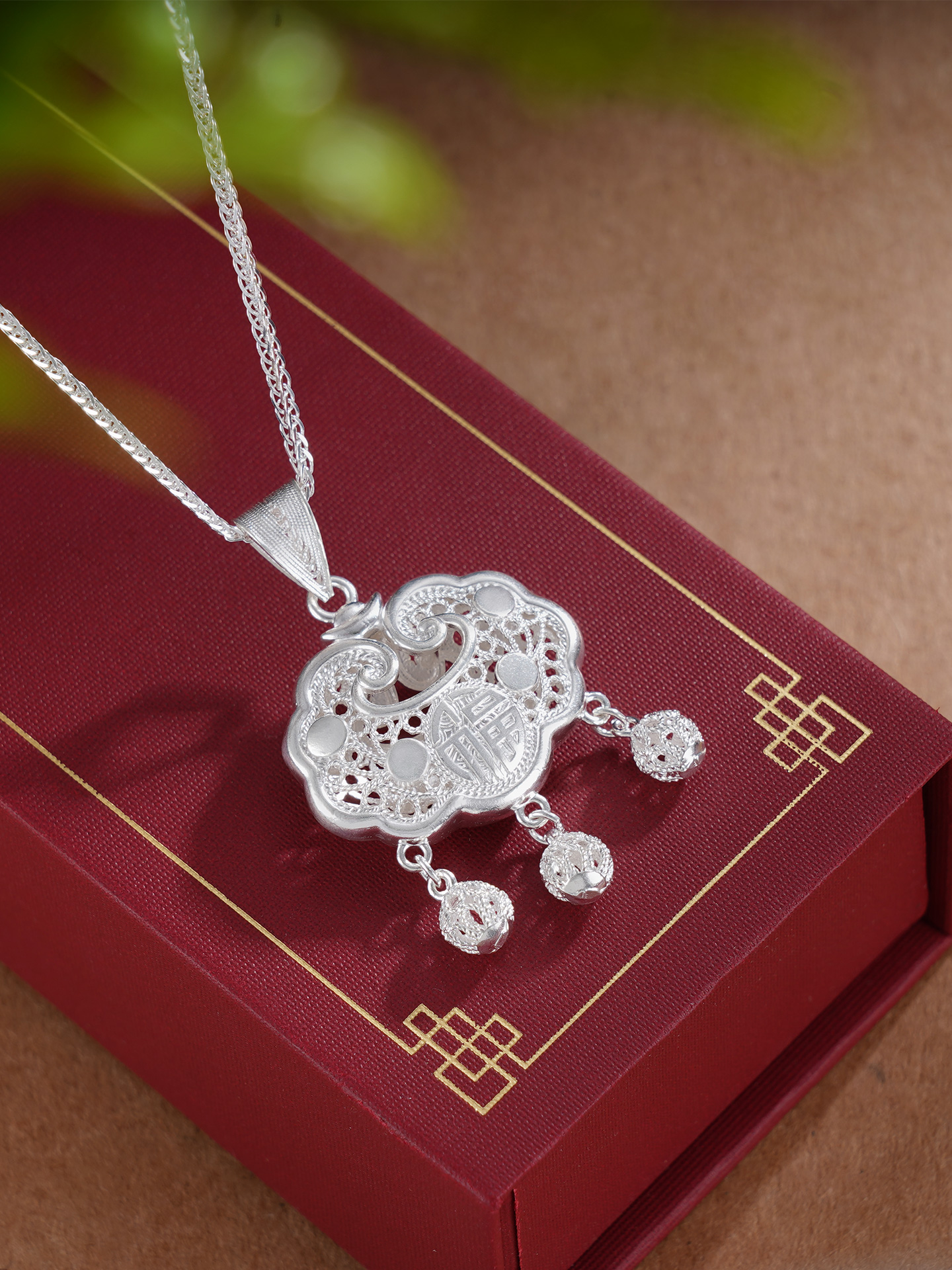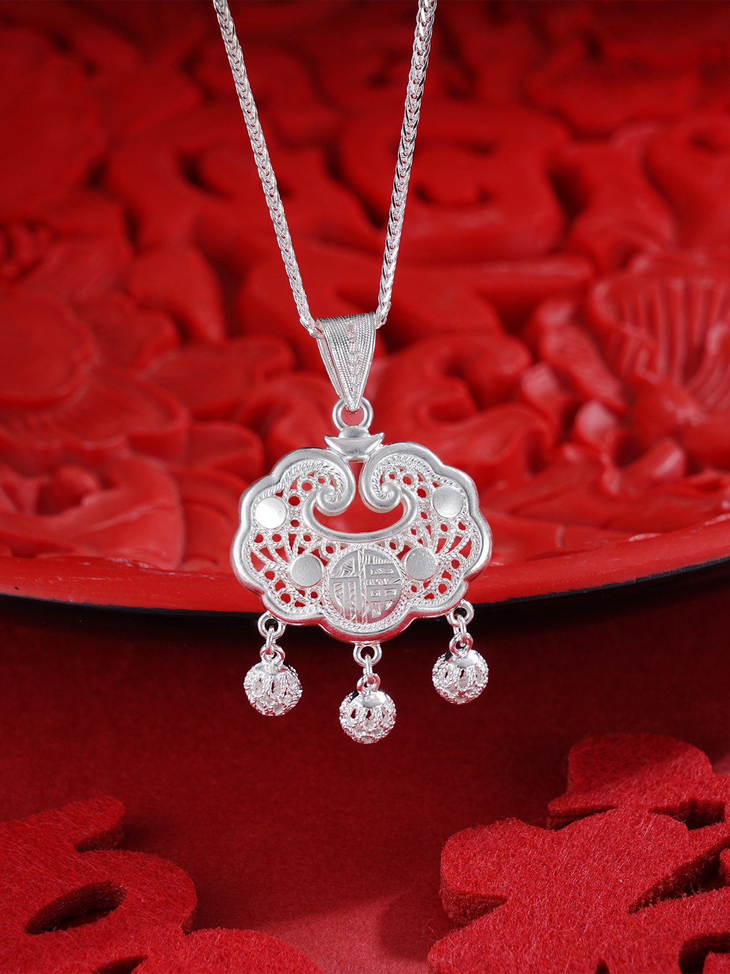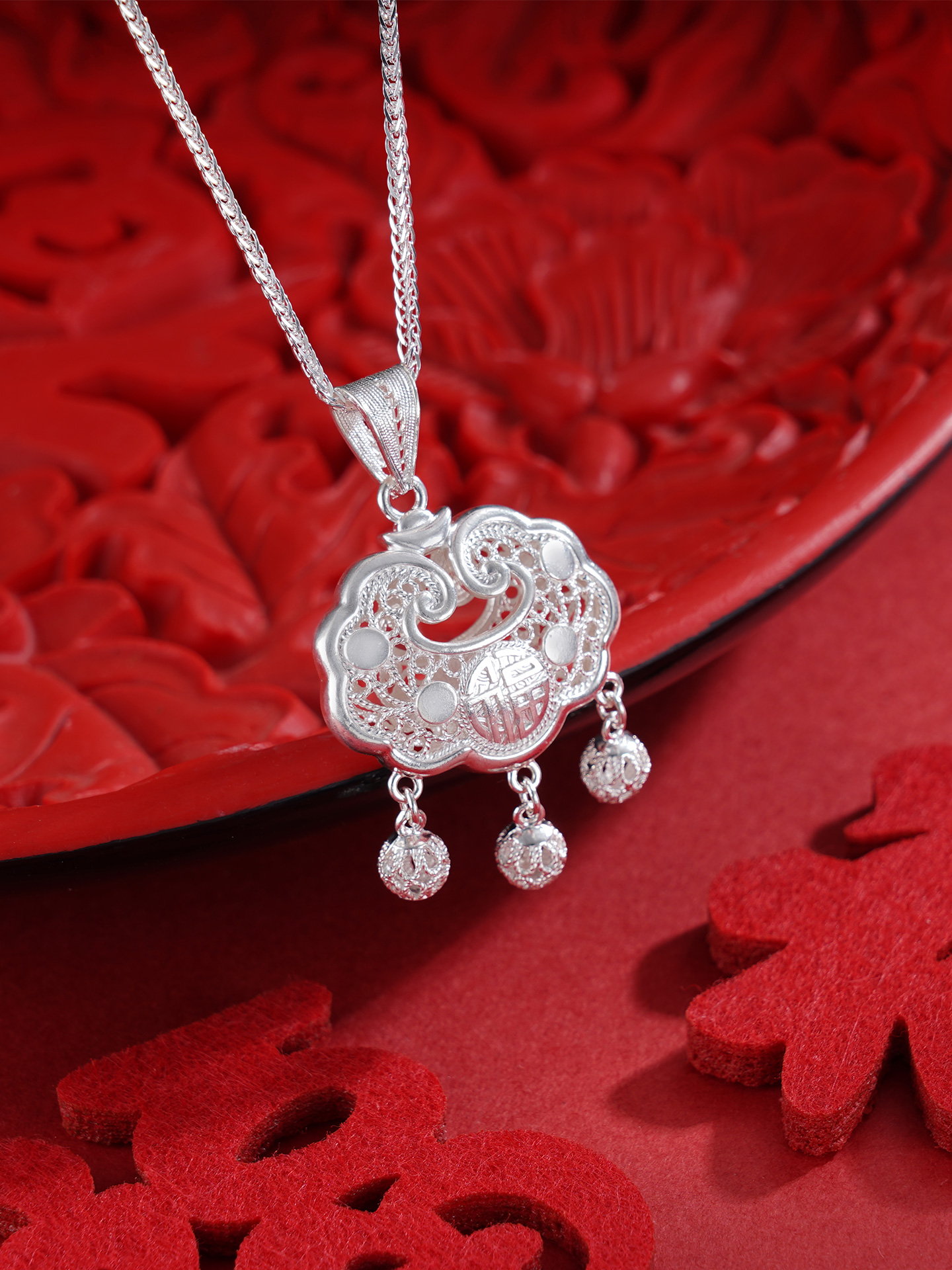 【寓意】:锁,寓意锁住平安与富贵,亦是吉祥如意的象征。花丝福锁,精致秀丽,撩动人心。
