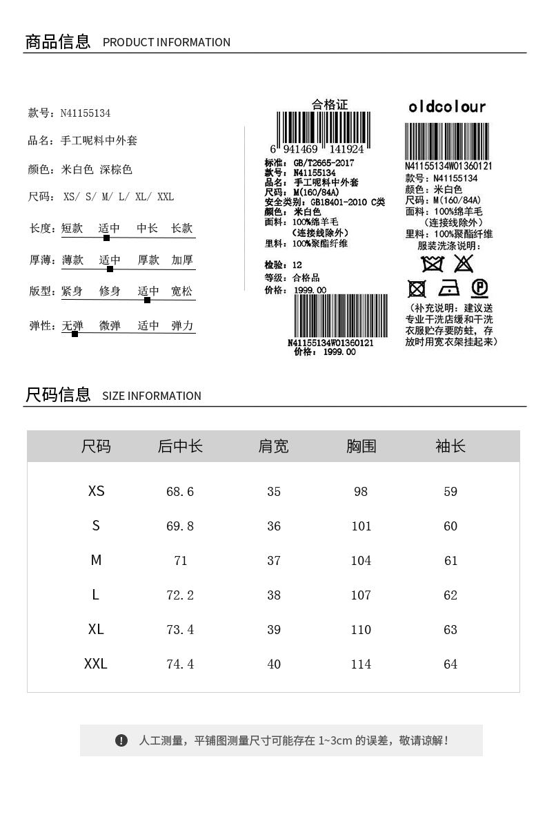 oldcolour2021冬季新款时尚气质修身百搭中长款大衣N41155134
