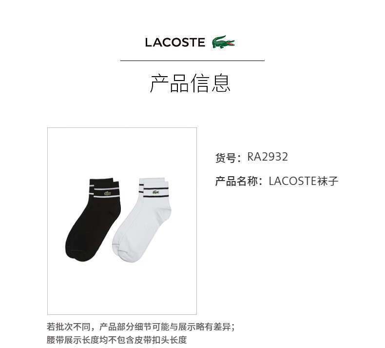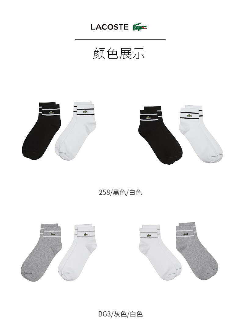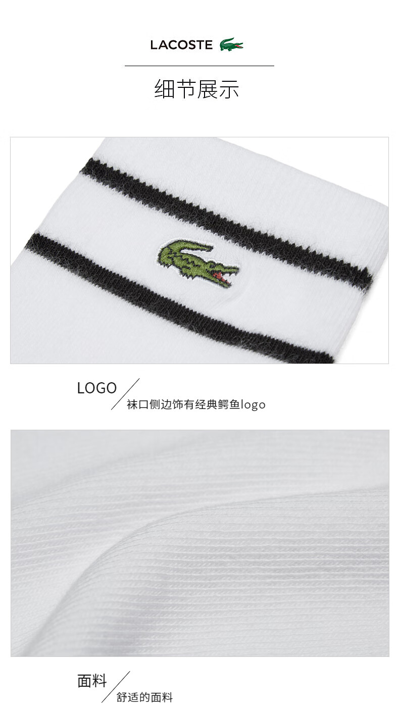 Lacoste法国鳄鱼男女同款新款条纹休闲舒适透气短筒袜子RA2932-98
