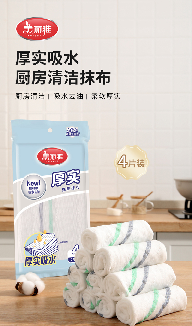 美丽雅纤维抹布不易掉毛不易沾油多用清洁巾家用厨房吸水洗碗10条