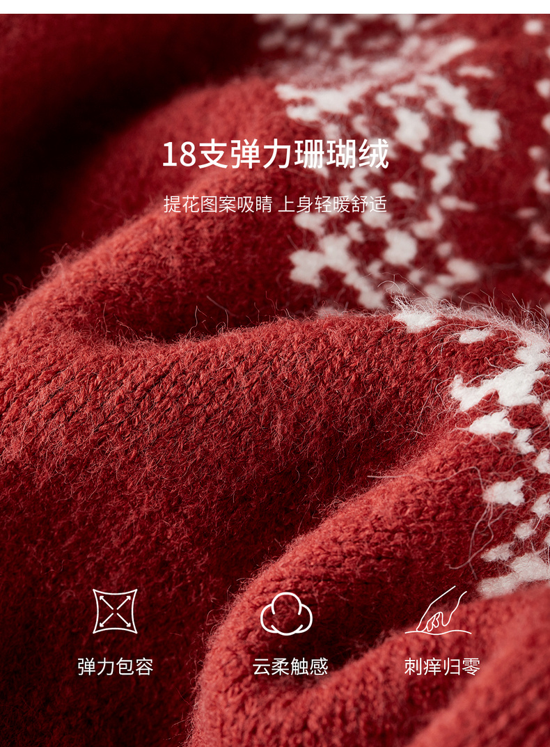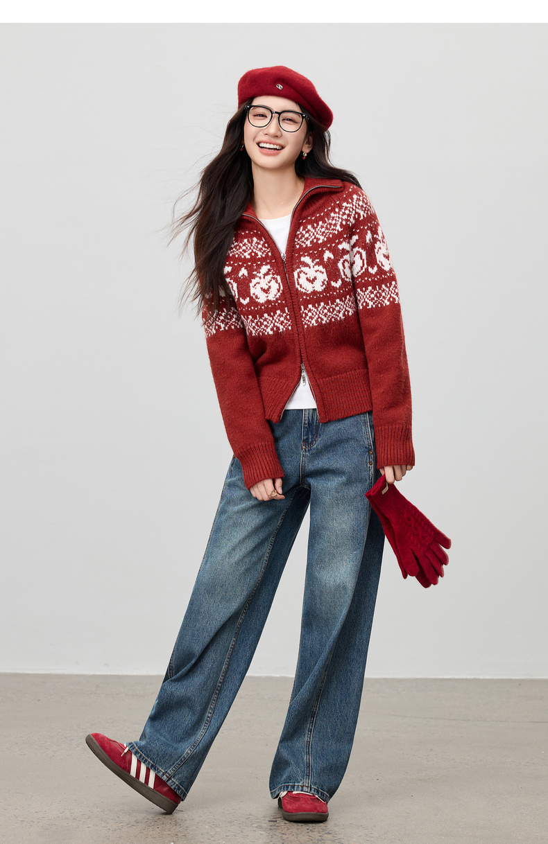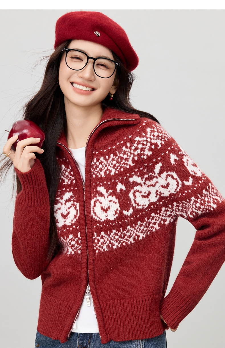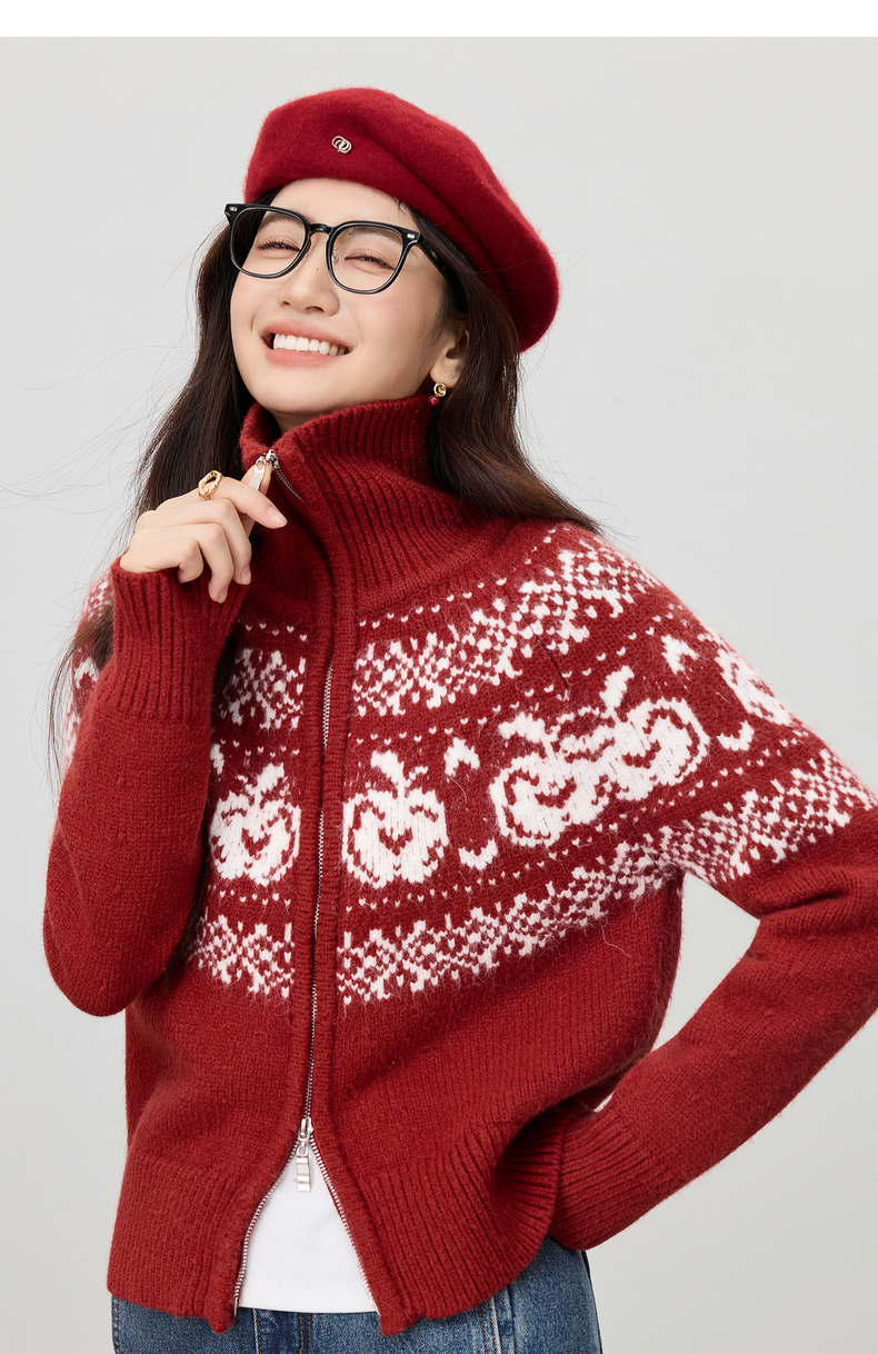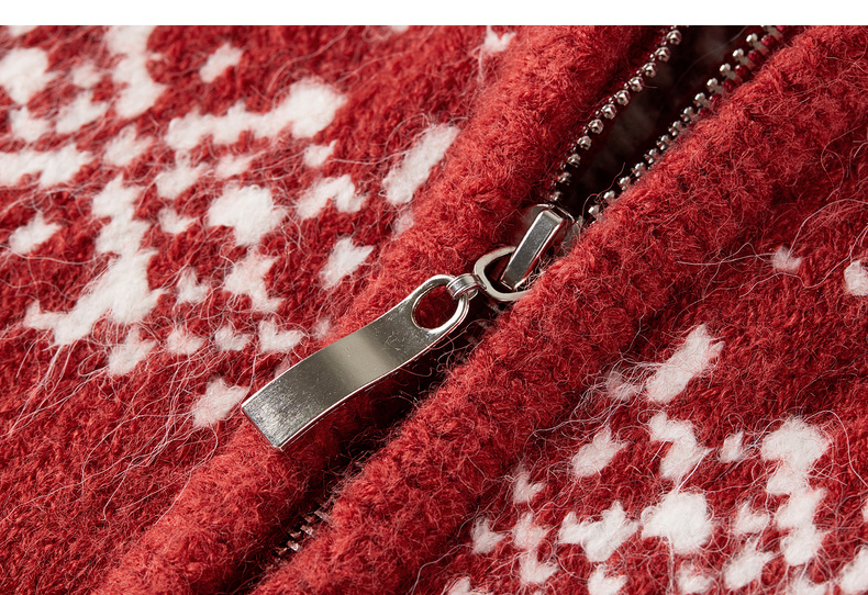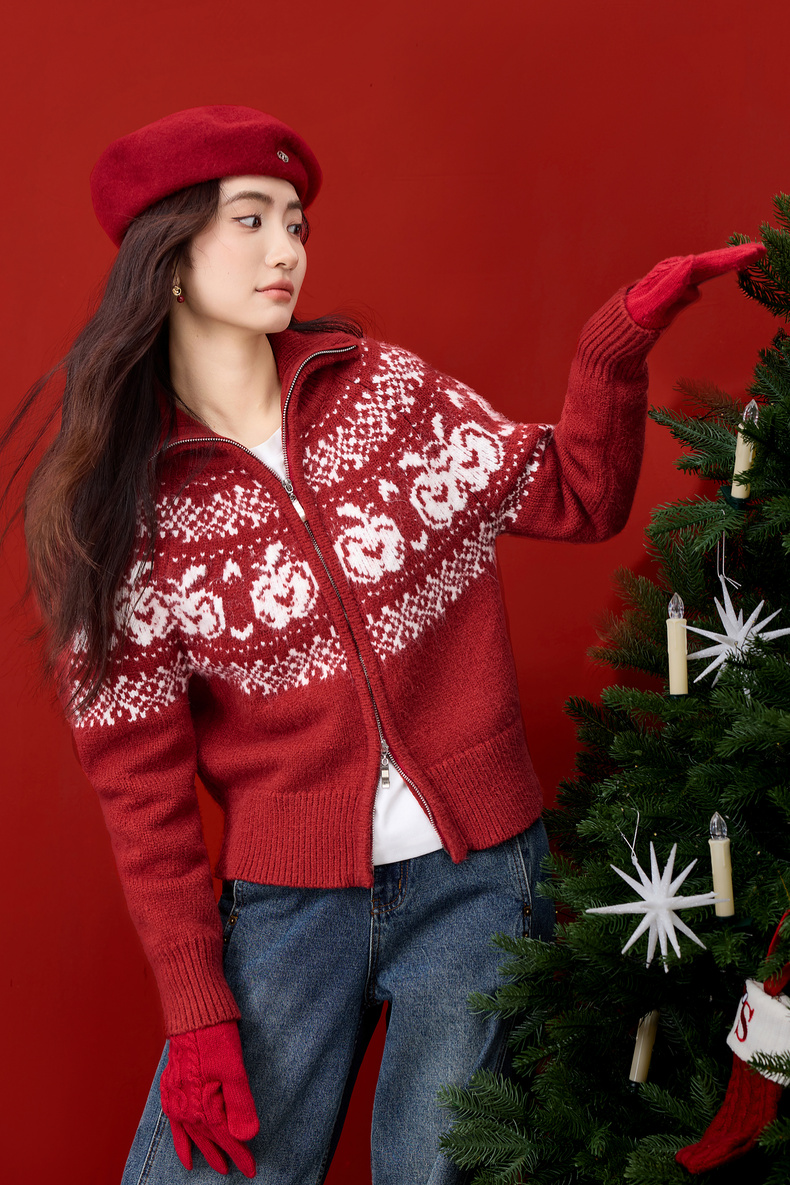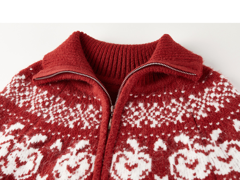 【内购】【冰岛系列】北欧风费尔岛提花图案翻领双头拉链珊瑚绒开衫毛衣-W54EB4076