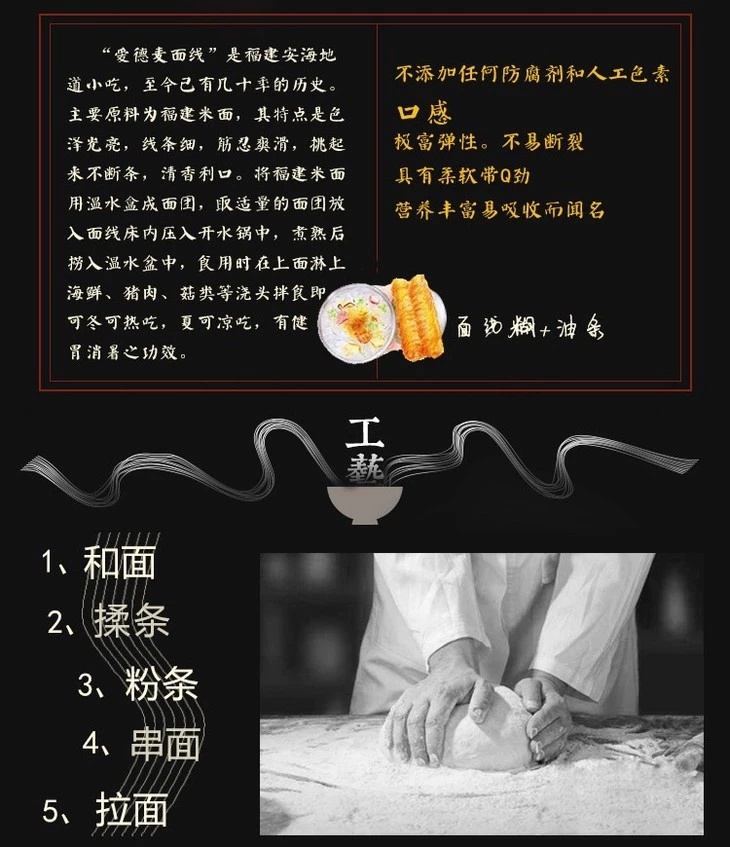 爱德麦梧埭传统手工面线(约750g/箱 11-12包)生产日期: 12月2日