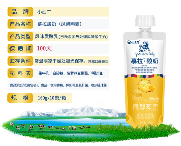 【社区团购】小西牛 青海特产风味发酵乳慕拉酸奶凤梨燕麦味 老酸奶礼盒