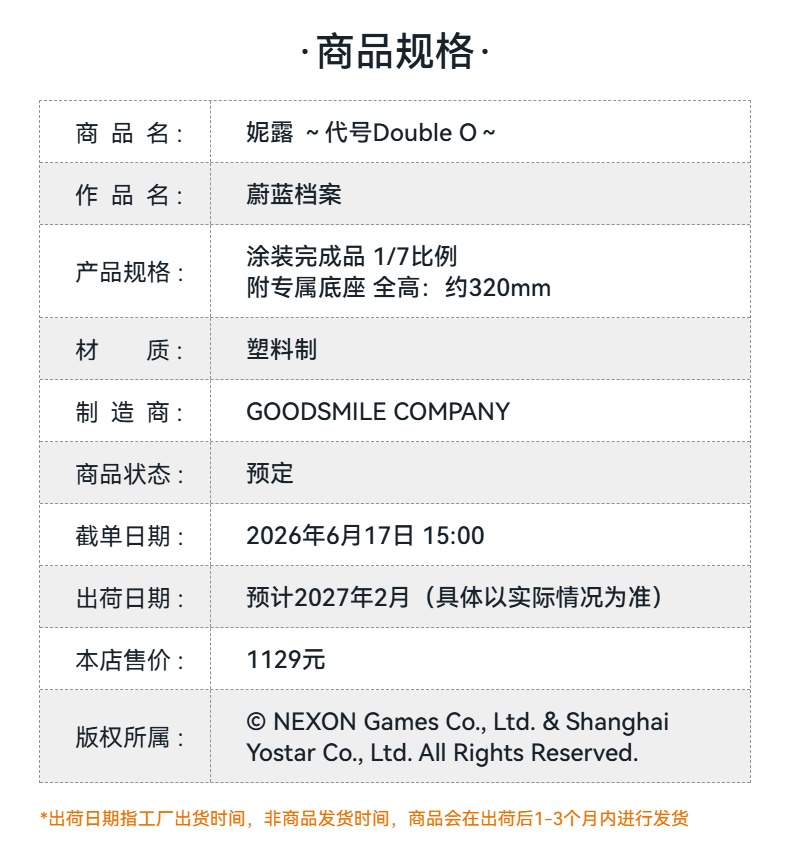 【GSC预售定金】1/7标准比例 妮露 ~代号Double O~ 蔚蓝档案
