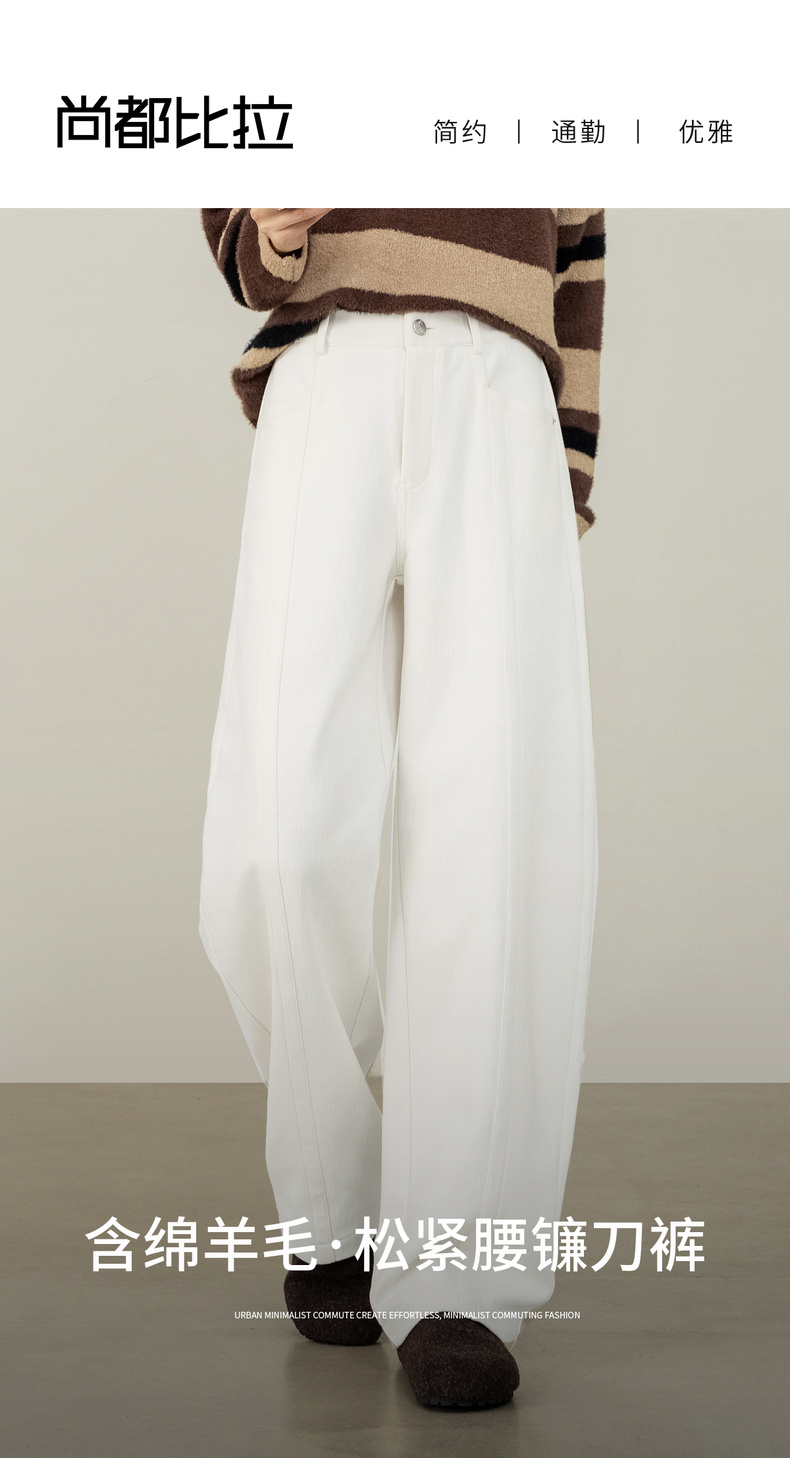 【内购】【镰刀裤】简约通勤梨型身材松紧腰宽松遮肉显瘦含绵羊毛长裤-154KN3076
