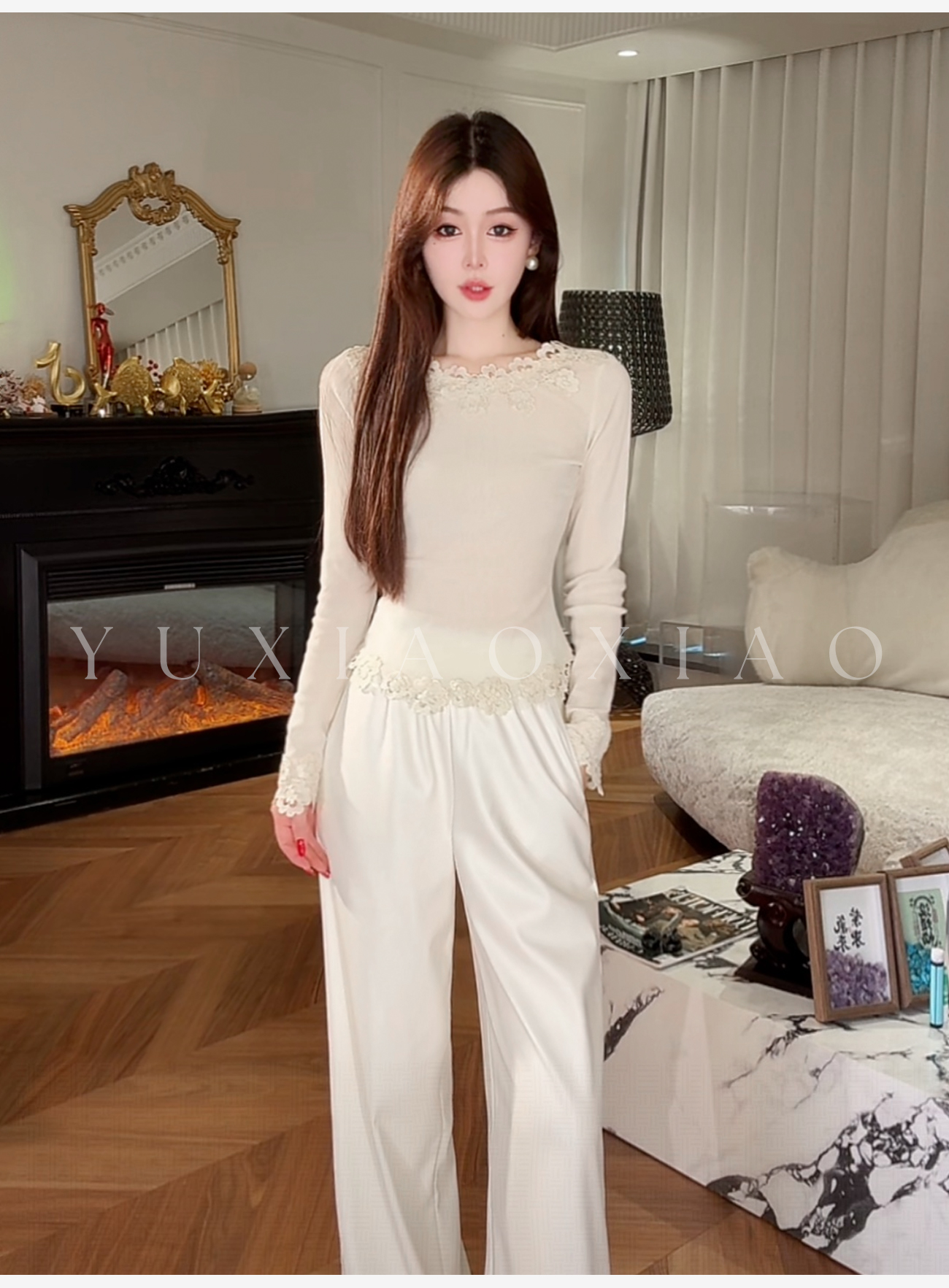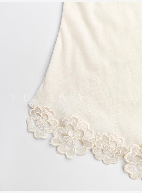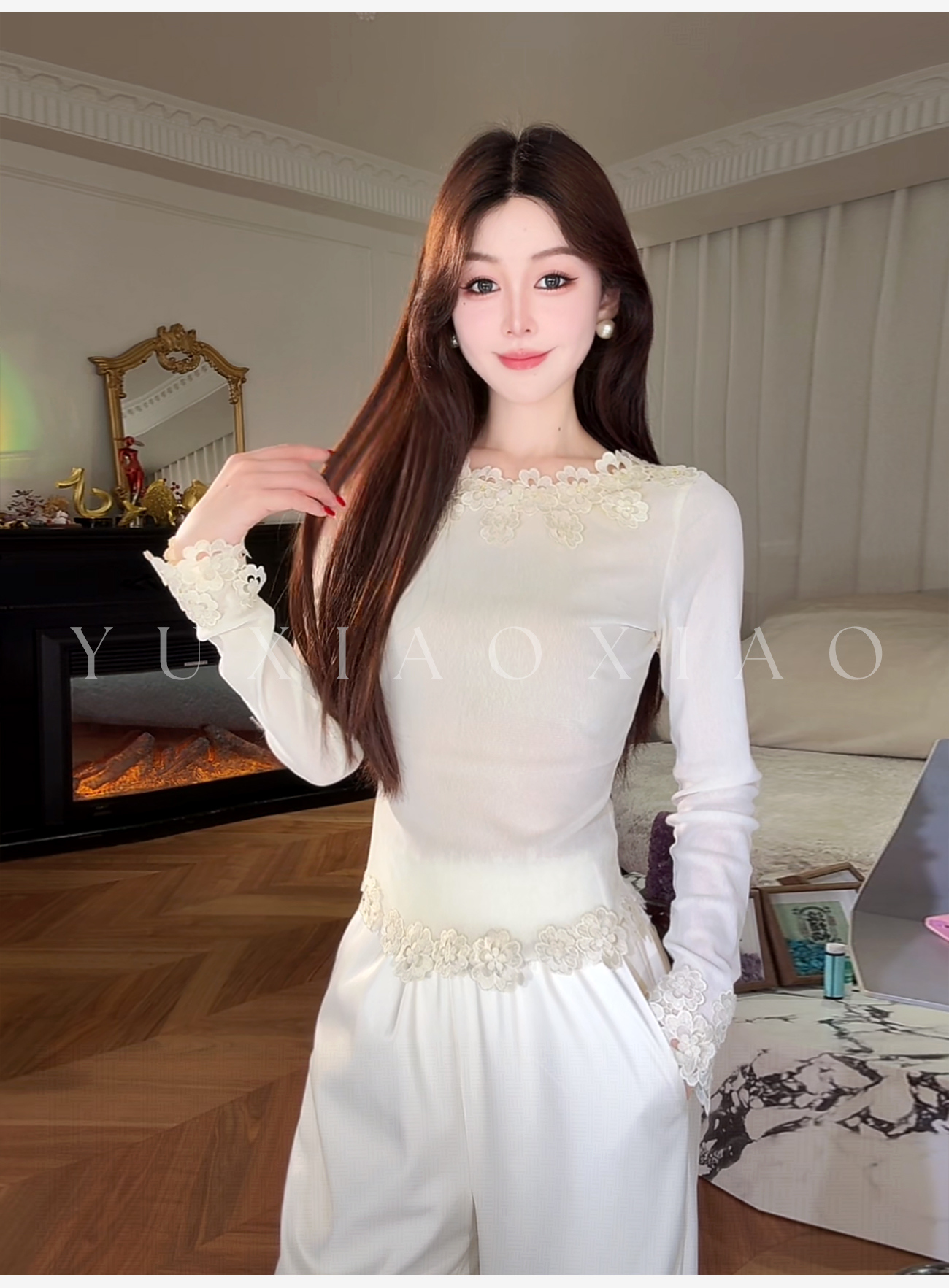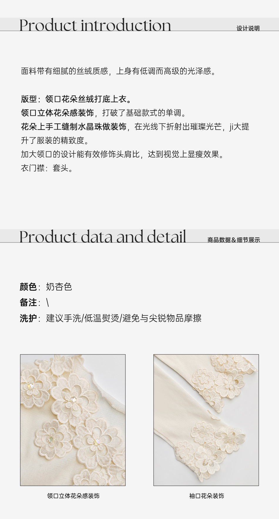余潇潇【晨曦花环】精致显瘦高级感手工缝珠立体贴花丝绒打底上衣