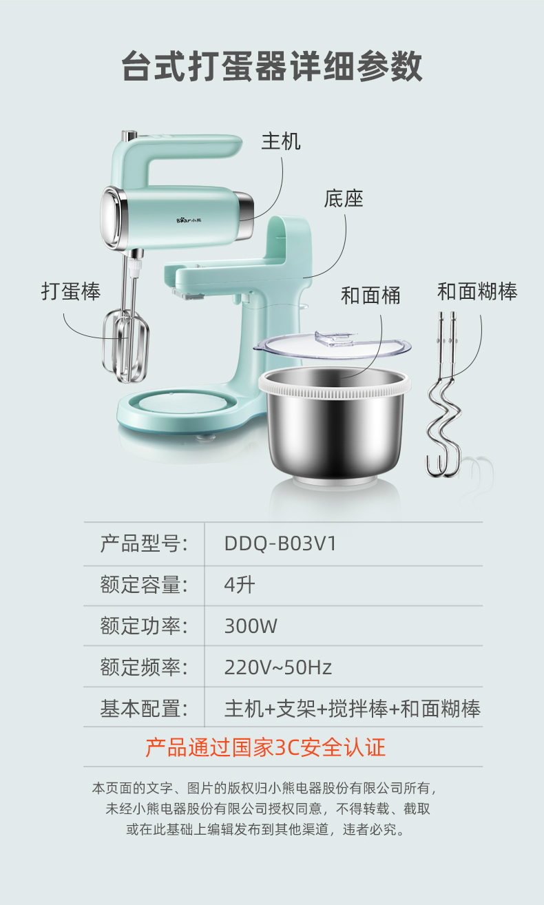 【小程序】Bear/小熊 DDQ-B03V1打蛋器电动家用台式全自动打奶油和面搅拌机